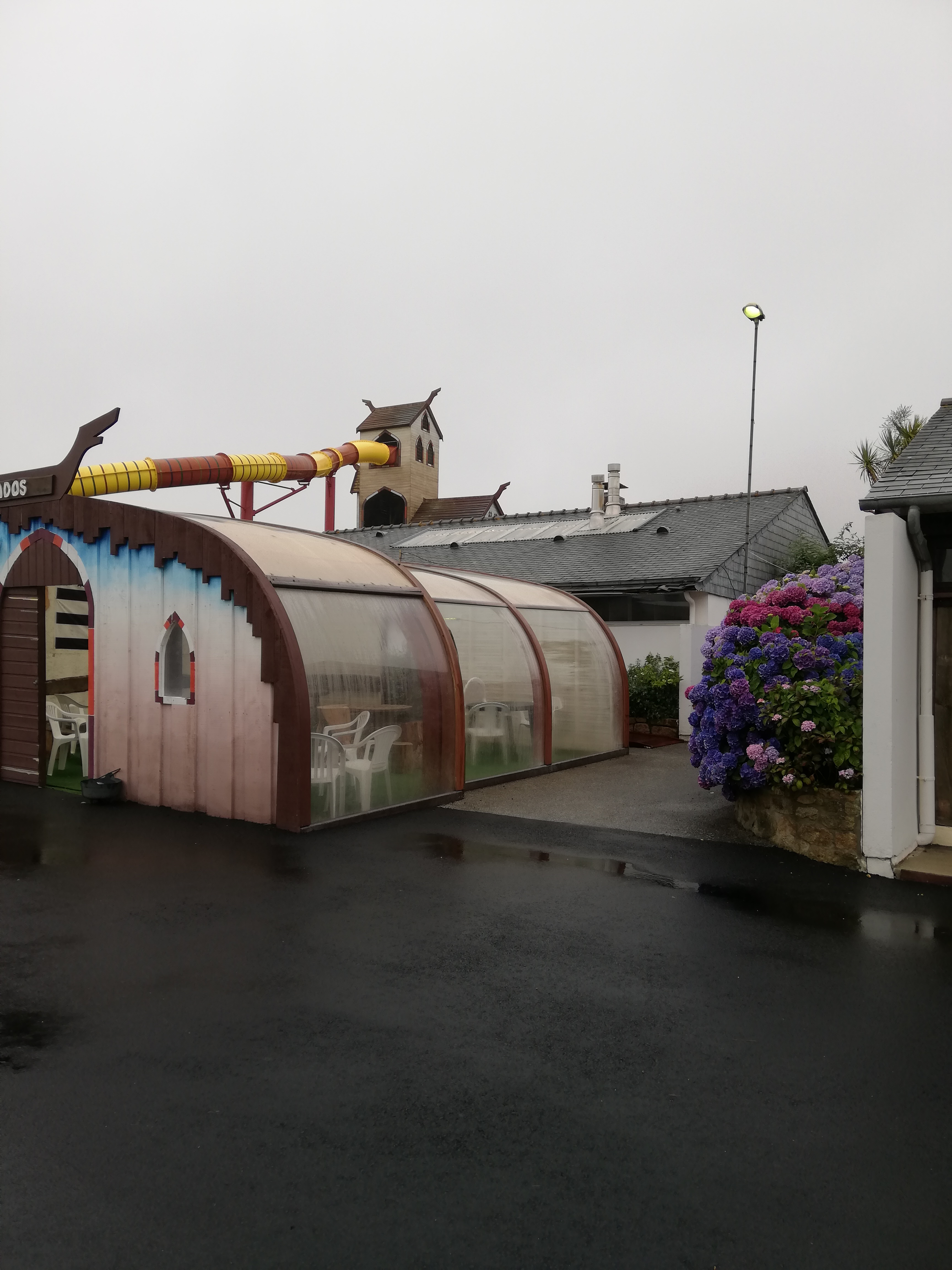 En location bungalow tribu c est à dire pour une famille 3 couples 3 enfants impossible de manger sur la terrasse en cas de mauvais temps il manque des protections bâches nous avons demandes il n y en as pas Att à vous le temps en Bretagne n est pas celui du Sud Comment manger en famille avec ce type de location ?