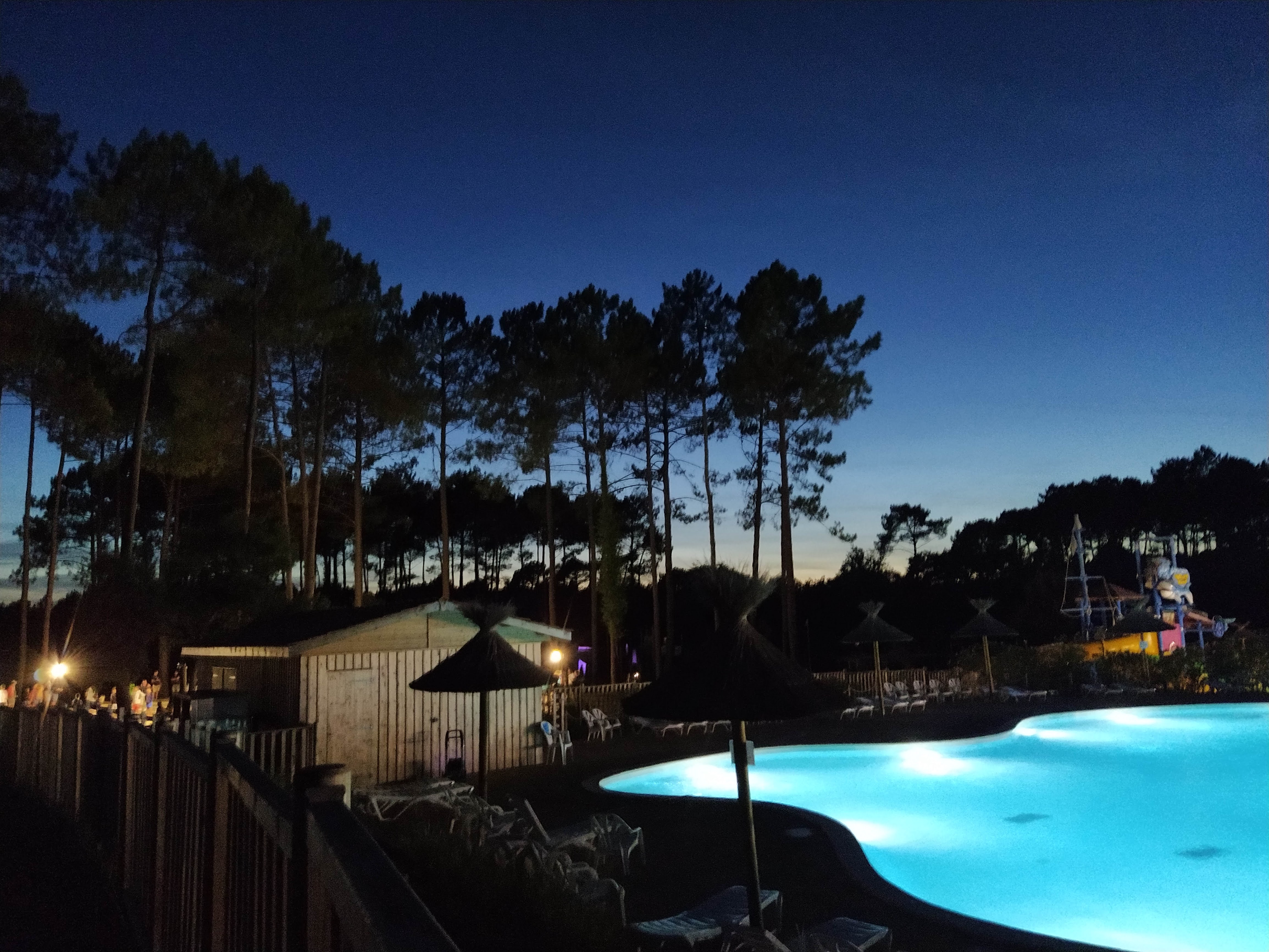 Bon, on part demain et avec regret, tout a été très appréciable ! Pour le positif : Arrivée, bungalow propre, et qui sent bon, spacieux pour 6 avec tout le confort espéré...avec la clim, merci, c'est génial ! L'espace piscine est génial, ludique et propre, les enfants ont adoré, les surveillants de baignade font preuve de vigilance en permanence et sont impartiaux quant au respect du règlement et c'est à signaler. Les animations sont largement suffisante et bien organisées, voir le planning complet en affichage permanent sur l'esplanade !! L'épicerie au top en dépannage, on y trouve presque tout. Les pizzas sont délicieuses et pas excessivement chères. Au restaurant, c'est pareil, à six dont un menu enfant, 108 euros, apéro compris, c'est pas exagérer et nous avons tous très bien mangé. La rue principale est bien éclairée et limité à 10km/h pour les voitures, nickel. Terrain de pétanque éclairé le soir et entretenus régulièrement. 2 mini golf aux allures totalement différentes, de 9 trous, très propres et rigolos. Bref de quoi occuper nos enfants toute la semaine. Points négatifs: Les structures gonflables en bas sont vraiment trop exposées au soleil. Celle proche de la piscine en forme de requin, pas trop propre. Pour le nettoyage, il manquerait dans les bungalows du lave vitre. Il est normal qu'on nettoie en partant mais sans produit à vitre...c'est moins pratique donc... On achète a l'épicerie du camping mais c'est pas top sur le principe. Voilà, tout est dit ou presque, une semaine de détente au milieu des pins! Ah et j'oubliais, pour les lève-tôt, quelques écureuils se baladent au dessus de vos têtes et parfois même sur les bungalows. C'est toujours sympa au réveil 😉