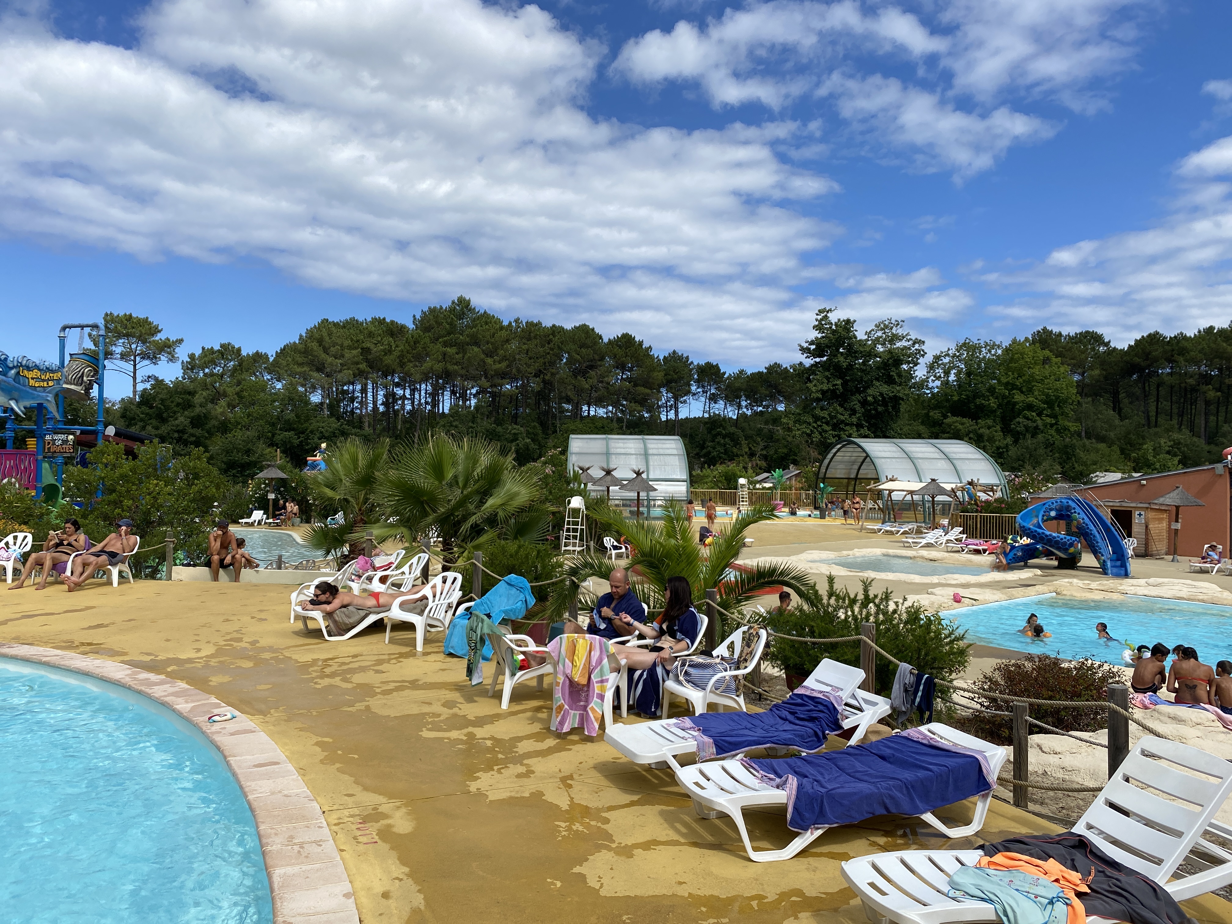 Camping familial agréable logé au milieu des pins. Espace aquatique très bien avec 4 toboggans, un espace enfants, une piscine couverte et un grand bassin. Mobile Home en très bon état (Sunshine Top Presta avec clim et lave vaisselle, pas un luxe avec la canicule !) Les logements sont assez proches les uns des autres (donc si vous comptez faire la grasse matinée en dormant fenêtre ouverte avec des voisins matinaux et parlant fort c'est difficile) mais sinon c' est très calme. Gros bémol, l'accès à Moliets... pas de piste cyclable, seule une petite route, certes limitée à 70km/h, mais avec des enfants en vélo ce n'est pas top... Idem dans Moliets il n'y a pas de piste cyclable et c'est un peu difficile de circuler. Mais une fois sur la voie verte, direction Soustons c'est top.