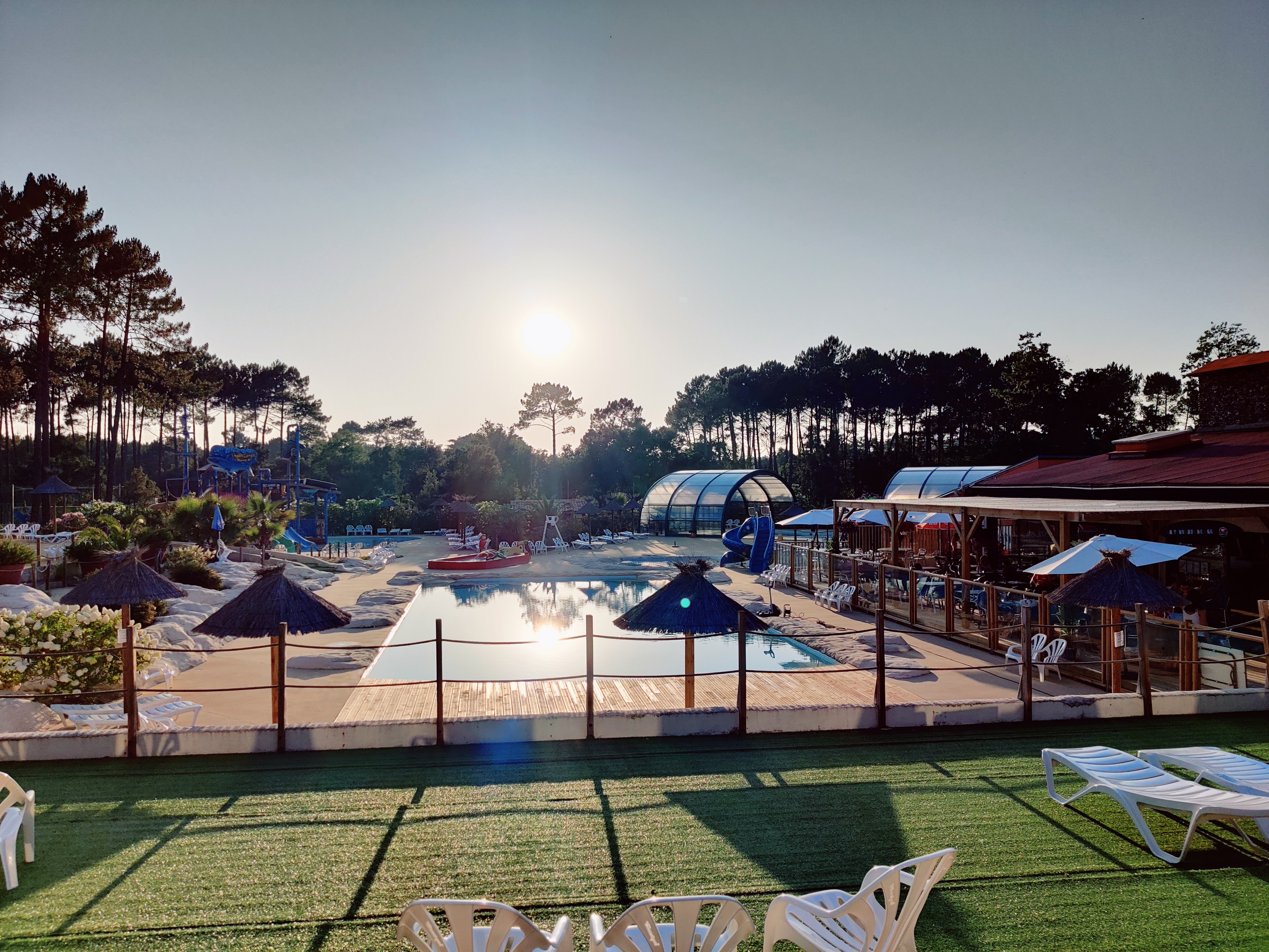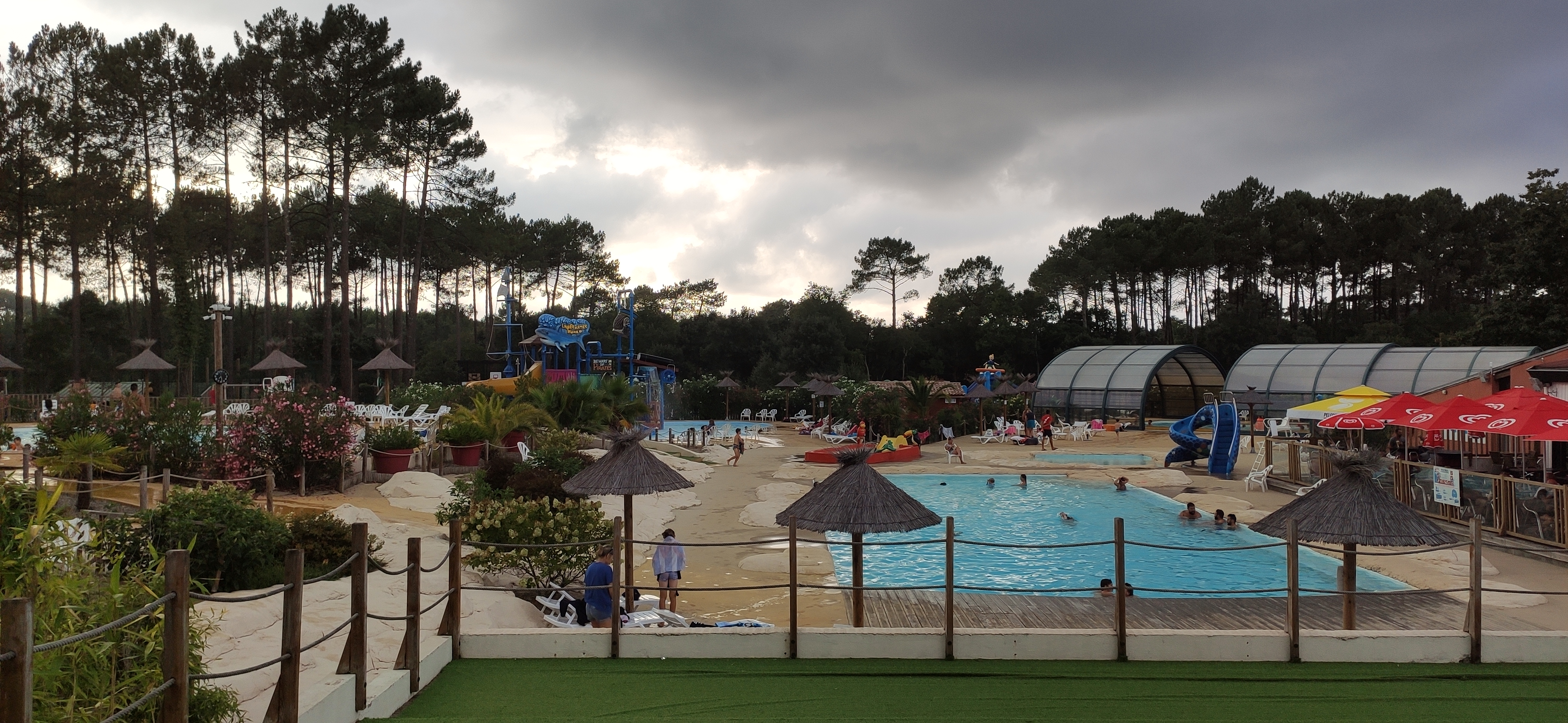Séjour fin juillet / début aout 2021, camping très agréable et très bon séjour malgré une météo très moyenne cette année… point positif : - très jolie cadre au milieu des pins, en pleine nature... - service, accueil et animations très bien 5/5 - grand espace aquatique surveillé avec piscine chauffée - Equipements assez exceptionnel : tennis, padel, piste bmx, city stade, mini golf, ping pong, jeux enfants / structure gonflable, beach volley, pétanque…. et avec tous le matériel en prêt à l'accueil ! quelques points négatifs : - bungalow trop proche dans notre secteur (35) - attention, camping très grand, si la location est au fond du camp, prévoir plusieurs minutes de marche pour rejoindre la zone d'activité (piscine, épicerie, animation) - en cas de pluie, les terrasses semi couverte ne sont pas suffisante pour rester à l'extérieur - gaufre / crêpe, précuite puis réchauffé au four à pizza, vraiment pas terrible ! - prix du pain chocolat / croissant / pain excessif (1.20 euro) - prévoir + de vélo en location pleine saison Au final, un excellent séjour dans une très belle région...