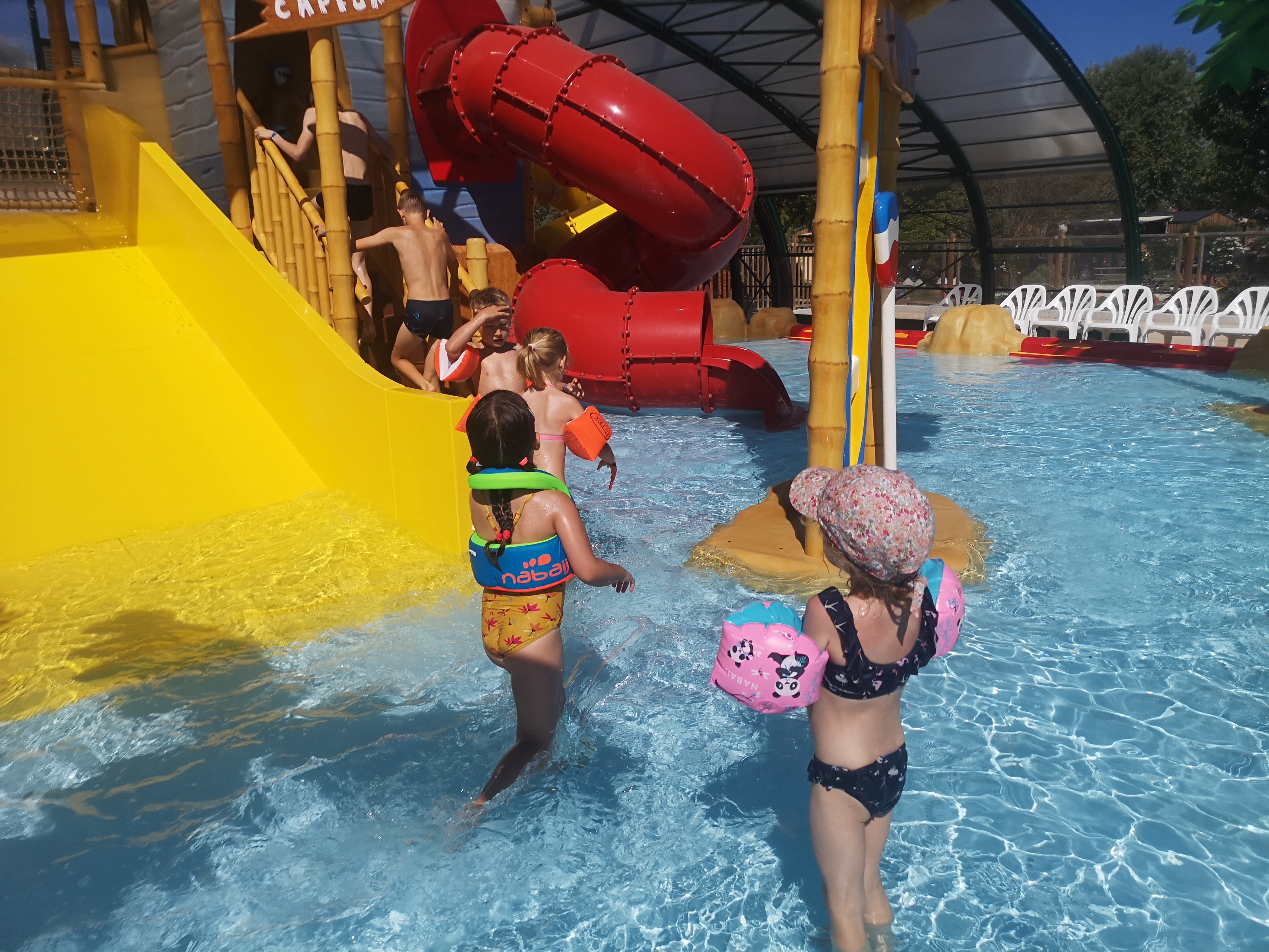Bon camping niveau espace aquatique et toboggans et animations. Cependant chaises à la piscine quasiment pas de transat donc difficile d'en trouver un de disponible en saison haute. Attention vol de claquettes et chaussures à la piscine ne pas les laisser dans les étagères prévues à cet effet. On nous a volé les crocs neuve de mon fils dès le 2eme jour. Pas de surveillance à l'entrée de la piscine ni à l'entrée du camping d'ailleurs.
