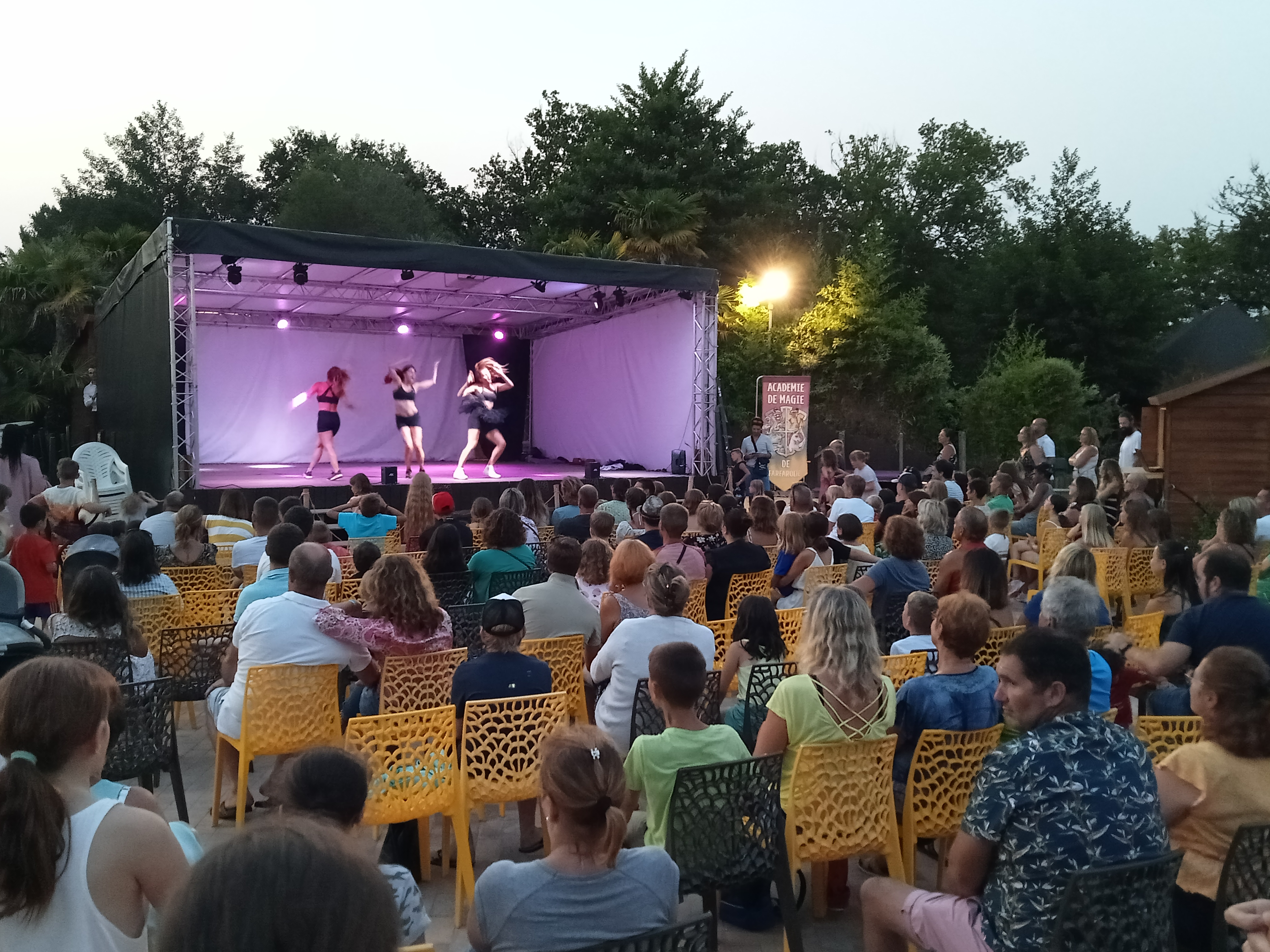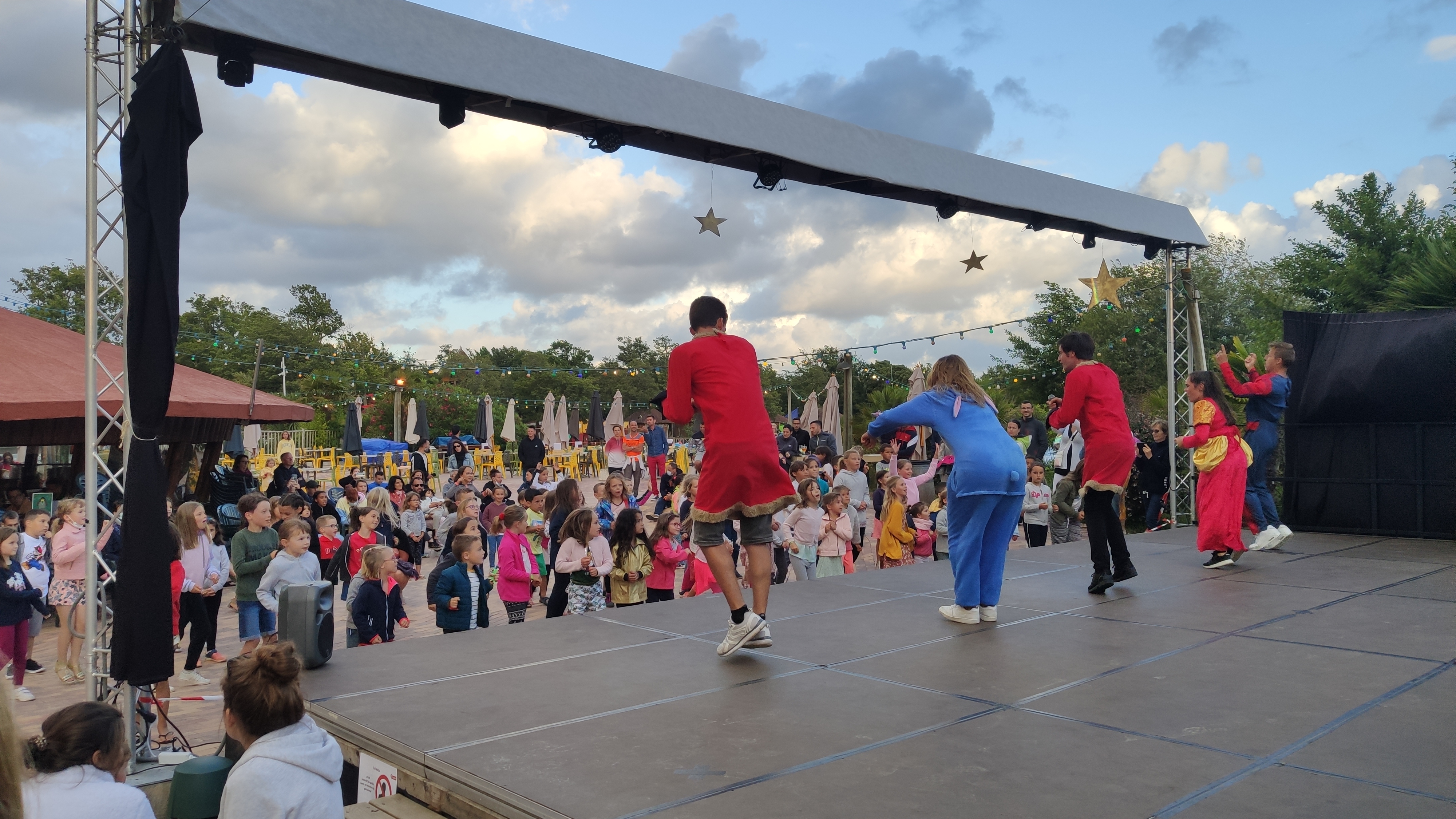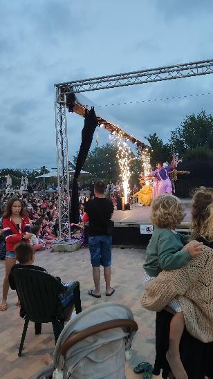 Dernière soirée avant notre départ avec un joli spectacle réalisé par tous les animateurs. Franchement c'était très sympathique et chapeau à eux car ils ont tous plusieurs casquettes et sont toujours au top tous les jours. Un joli camping où on a pu profiter et partager en famille. Notre bungalow était propre et un peu éloigné et du coup nous étions au calme:). Nous avons très bien mangé au restaurant avec des serveurs agréables. Merci à tous