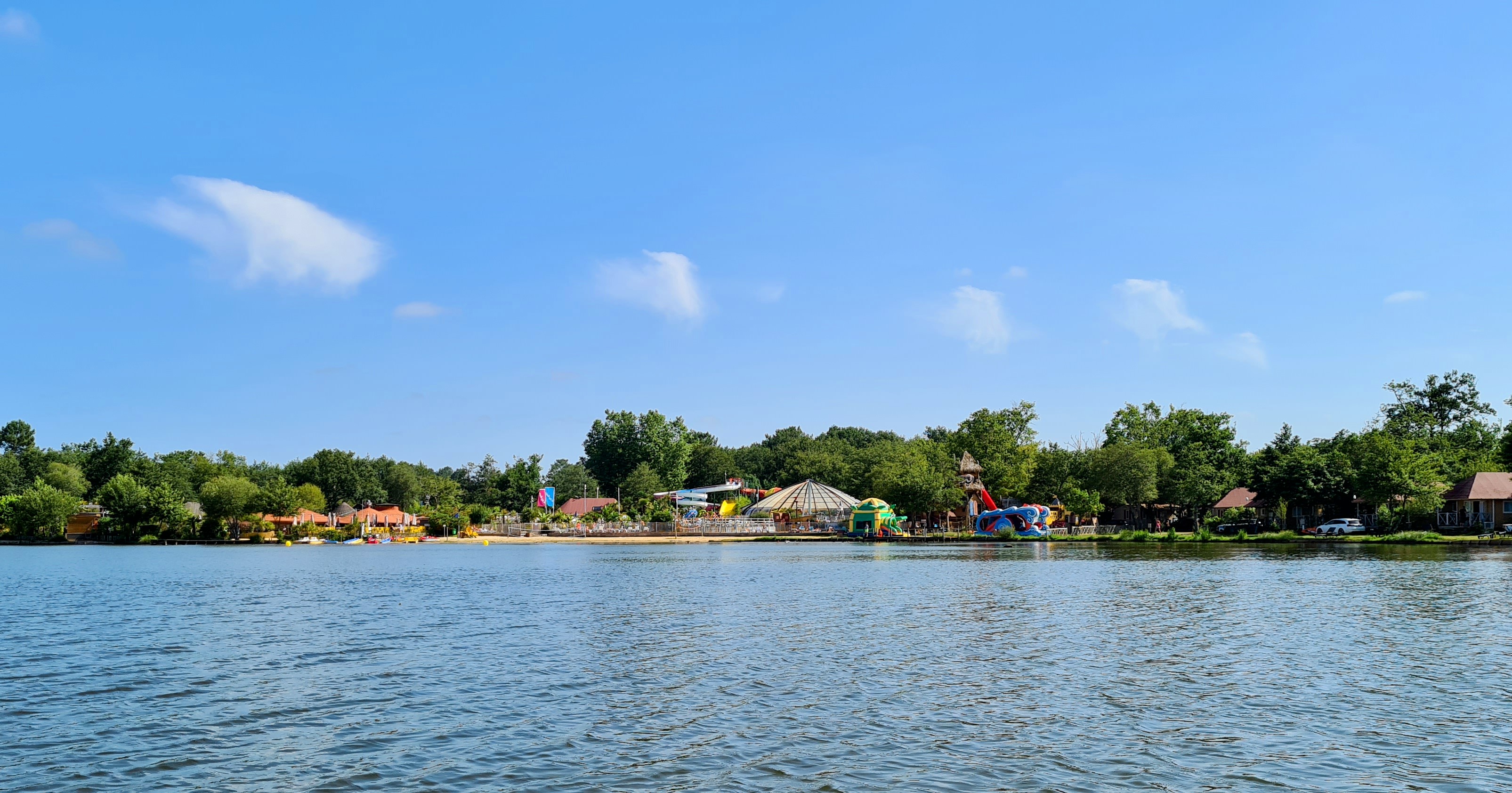 Lieu parfait pour les familles. Super parc aquatique. Toutes les piscines et toboggans sont chauffés. Notre mobil home positionné sur le bord du lac, très belle vue et très calme. Réveil matinal par les canards qui vivent sur le lac et distribution de pain . Les enfants étaient enchantés et nous aussi.