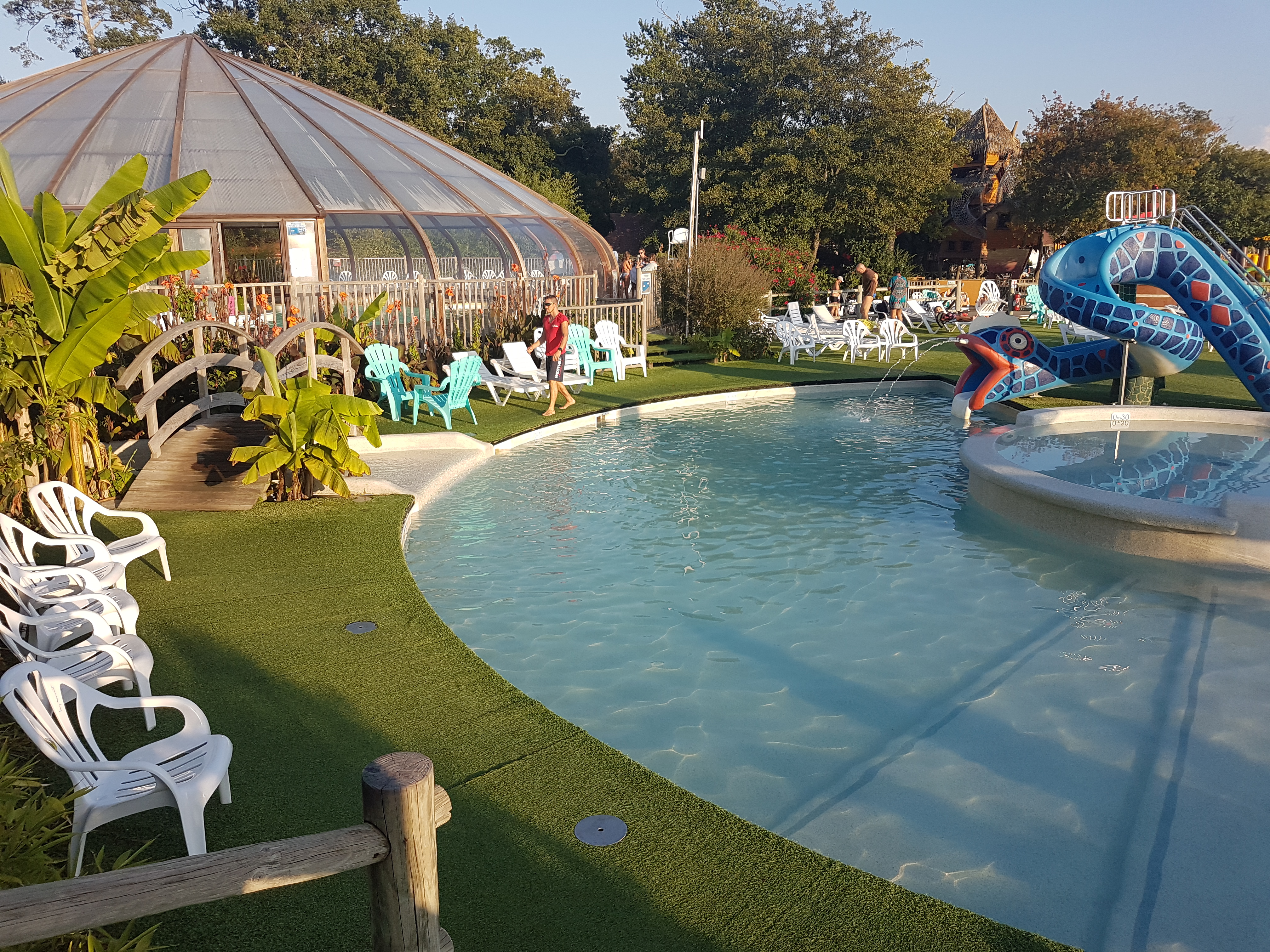 Super camping,personnel très sympathique, mobil home bien agencé pour 3 ,1 adulte et 2 enfants de 3 ans,beaucoup de possibilités pour la baignade des petits avec divers toboggans. Un petit problème le manque de fauteuils et bains de soleil du fait que les gens viennent le matin partent manger en laissant leurs affaires sur les les fauteuils et bains de soleil 😟.A l'année prochaine.