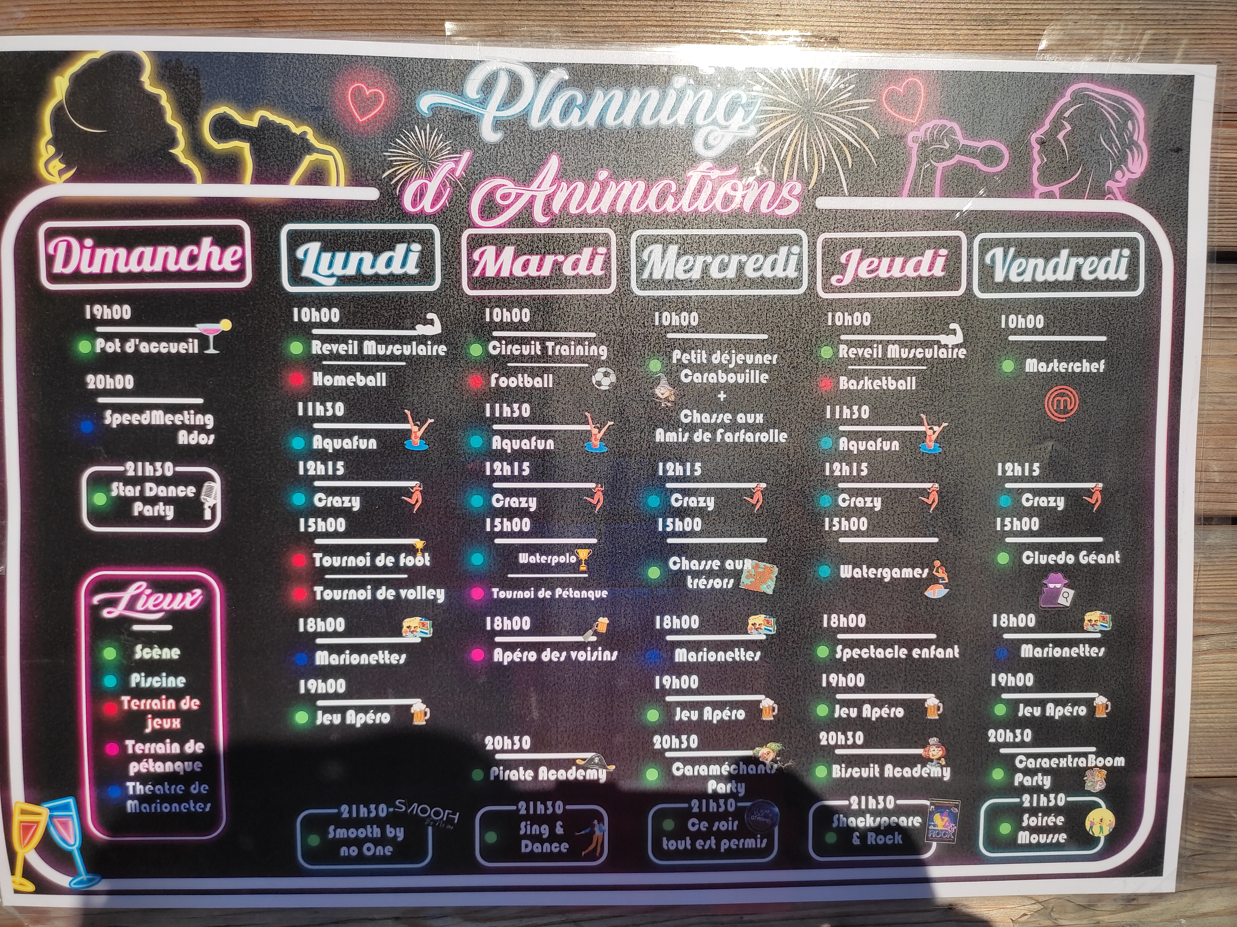 On est loin du 5 étoiles! Piscine sans ombre avec 4 chaises qui se battent en duel, pour les autres ce sera serviette sur le bitume en plein soleil! (Alors que sur les photos du site on vous montre des transats) Animations….les mêmes chaque semaine (pour adulte et enfant) Équipe d’animateurs….4 personnes!!!! 😱😱😱 pour un 5 étoiles! Du jamais vu! Et si par malheur il pleut, animation annulée aucun plan B! Au prix de la semaine le camping pourrait investir dans une tente externe! Donc les animateurs ont beau être très sympa ils ne peuvent pas faire de miracles à 4 pour tout un camping les pauvres! La supérette….visiblement ukrainienne puisqu’on ne trouve rien les rayons sont toujours vides Sans parler du parcours du combattant pour arriver à la piscine et ses activités…pensez à prendre des chaussures de rando vu le long chemin qui vous attend! Et pour finir les machines à laver…jamais de jetons disponible, aucun banc pour attendre son tour (3 machines de dispos inutile de dire que soit on fait sa machine la nuit soit on est obligé d’attendre son tour) Bref on est très très loin du 5 étoiles! Par contre les prix, eux, sont bien étoilés! Capfun la pergola ne nous reverra pas