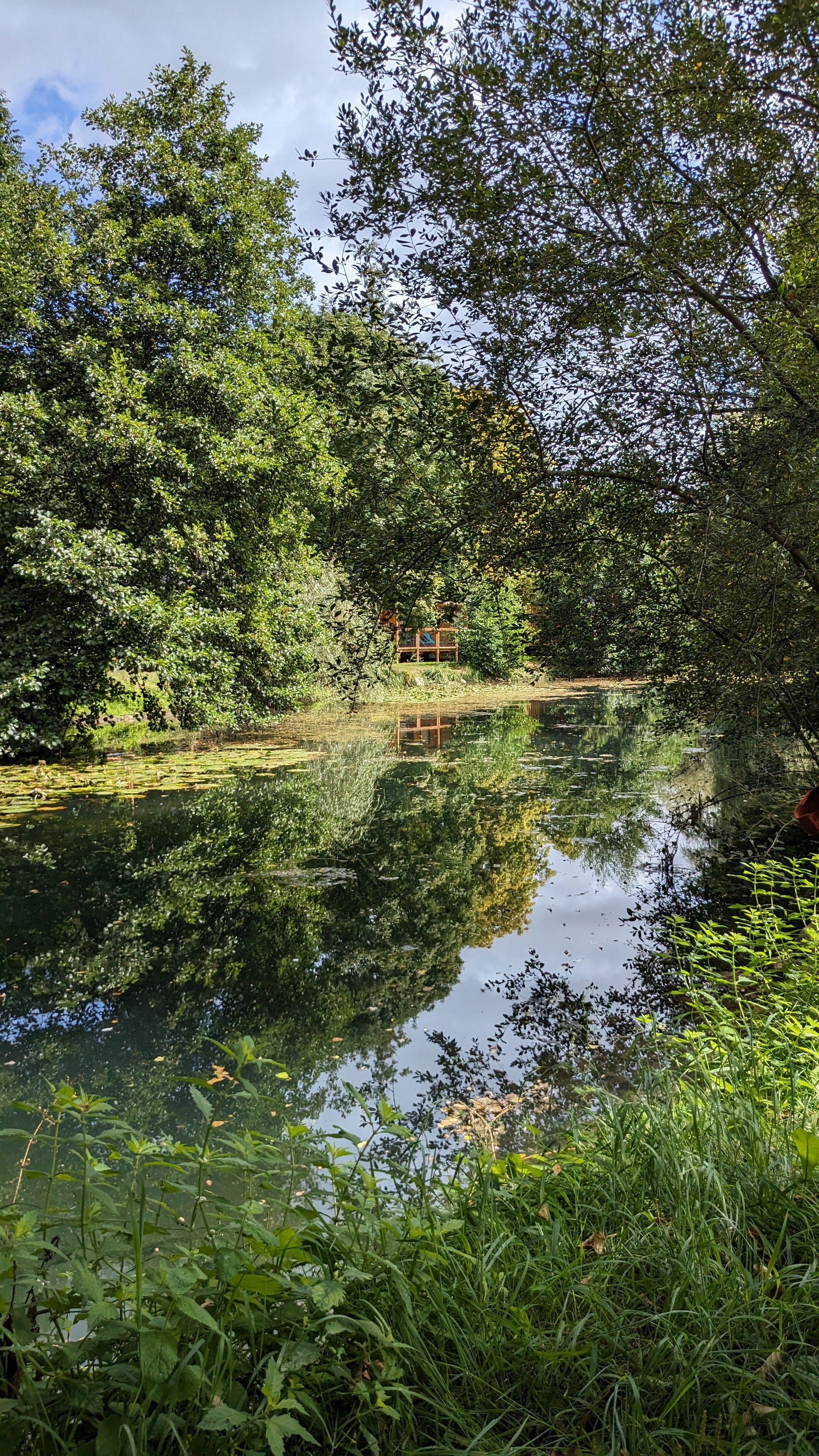 Lieu charmant avec emplacement au bord de la rivière ou du lac au centre du camping. Etonnamment pas de moustiques en vue alors que je me fait devorer systématiquement. De plus nous avons découvert la pêche aux écrevisses que nous avons eu le plaisir de manger à plusieurs reprises... Les patrons et l'équipe sont très disponibles et souriants. Le camping est très calme, apaisant, et les soirées (1 soir sur 2)se terminent tôt (max 23h). Pour avoir été dans plusieurs camping, je le recommandent aux familles avec enfants. De plus la piscine est top pour tous le monde avec plusieurs bassins..