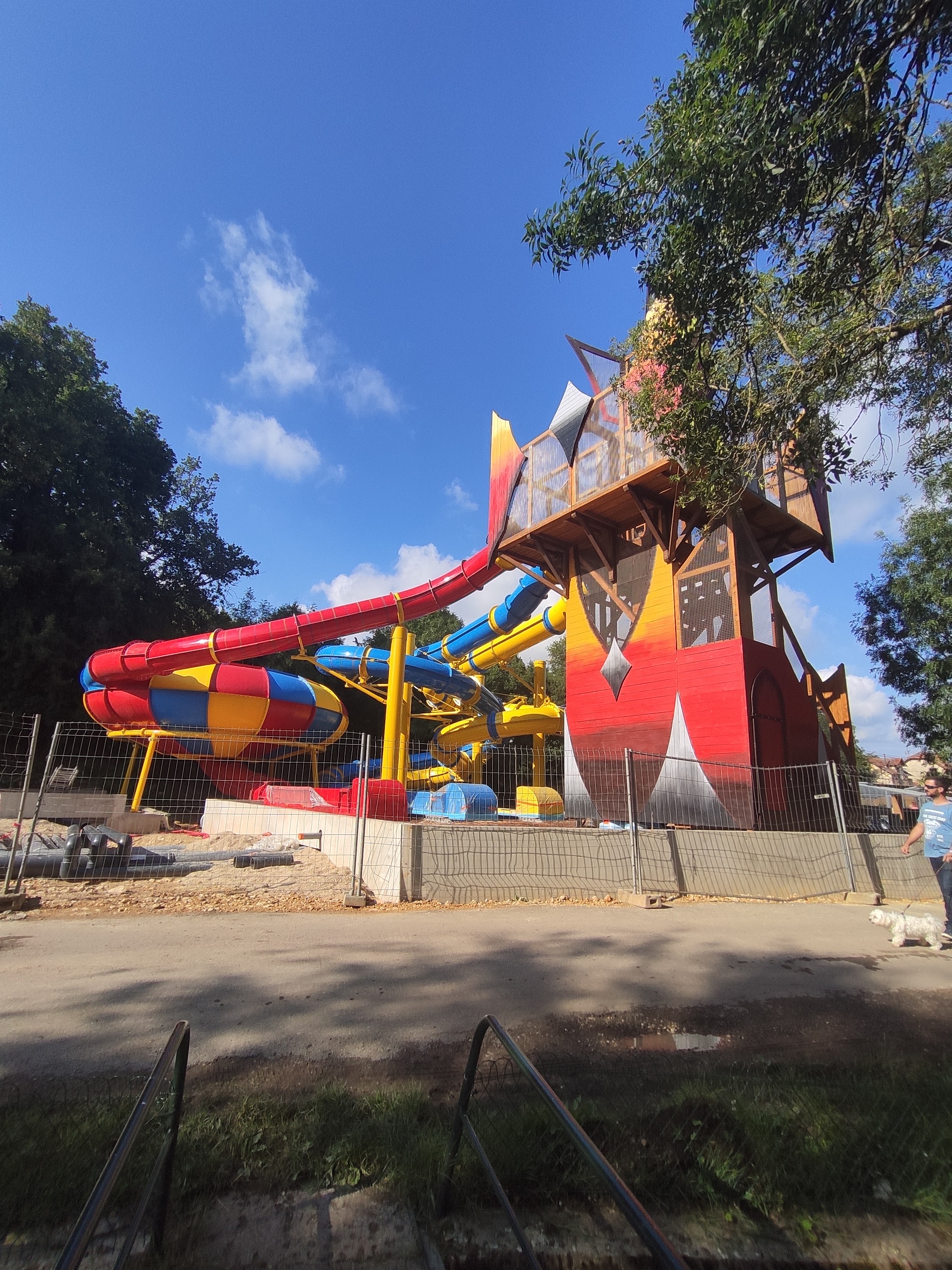 Cadre agréable, mais camping un peu vieillot pour la piscine et les sanitaires. Une rénovation a débutée, il était temps. Avec trois nouveaux toboggans ouverts mi-juillet, à la date prévue, l'espace aquatique reprend déjà des couleurs.