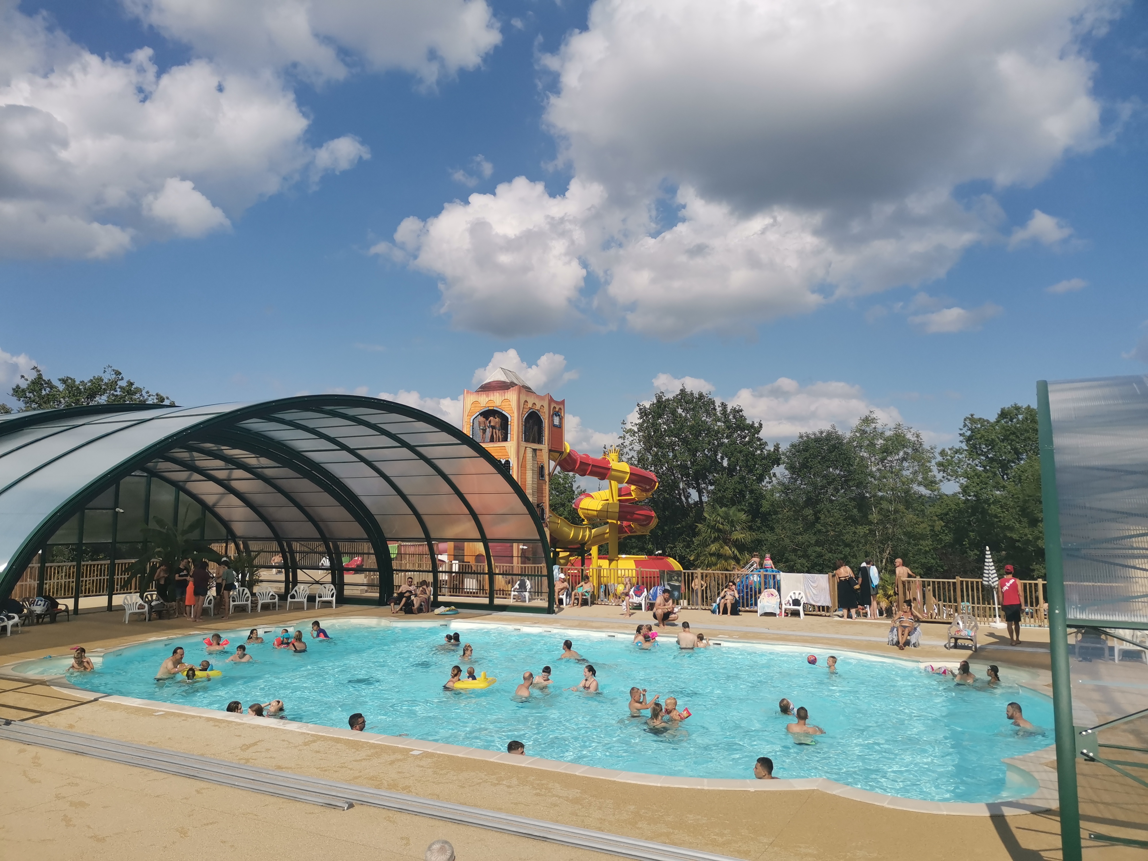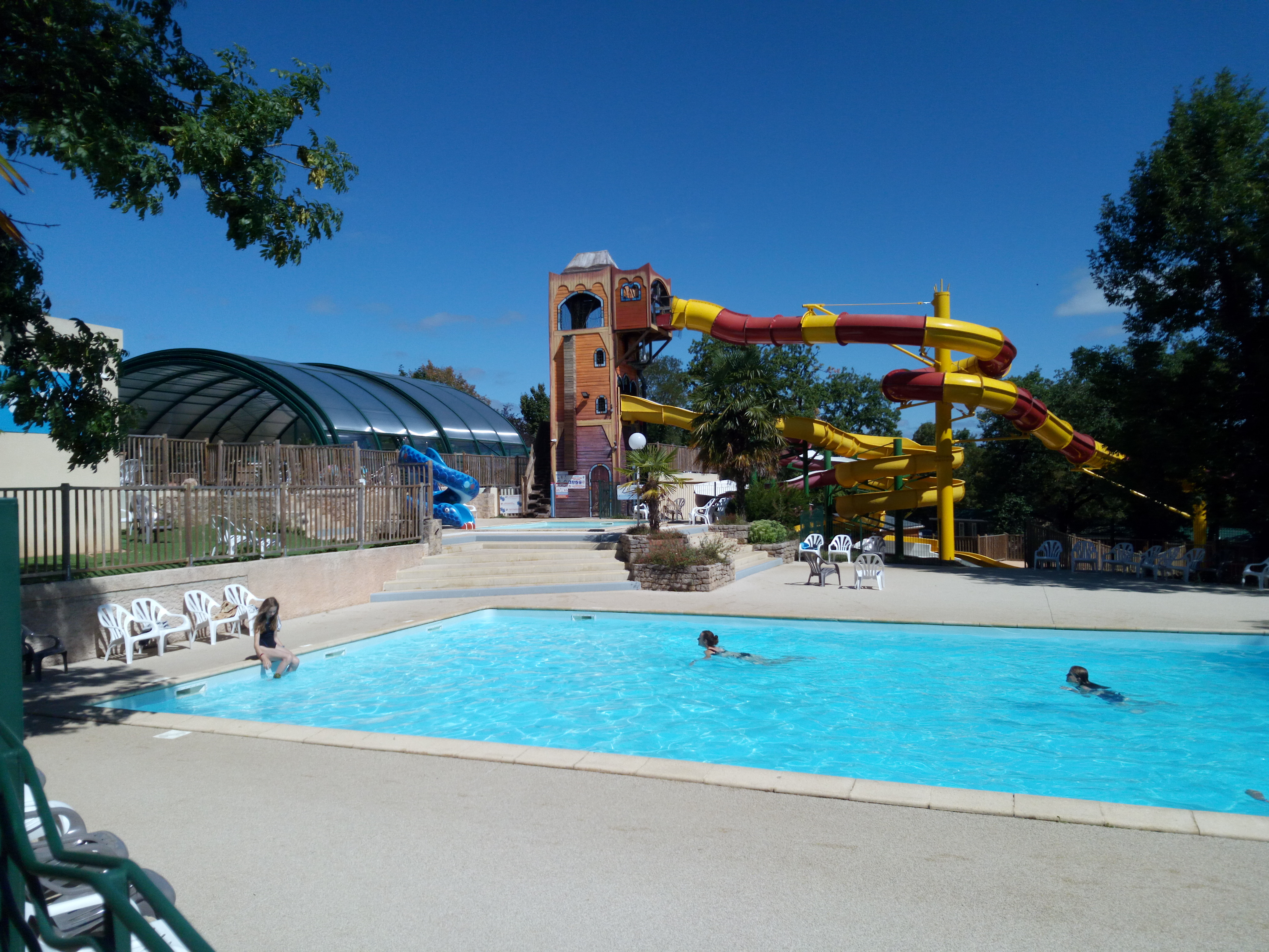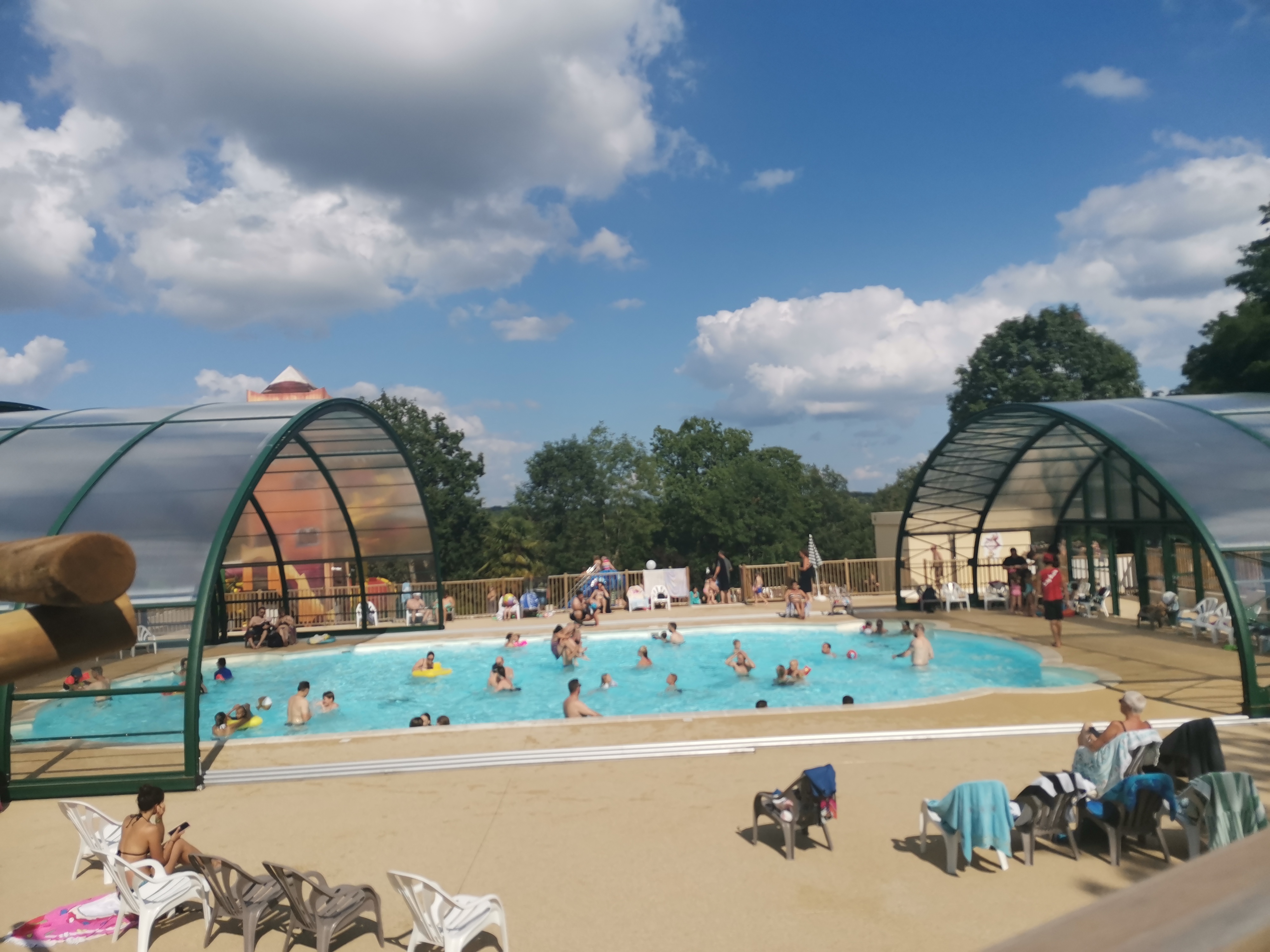 Nous habitons à 15 km de Padirac et ne connaissions pas ce camping qui est à taille humaine. Notre emplacement était bien ombragé comme la plupart. Piscines , toboggans, sanitaires rien à dire. Snack à horaire (un panini Nutella pour ma fille au goûter impossible) Un restaurant qui se donne des airs qu'il n'a pas (attention apéritifs servis en même temps que les plats, on râle un peu, ils retirent les plats qui vont gentiment patienter sur une table. 2 ou 3 minutes plus tard une personne arrive et nous dit dépêchez vous ça refroidi. Décontenancé on s'exécute. Et à la fin du repas ils sont trois autour de la table à nous expliquer qu'il n'est pas de bon ton de râler, qu'ils font bien leur travail). Camping sur 2 sites et d'après ceux du 2ème piscine froide et sale, donc tous au premier. Mais la semaine fut dépaysante juste ce qu'il fallait. Allez Margaux (je crois que c'est ça) sans animosité hein !?!