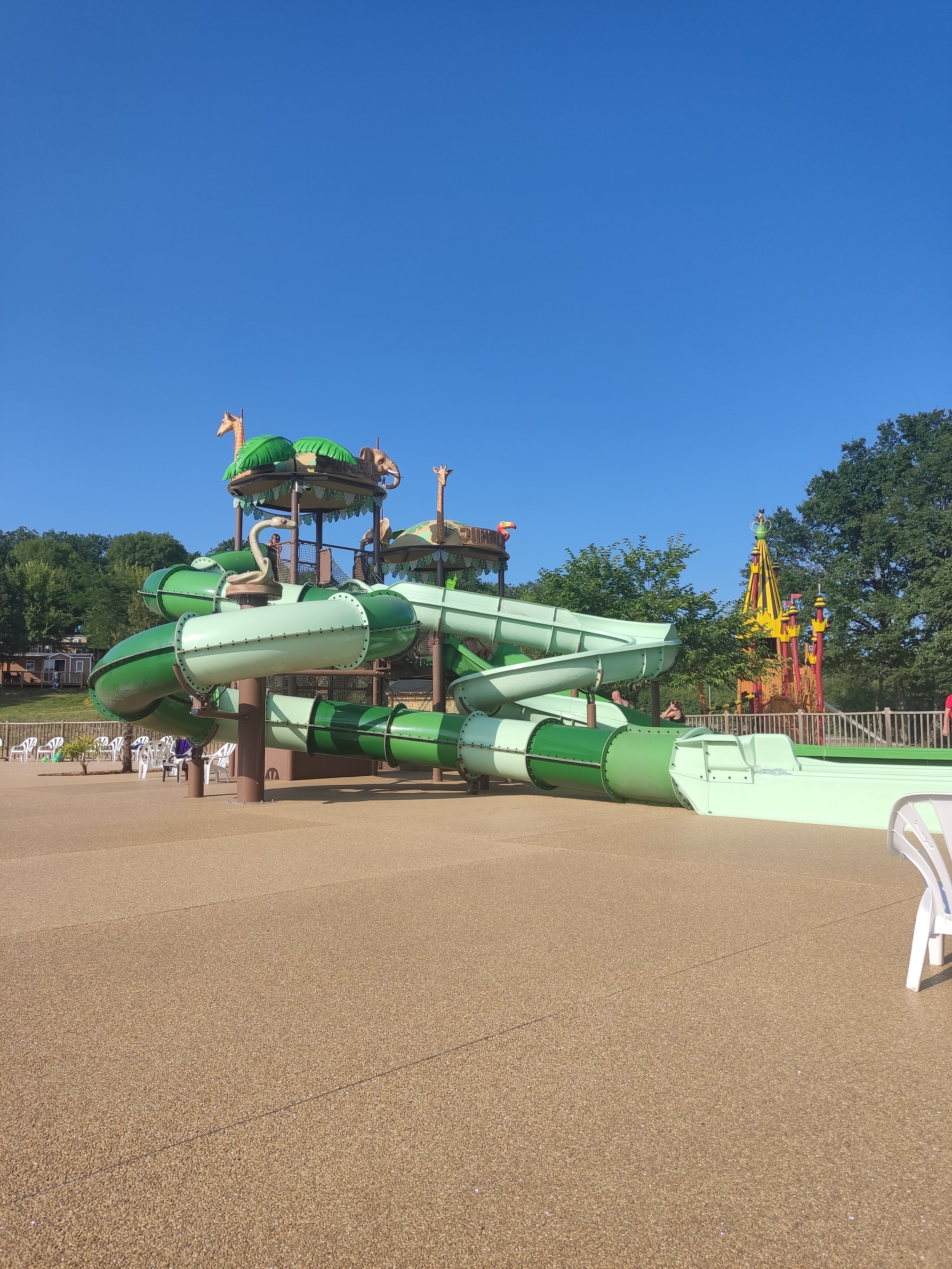 Attention message à prends très au sérieux arriver aujourd’hui la partie les chênes étant en travaux piscine non construit, aucun toboggan, juste des mobilehomes dans cette espace publicité mensongère. La seule piscine qui existe est dans la partie du parc vend des mensonges. Vous allez être très déçu si vous réserver dans le deuxième espace toujours en travaux, pas prêt d’être ouvert.