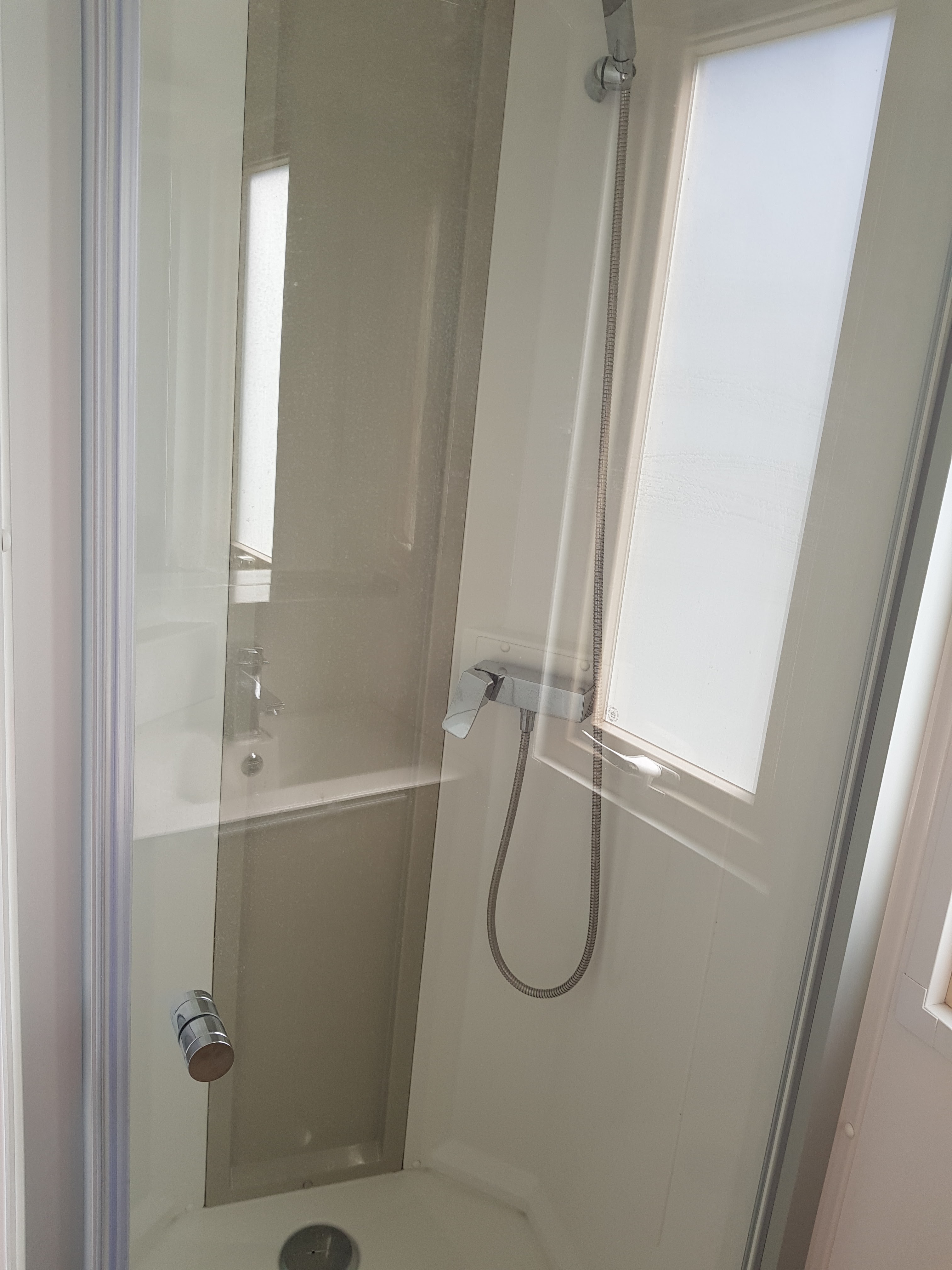 Mobile home sous dimensionnée lit chambre , pas de support dans douche, pas de rengement,