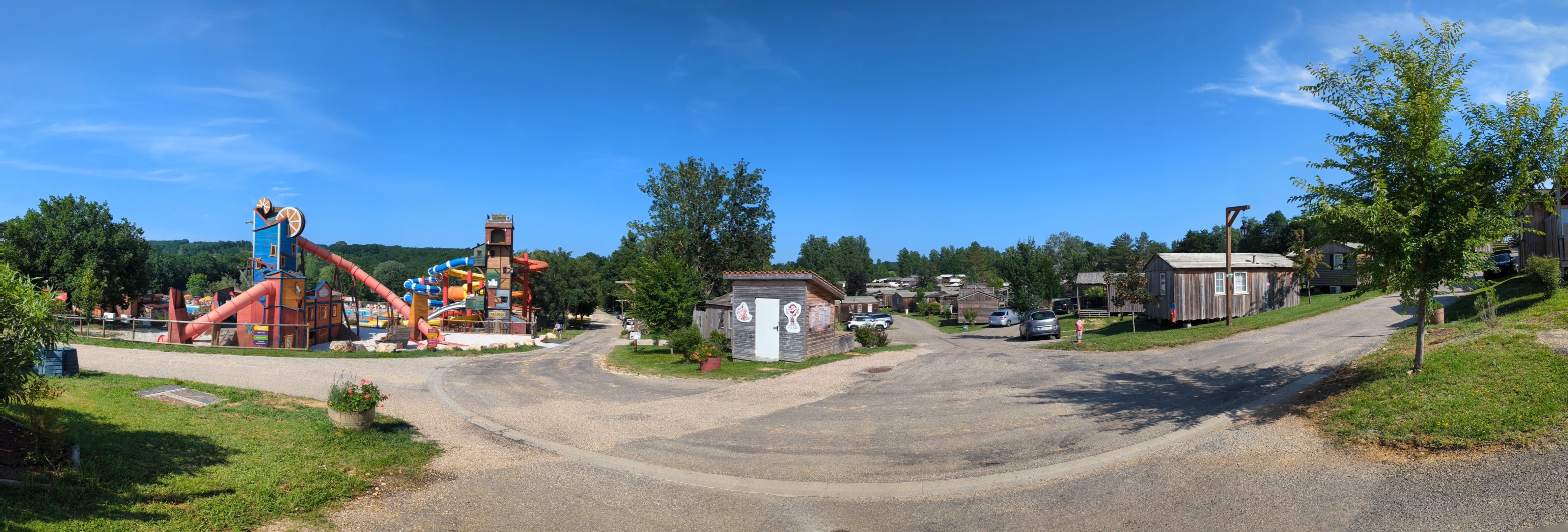 Camping avec grands toboggans, piscines chauffées, personnel agréable, mobilhomes récents bien équipés, mais beaucoup trop rapprochés les uns des autres et espaces verts non entretenus, très peu d'ombres. Voitures trop visibles sur les chemins
