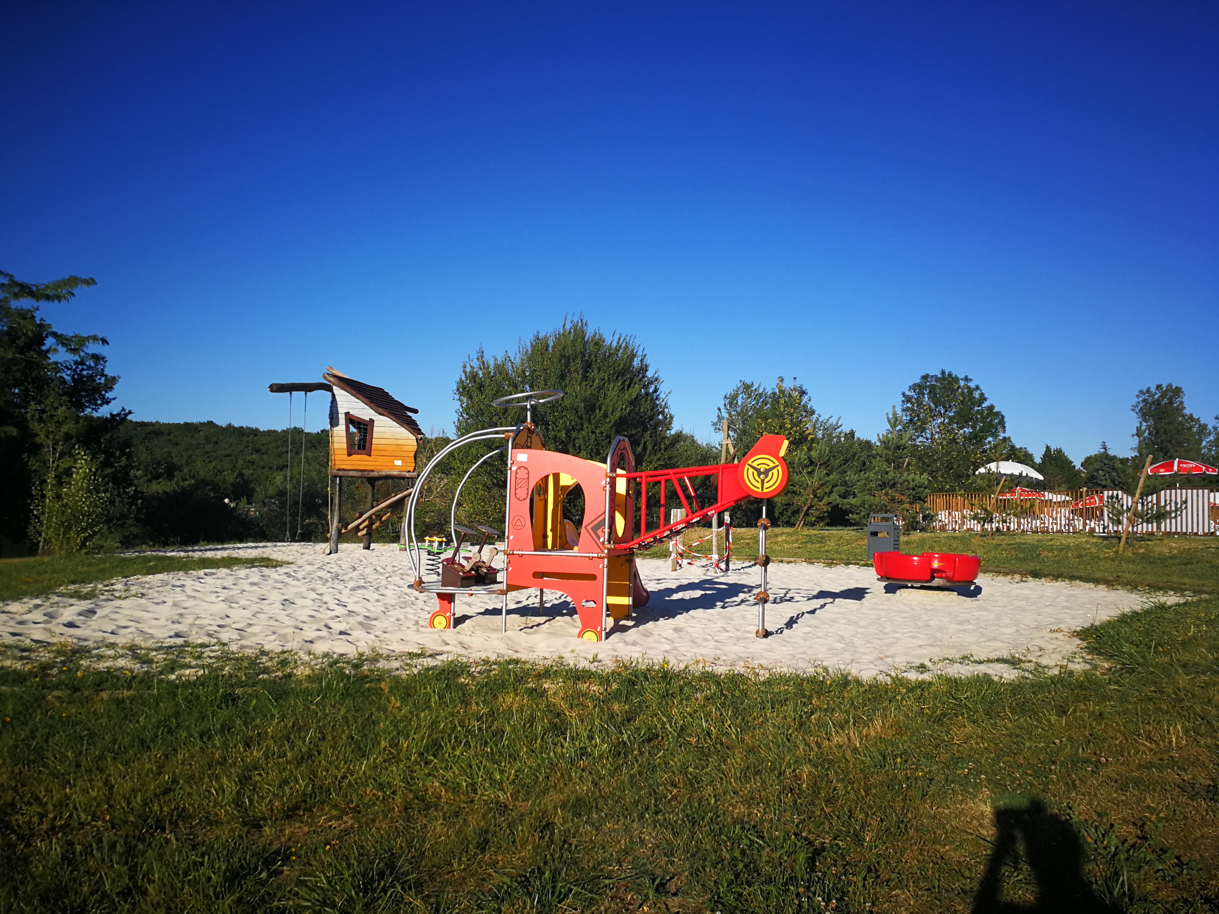 Le camping est sympa, tout est neuf avec mobile home tout equipé mais l'équipe d'animation n'etait pas motivée ni motivante. Une equipe bien jeune qui passait son temps sur les smartphones ou a faire des selfies. Le tout devant les gens du camping. Les jeux et animations manquaient d'organisation et de peps. En plus il y avait aucune communication dans le camping. L'espace jeux pour les enfants au bord du lac n'est pas rassurant. Et côté réseau téléphonique c'est la galère: Free et Bouygues ne passe pas du tout. Le camping pourrait rendre la wifi gratuite juste pour ça...mais non. En plus nos voisins qui ont payé ne captait pas bien la wifi dans le mobile home?! Bref a part la piscine je ne conseille pas ce camping.