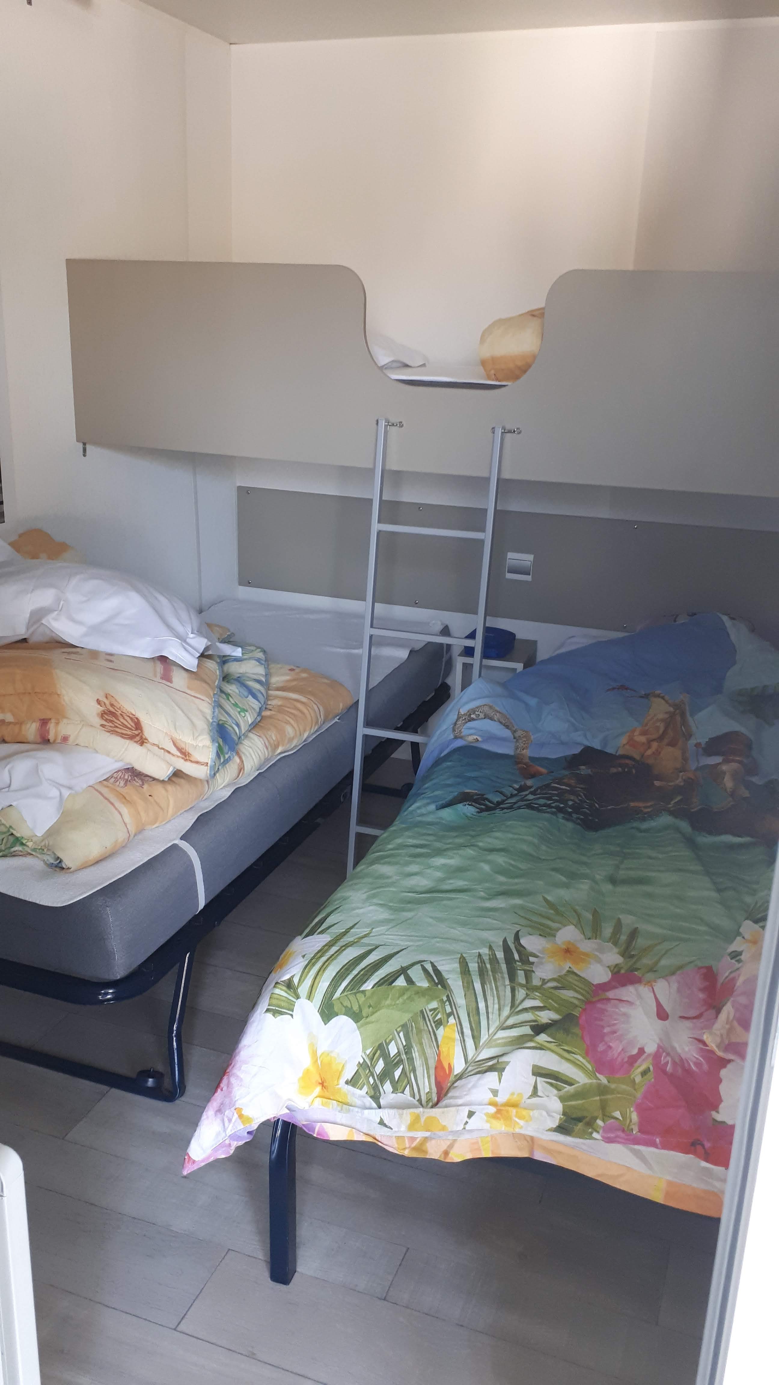 Premières vacances seule avec mes garçons de 4 et 12 ans. Mobil-home au top (avec pour la première fois une salle de jeux, comprenant cuisine, établi, télé...mon fils de 4 ans a adoré. Surtout pas de temps de pluie) . Arrivée et départ facile. Personnel au top et très à l'écoute d'amélioration. Des jeux a différents endroits dans le camping. Une piscine couverte. Tout était parfait