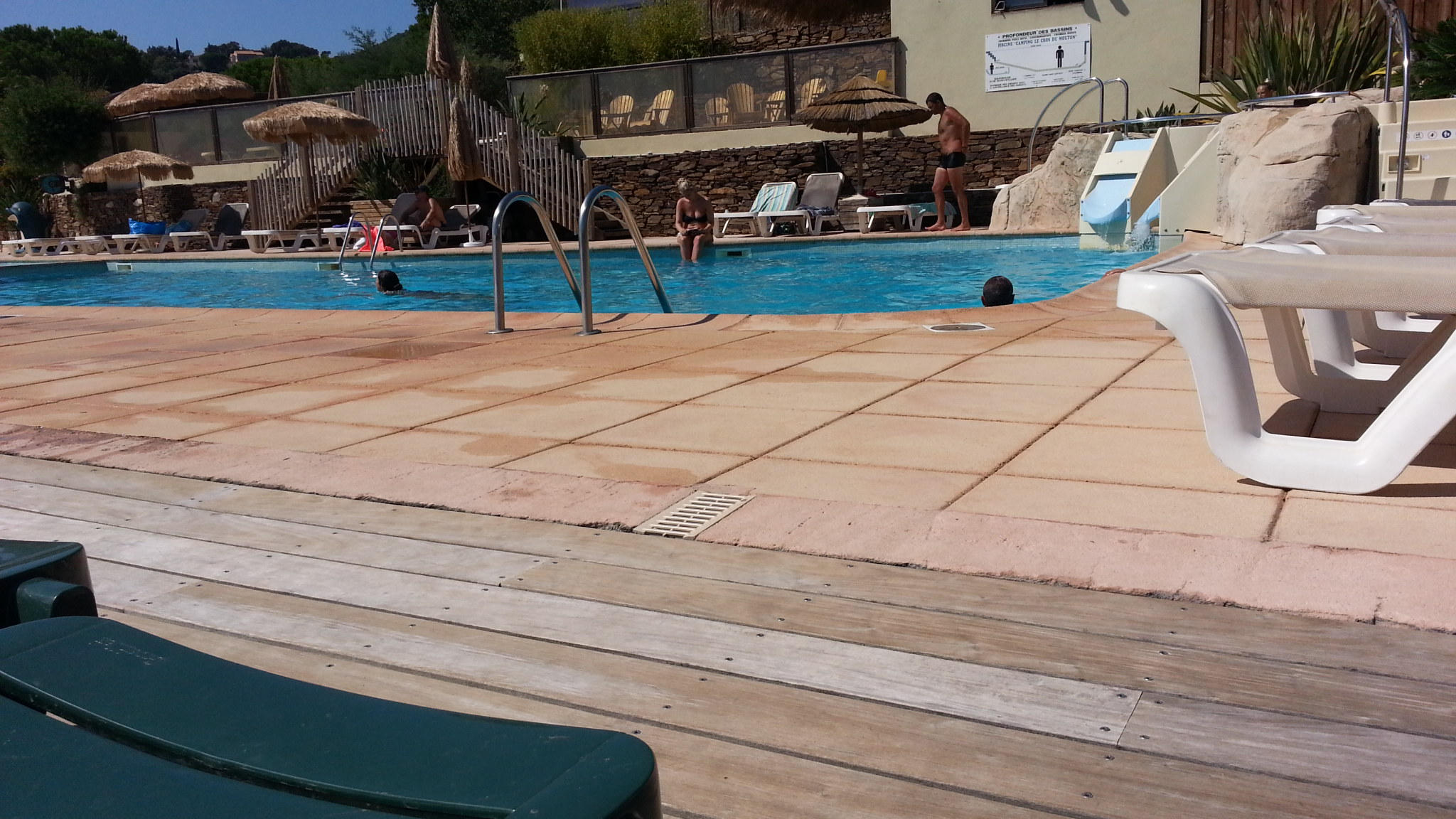 On est sur la route du retour après une chouette semaine de vacances. On avait un chalet luxe : la location est grande, la terrasse est tjrs à l’ombre ainsi qu’un espace transat au calme sous les arbres. Pas de vis à vis et bcp de verdure c’est très calme. La baie vitrée est coulissante et s’ouvre entièrement. Juste la douche est un peu basique. Le cadre de la piscine est magnifique. La pataugeoire ludique est top pour les p’tits ainsi que le toboggan pour les plus grands. Ça surprend une piscine si profonde (1m80 casi de suite) mais ils prêtent des frites et finalement y’a rien de plus kiffant que la sensation de flotter. Les enfants sautent dans l’eau mais la cohabitation se passe bien. L’eau est super chaude. Et pour une maman c’est super important : ça ne glisse pas ! L’équipe d’animation est sympa mon grand a bcp apprécié le mini club. L’ambiance en générale est chaleureuse toute l’équipe est souriante et sympathique. Je recommande +++