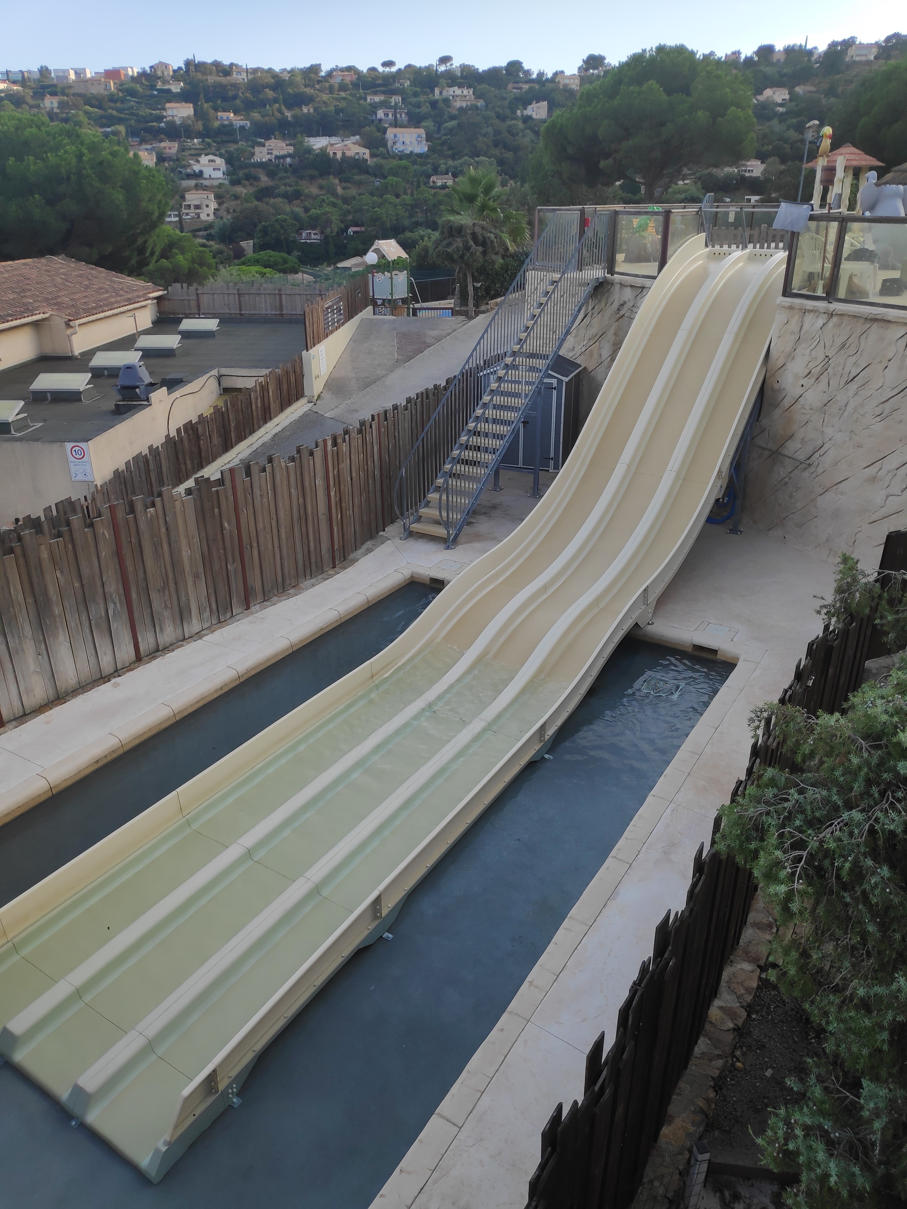 Les côtés positifs: -La navettes gratuites pour nous déposer au centre de cavalaire sur mer (plage) -Le parc aquatique -restaurant très agréable vue sur cavalaire (Les pizzas étaient délicieuses) - personnelles agréables -sanitaires très correctes -terrains très correctes hormis le raccordement à l'égout Le seul bémol,c'est un camping à étage, avec nos petits en bas âge c'était galère. En tout cas merci, nous avons passés de bonnes vacances.