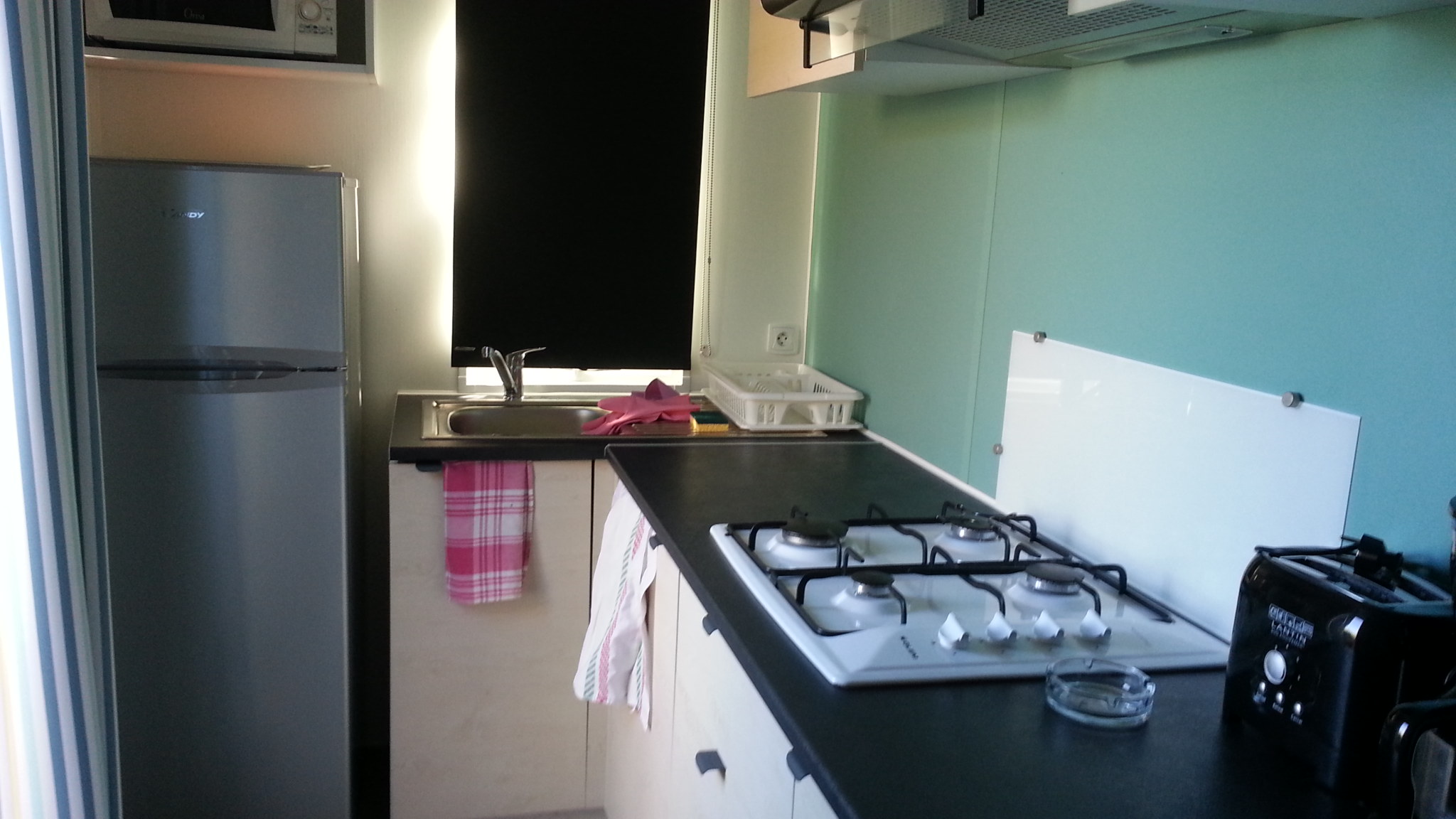 Camping agréable. Camping très calme. Par contre un peu loin de la mer. A pied il faut une bonne demi heure pour descendre à la plage ou centre ville. Mais quand on l'a descendu il faut surtout remonter et si on est chargé cela fait loin. Le bungalow très bien, propre et très fonctionnel. Par contre l'emplacement, moyen. Après 8h du matin plus de soleil car caché par un grand arbre devant le mobil home. Il y avait 2 bains de soleil qui n'ont servi à rien car aucune possibilité de s'allonger ou alors il fallait les coller au grillage près du passage et même pas côte à côte mais l'un derrière l'autre.