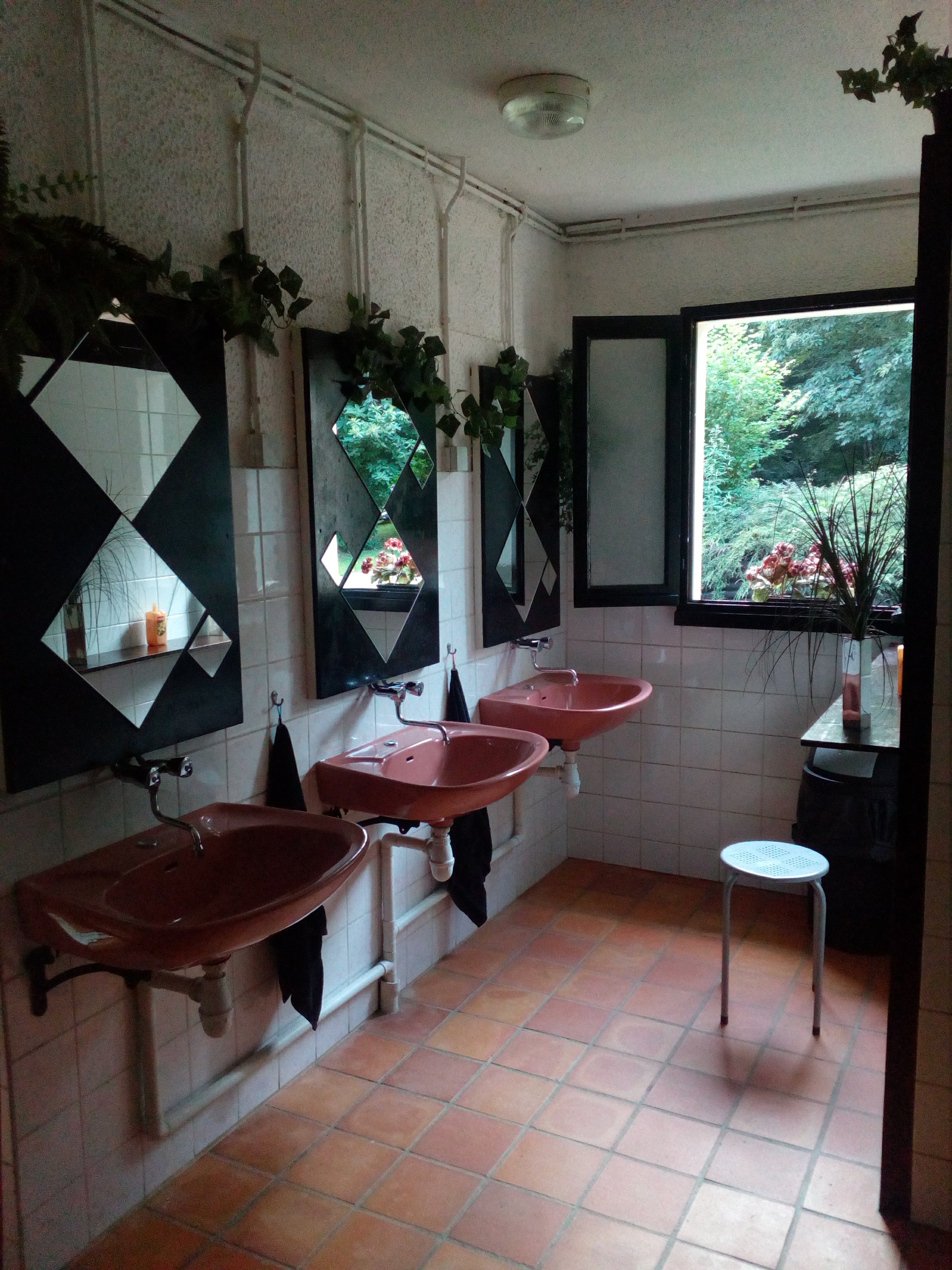 Après une longue balade à vélo et ce camping en tête avec des propriétaires néerlandais, nous sommes aimablement reçus par un propriétaire français. Au début, nous pensions que c'était peut-être son fils... mais sur le tableau à la réception il y a des photos des nouveaux propriétaires. Malheureusement le restaurant est fermé, nous sommes après tout lundi, mais heureusement le bar est ouvert. Bien pour une nuit, c'est merveilleusement calme.