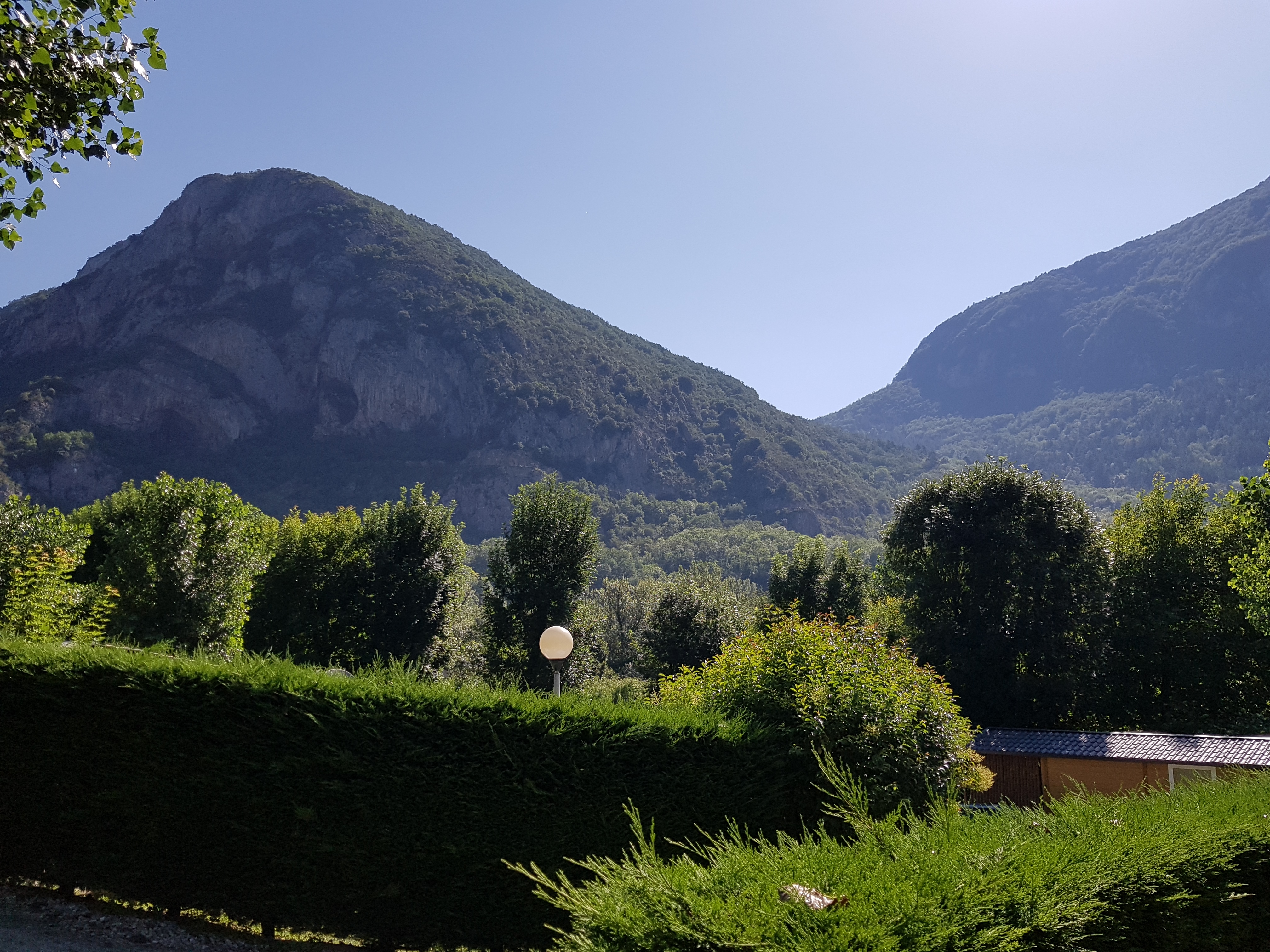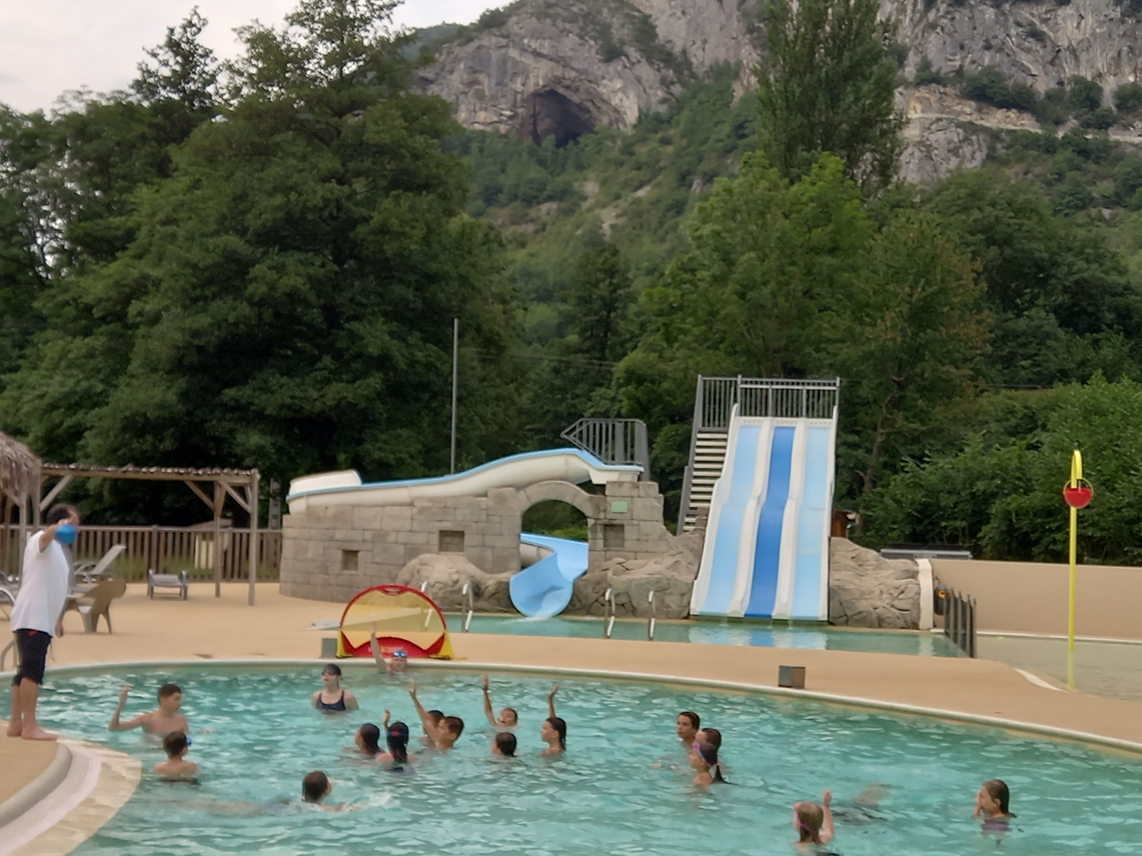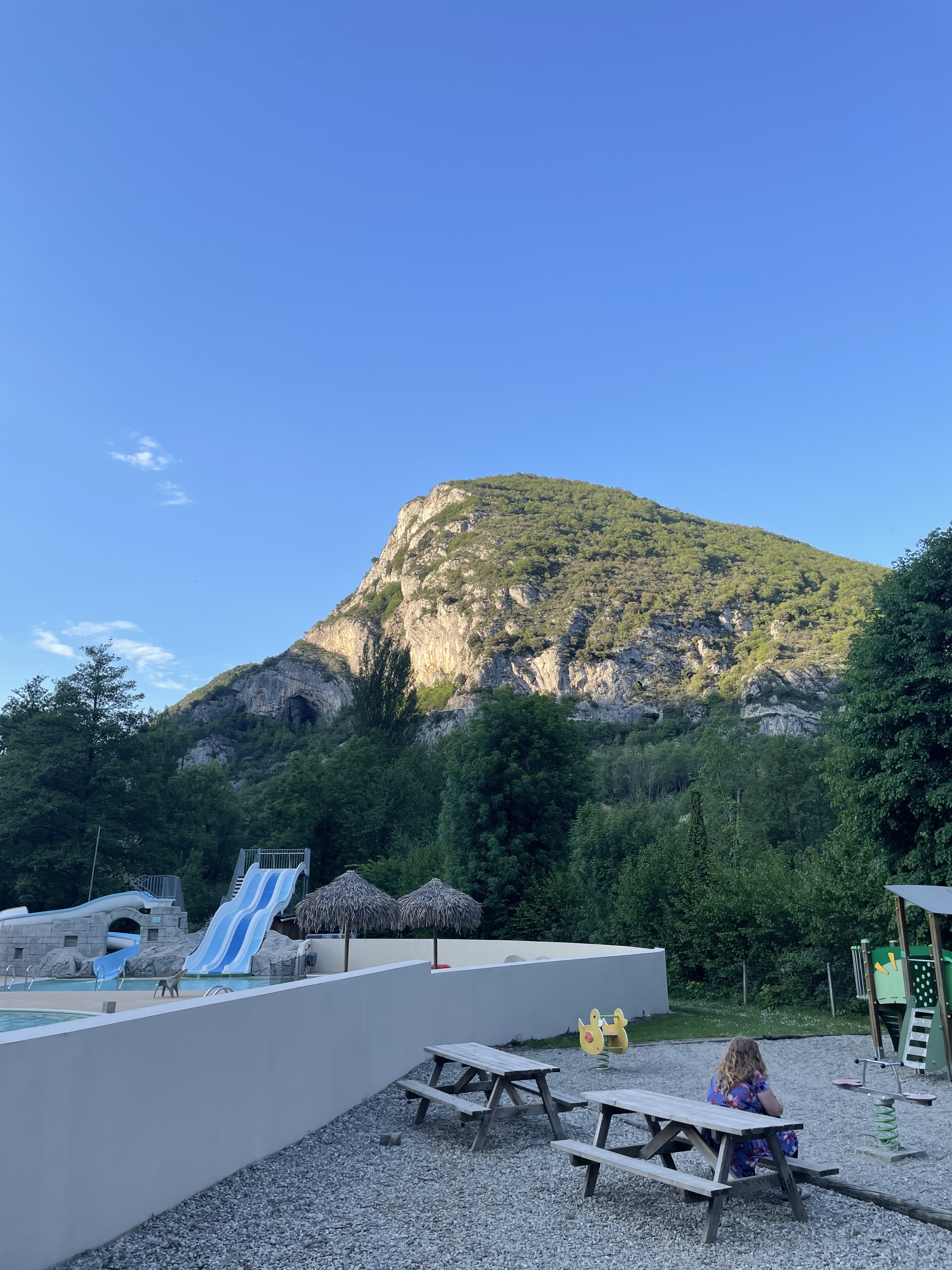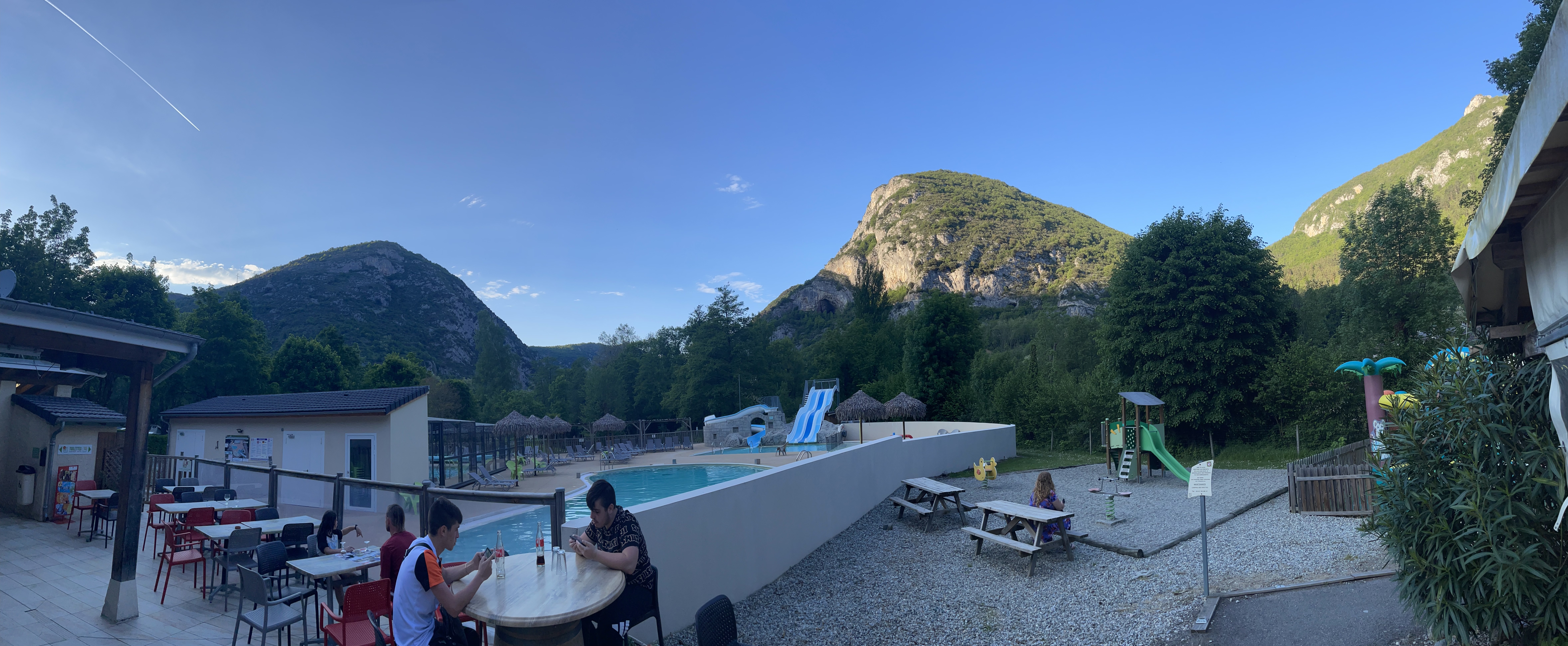 Super camping avec une vue des montagnes magnifique. La piscine est un peu petite mais ont s'amuse sans soucis. 2 toboggans bien. A proximité du camping plein d'activité a faire c'est top.