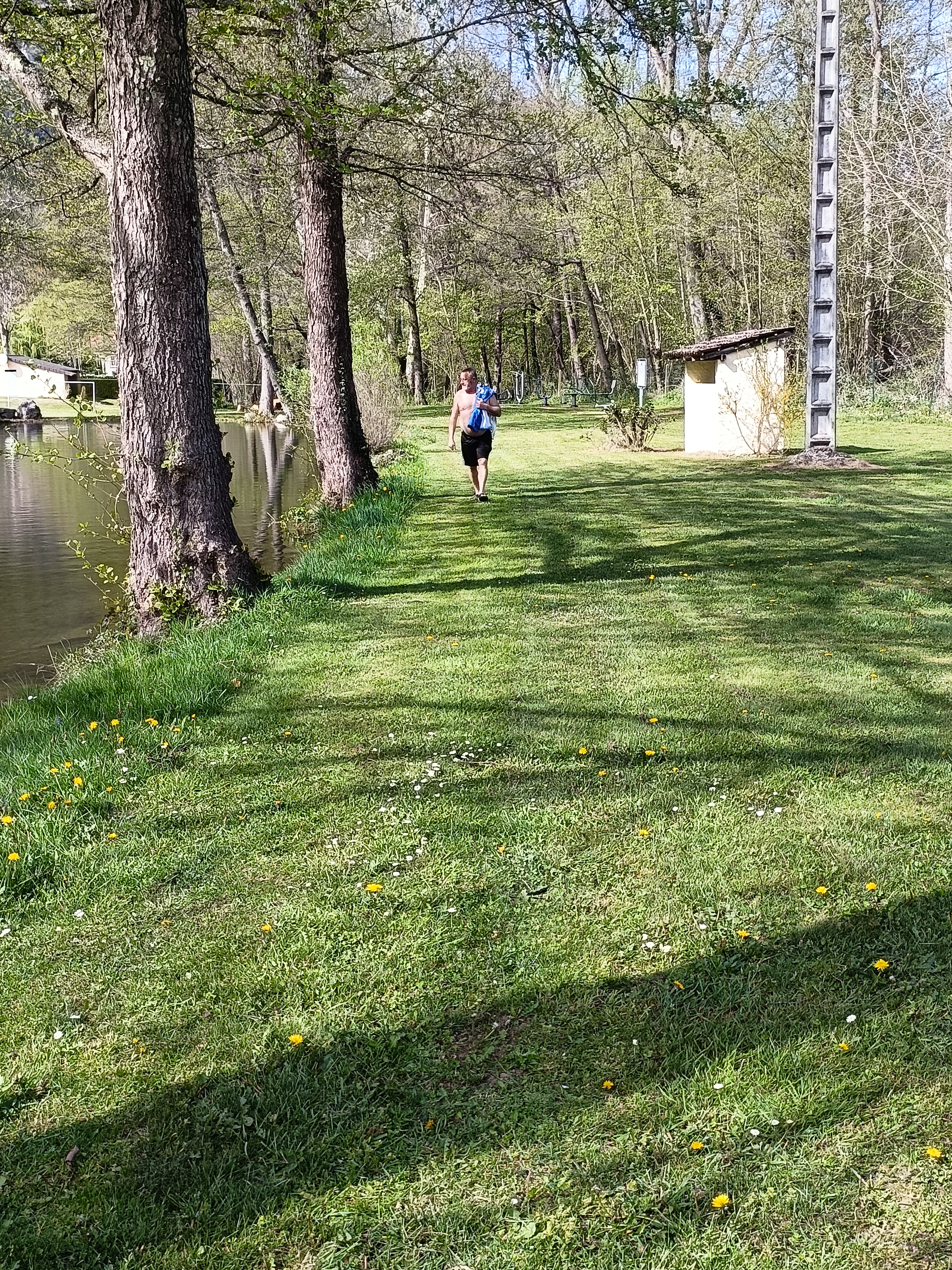 Camping agréable très bien équipé et entretenu avec bar/brasserie, piscines chauffée, épicerie de dépannage, pain et viennoiserie. Accueil souriant et professionnels. Emplacement de camping spacieux et bien délimité et verdoyant. Étang de pêche accessible uniquement le vendredi après-midi lors d'un concours organisé par le camping. Mais rivière à la sortie du camping. Super on reviendra avec plaisir