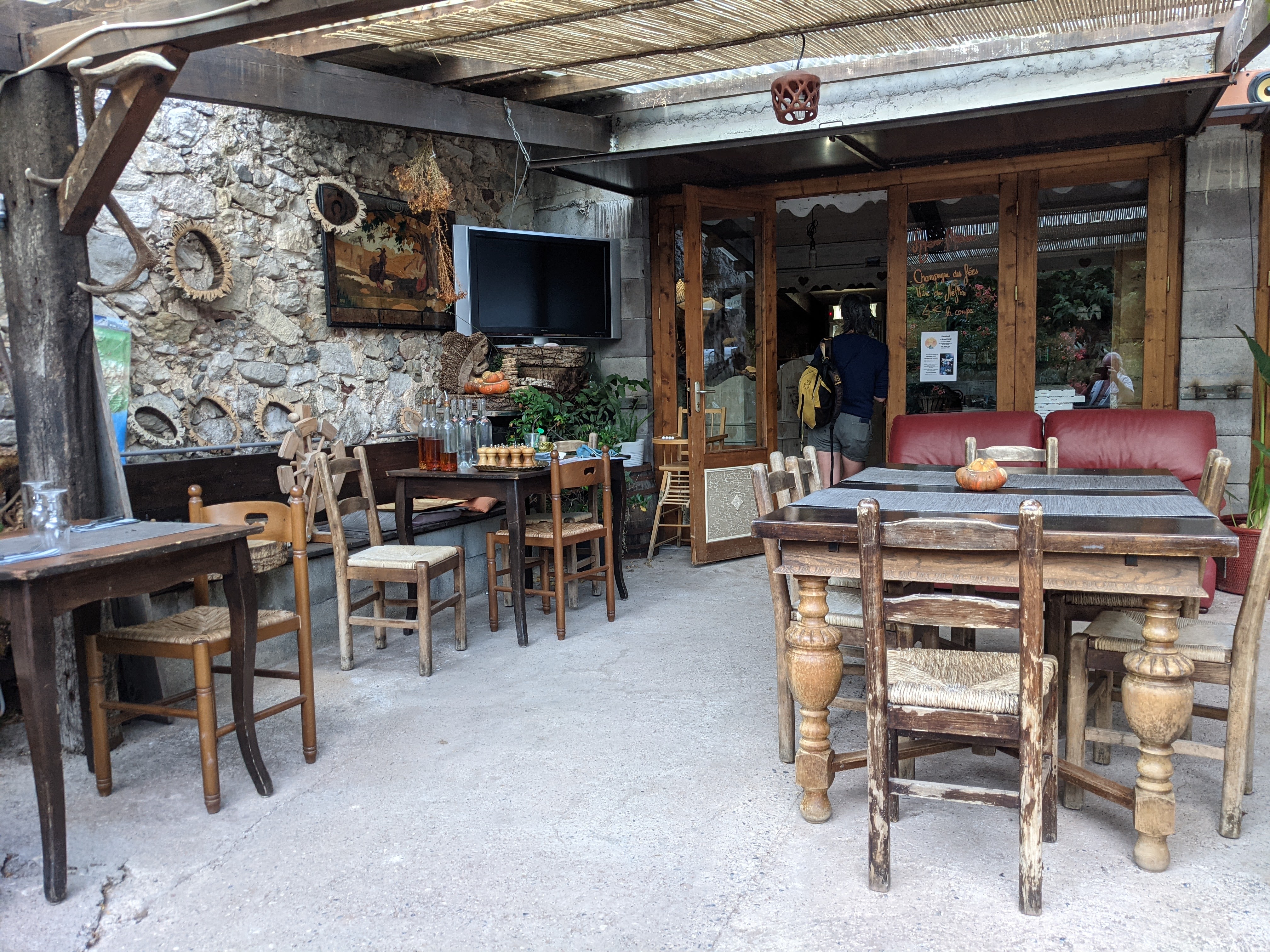 C'était un endroit confortable, assis sur une belle terrasse et il y avait une bière fraîche et la fille qui y travaillait était sympa même si je ne parlais pas français. J'ai installé une tente sur une grande pelouse et c'était dans un cadre naturel magnifique, près d'une grande gorge. Ce n'était pas loin d'une petite ville avec plusieurs restaurants et bars. C'était agréable et calme d'y vivre. La bière était un peu chère, mais le cadre était magnifique.