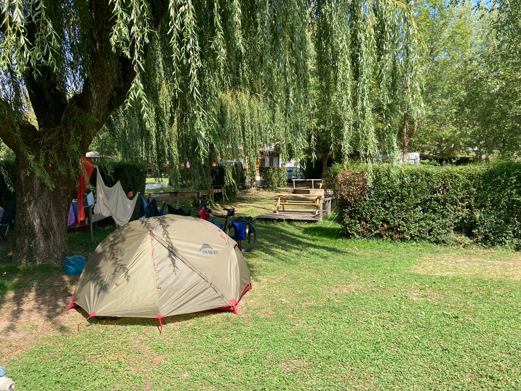 Cyclotourisme. Le meilleur camping que j'ai utilisé. Personnel serviable. Les toilettes sont un peu vieilles. A côté de viaRhona. Près de Carrefour. Belle vue. La tente est bien assise, beaucoup d'ombre - pourrait être aplatie par endroits.