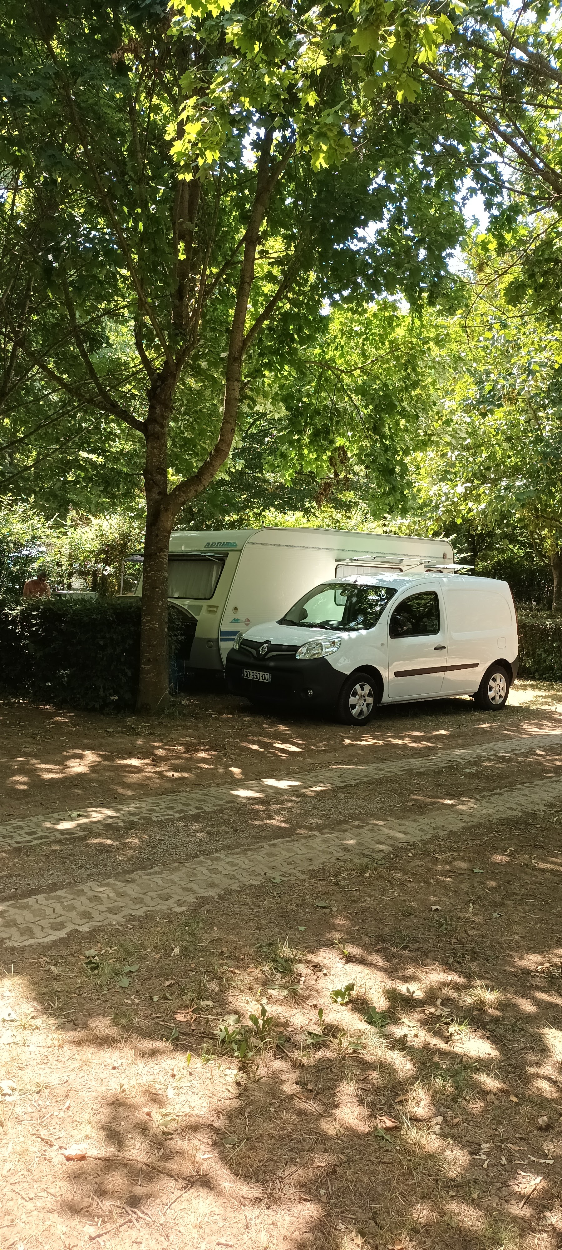 Grands emplacements très ombragés . Calme. Camping car plus remorque porte voiture et voiture sans problème.