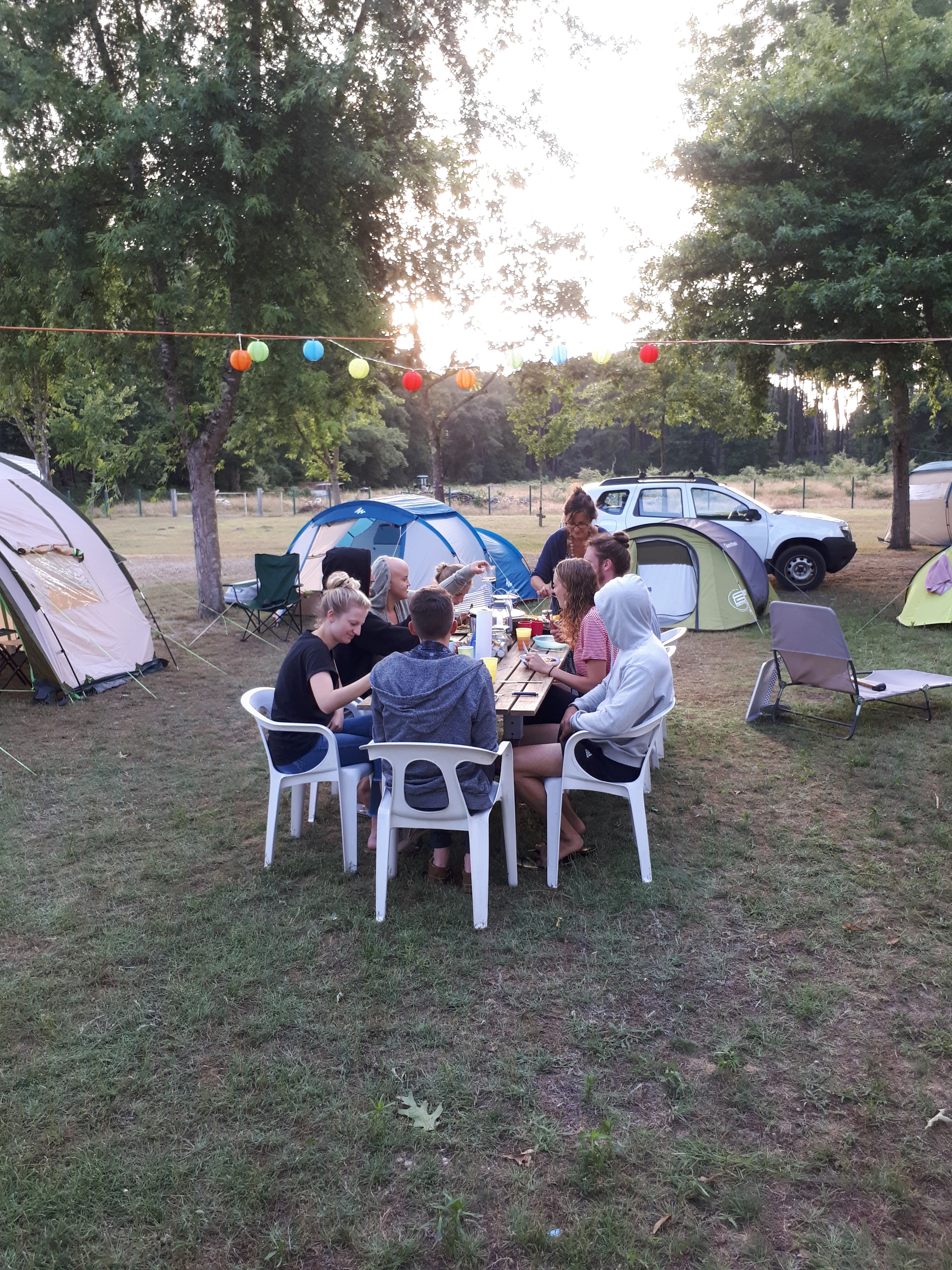 Beau camping familial. Arbres, herbe et silence. Hors saison. Des invités conviviaux
