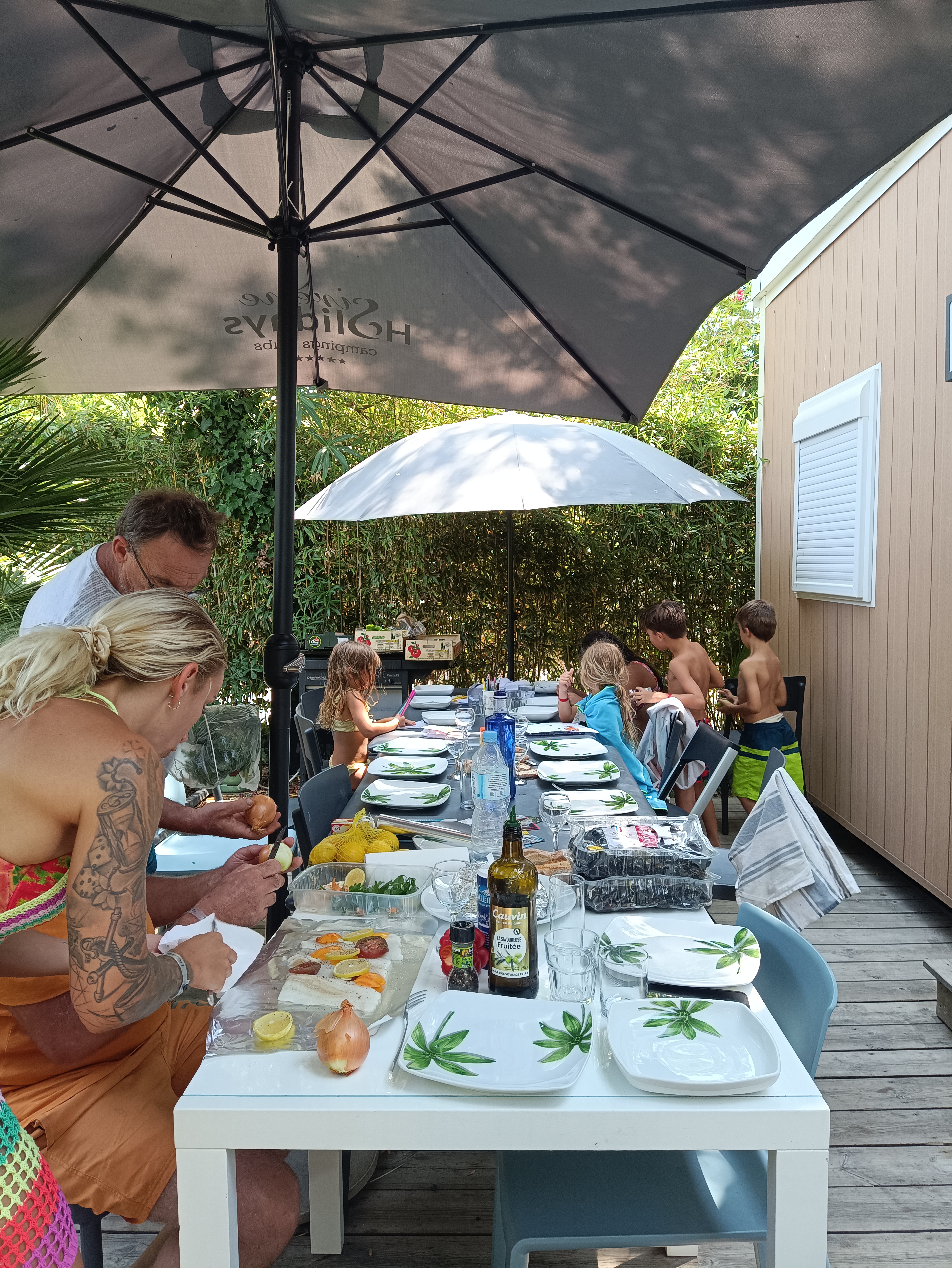 Bien mais .... Circulation au sein du camping difficile. Le parasol ne suffit pas pour ombrager la terrasse, il serait mieux de la couvrir totalement. Beaucoup trop d'attente pour le snack et les glaces, nous avons vite abandonné, c'est la première fois que nous ne consommons pas entièrement notre budget ! Navettes pour la plage pas assez fréquentes : dernier départ de la plage à 18 heures !
