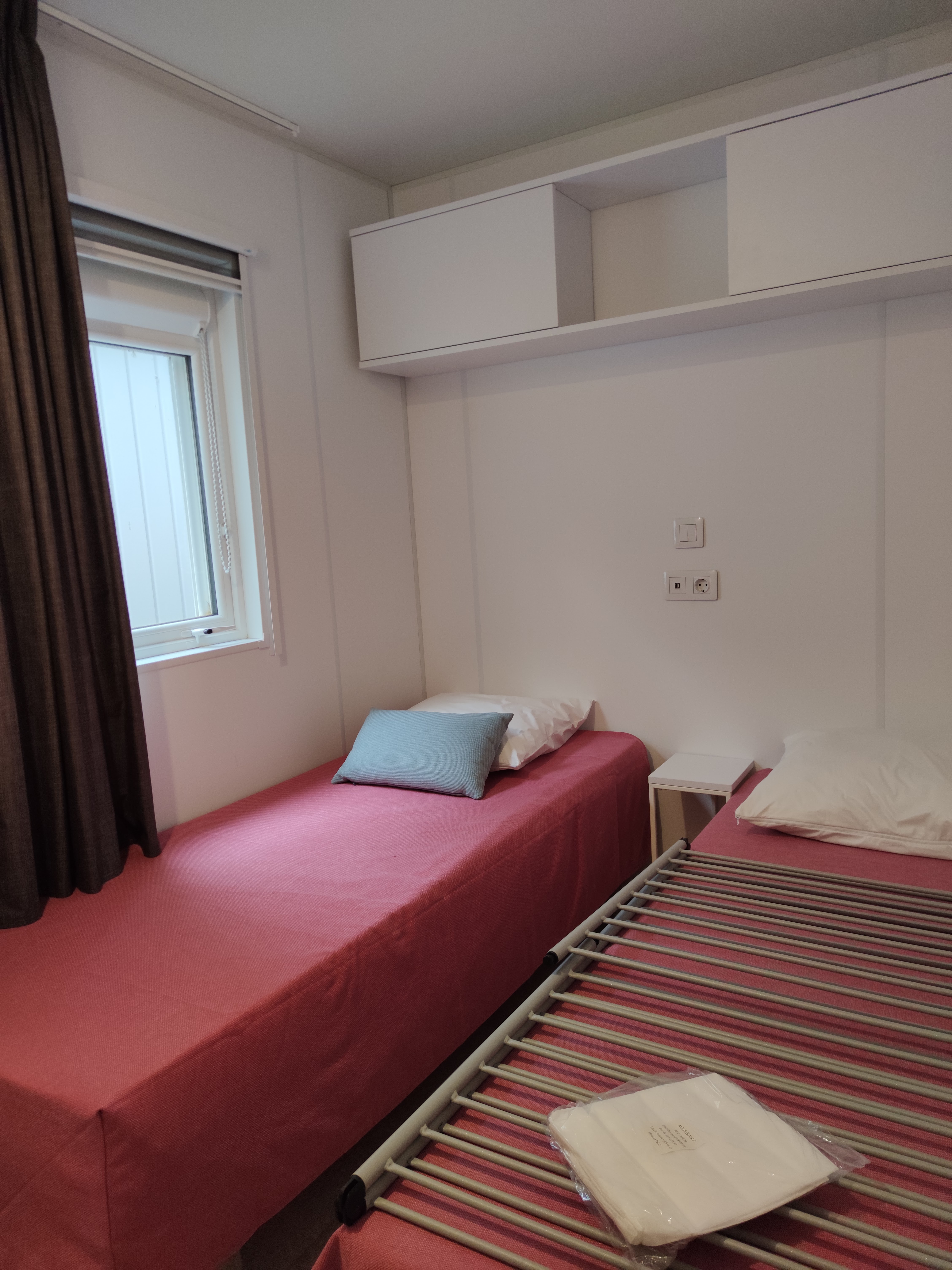 Matelas un peu abîmés mais très bon mobil-home avec de très bon équipement. Très nombreux choix d'activités pour les adultes et les enfants pour les prés adolescents les activités sont restreintes. La piscine extérieure est un peu froide mais cela vient de la saison. Je recommande de passer ces vacances, le camping est proche d'un magasin mais également de la plage et de Collioure.