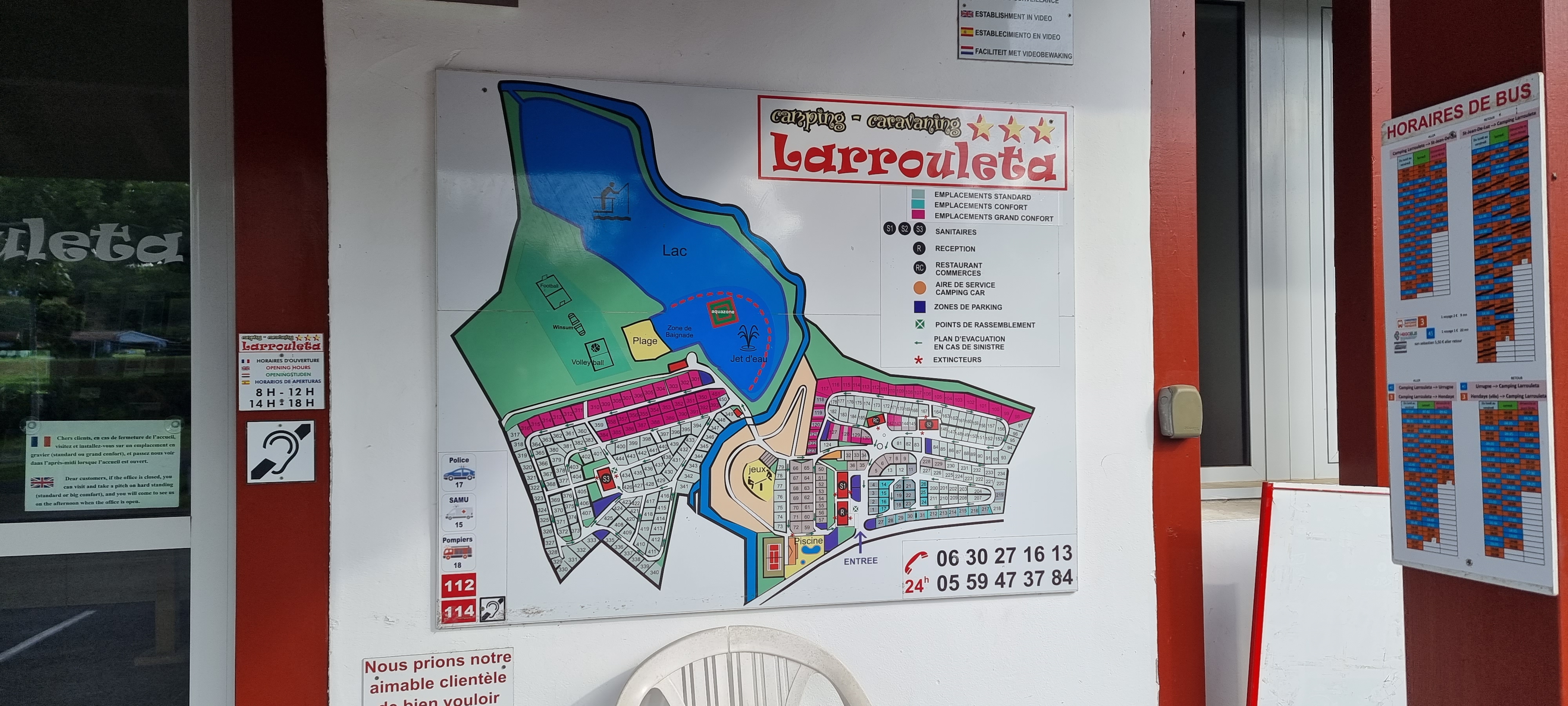 Beau camping avec un personnel sympathique et serviable. Dès le premier e-mail jusqu'à notre départ, le personnel n'aurait pas pu être plus sympathique ou plus serviable. Le site est spacieux et bien aménagé avec un restaurant et un bar au centre du site, avec une piscine avec une couverture pour les journées nuageuses et couvertes ainsi qu'un grand lac, idéal pour se promener pour le chien. Les emplacements sont spacieux et la plupart sont séparés des emplacements attenants par de petites haies ou arbustes. Les blocs sanitaires et les installations sont très propres. Il y avait de l'eau chaude pour les douches et la vaisselle tard dans la soirée. La zone commerciale voisine avec un grand supermarché, des boutiques et une boulangerie est à environ dix minutes à pied. Vous obtiendrez à peu près tout ce que vous recherchez. Nous avons également apprécié un repas au restaurant du camping le premier soir. Très heureux de notre séjour au Camping Larrouletta, un camping que nous visiterons à nouveau avec plaisir. Le contact par email était excellent 👌.