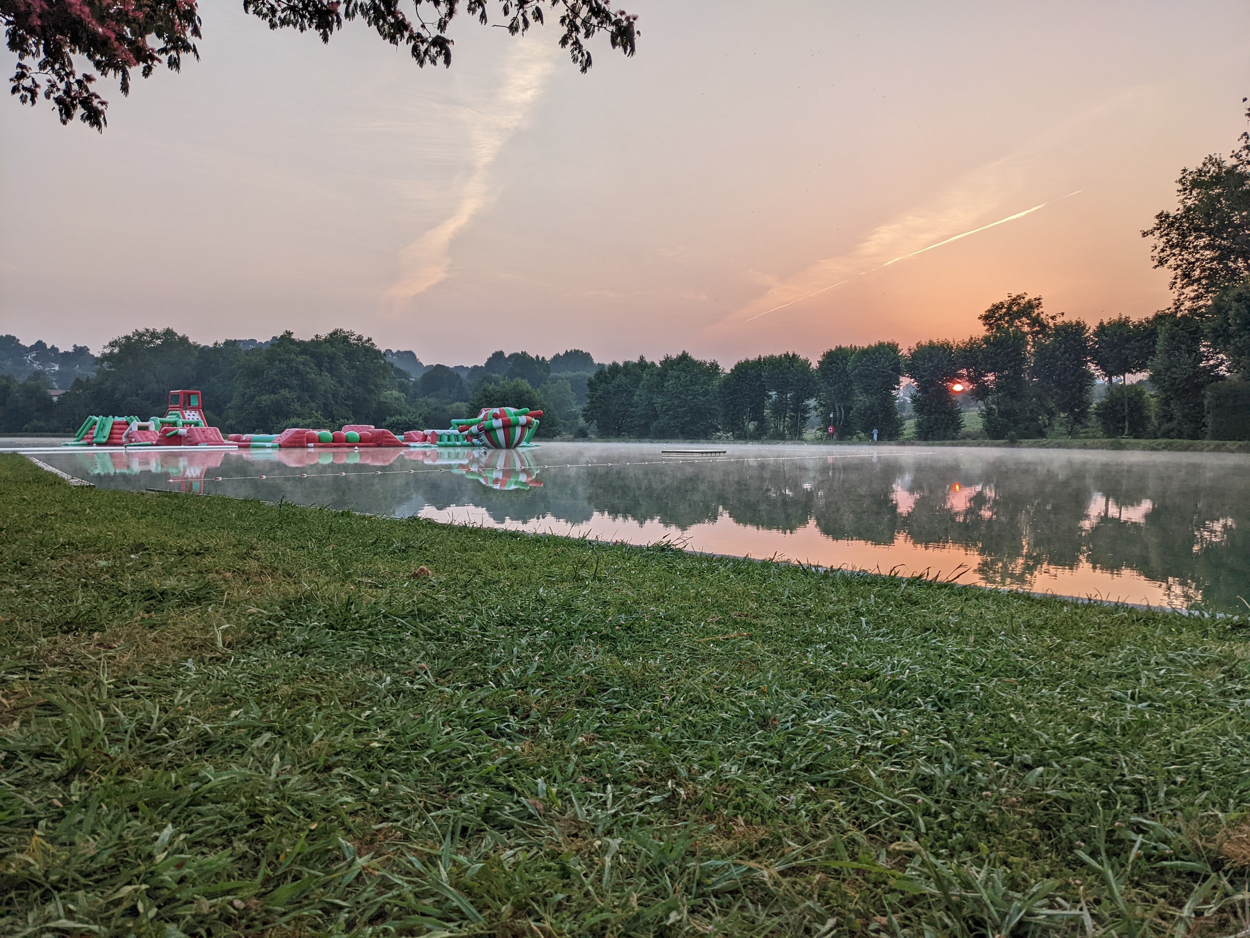 Super camping en tente sur un emplacement bien aménagé. Le lac où il est possible de se baigner (petite plage de sable), de faire du paddle et du pédalo gratuitement, ainsi que la base de structure gonflable esprit Total Wipeout, un vrai plus. Le personnel était accueillant et présent.