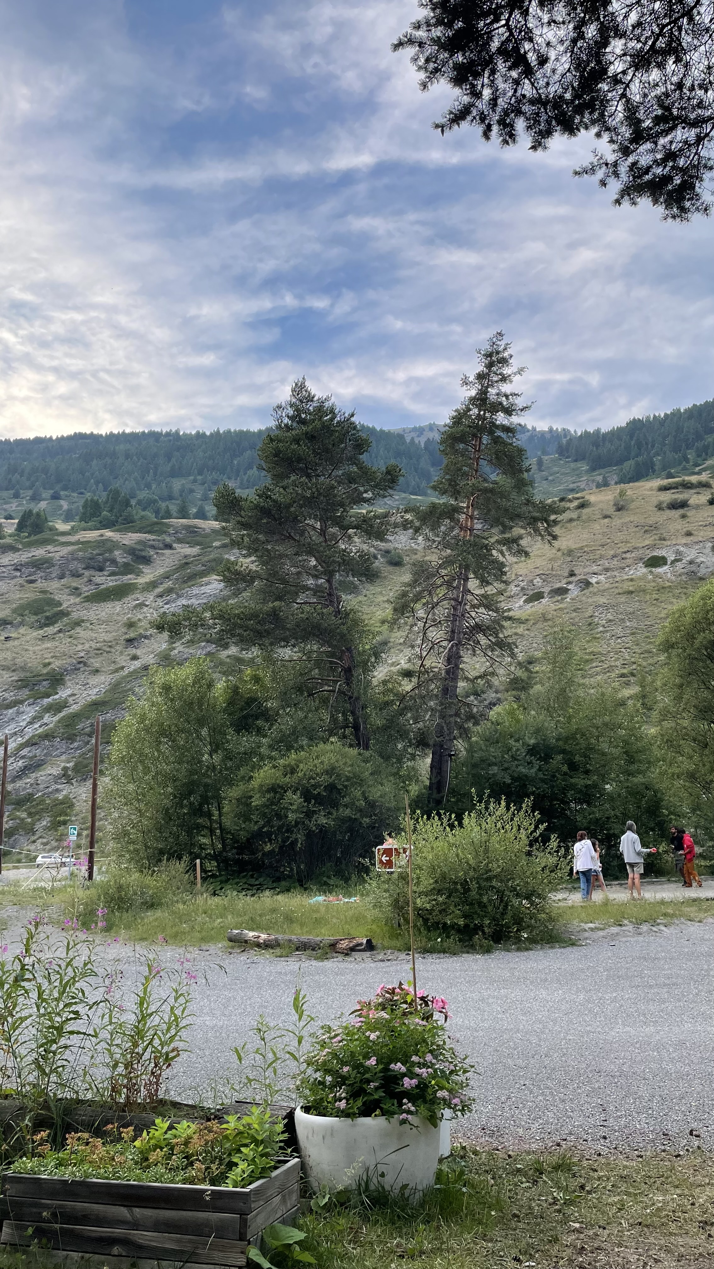 2 personnes en fourgon Camping très rustique, sanitaires y compris. Emplacements immenses, sous les pins. La route en impasse vers Abriès et chemins de randonnées longe le camping, ce qui peut occasionner des nuisances sonores en haute saison. J'ai été surprise par le tarif trop élevé à mon sens pour des prestations aussi basiques.