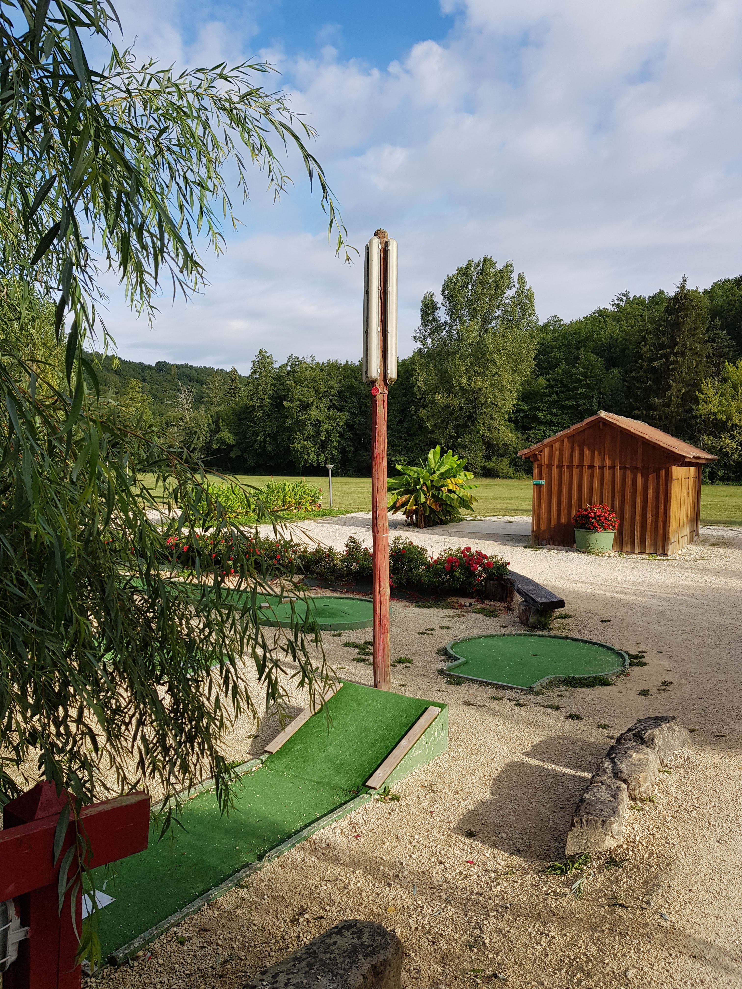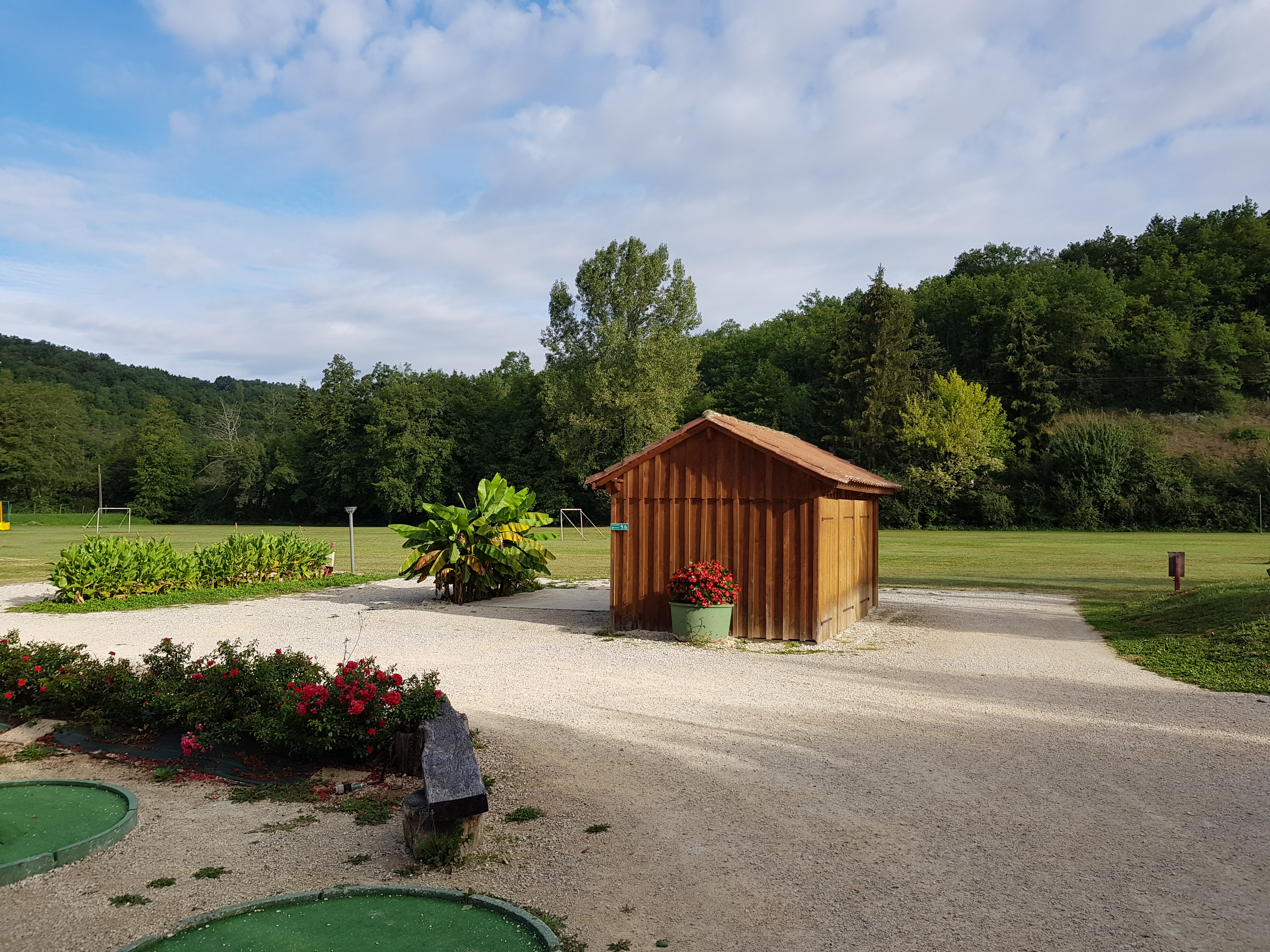 Un beau petit camping à dimension familiale car peu de MH donc pas de chahut, pas de bruit. Un bel endroit pour se reposer. Des gens charmants qui tiennent ce camping. Un mini golf un peu defraichi qd mm. Une structure gonflable pour les tout petits. Une petite piscine chauffée. Un très bon restaurant, on y mange très bien. A côté, un étang où se baigner et pêcher. Niché dans une cuvette, au milieu de la campagne mais proche de Sarlat en 10 min. Seul bémol pour les ados: le manque d'animation.