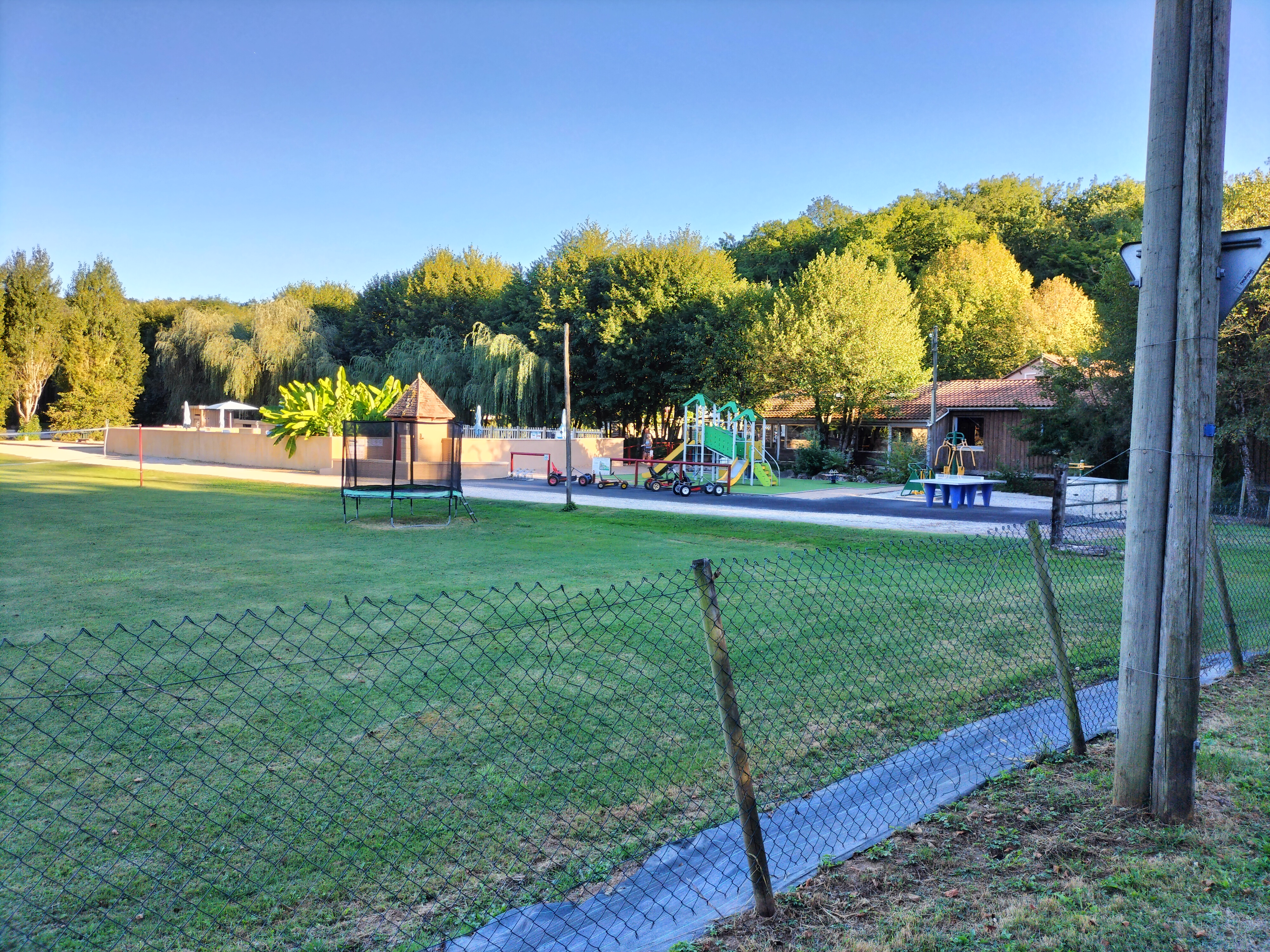 Camping très calme comme les propriétaires c'est très familiale il y a de quoi s'amuser sur place une piscine, des trampolines, un restaurant, des kartings a pédale il y a l'étang a côté pour la baignade ou la pêche en plus on peut faire du VTT a côté dans les forêts qui entoure le camping pour ma part j'ai loué un bungalow il sont disposés au calme le nôtre était a l'ombre des arbres il sont propre le camping fait aussi dépôt de pain a récupérer le matin. PS bonne vacances et il y a plein de choses à faire ou a visité dans le Périgord le camping est situé à 15 minutes de Sarlat au calme à la campagne.