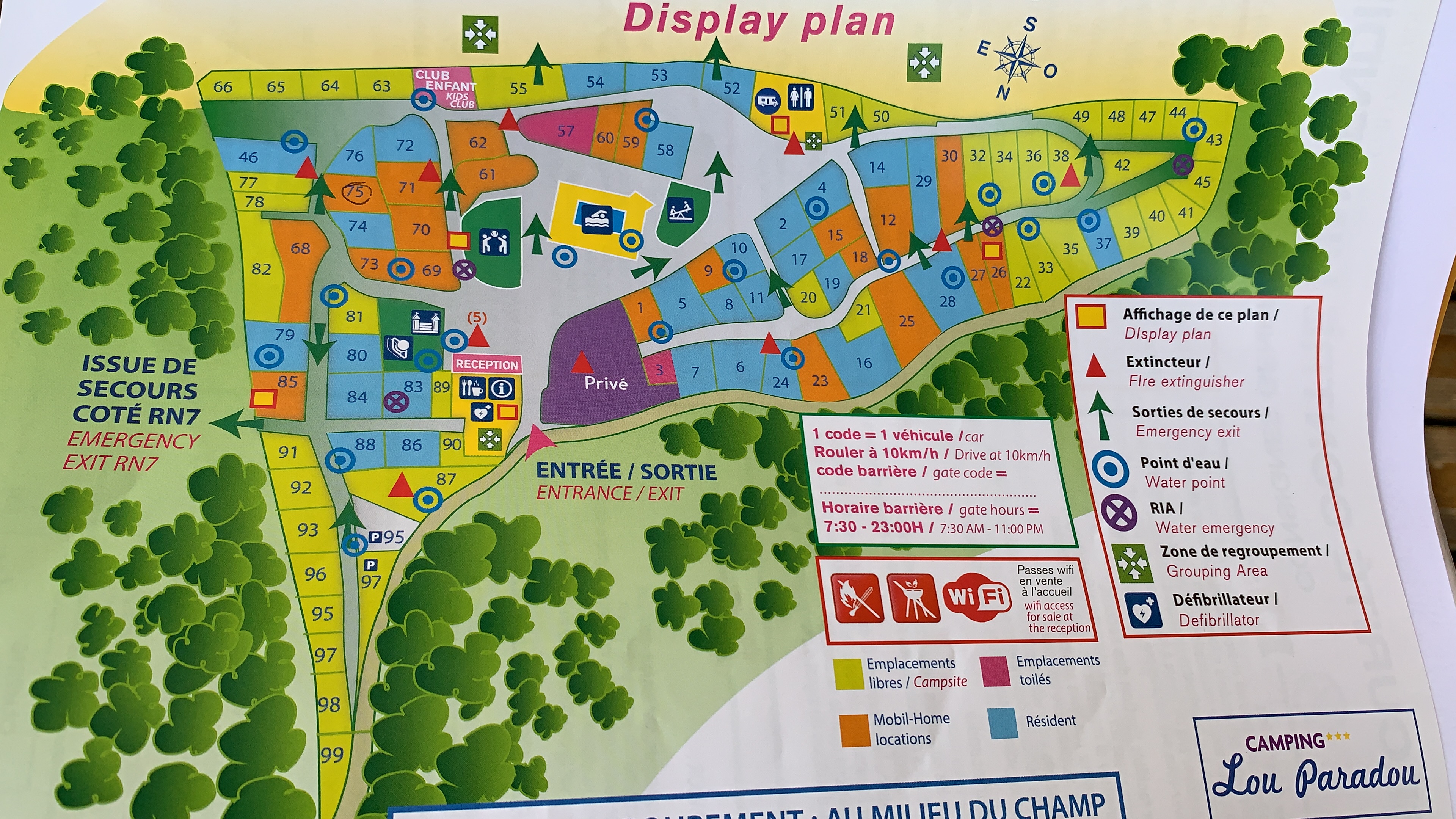 Passé cet été lors d'une traversée de la France en vélo. J'arrives un dimanche à 17 h 30, la première fois que je trouve un camping fermé le dimanche après-midi en pleine saison. Bon, j'ai le propriétaire à l'interphone qui me refuse l'accès, cela ne m'est jamais arrivé, on m'a toujours laissé l'accès et fait la regul le lendemain. Pas du tout arrangeant, je lui explique que j'ai 130 kms dans les pattes, mais aucune empathie. Mauvaise expérience.