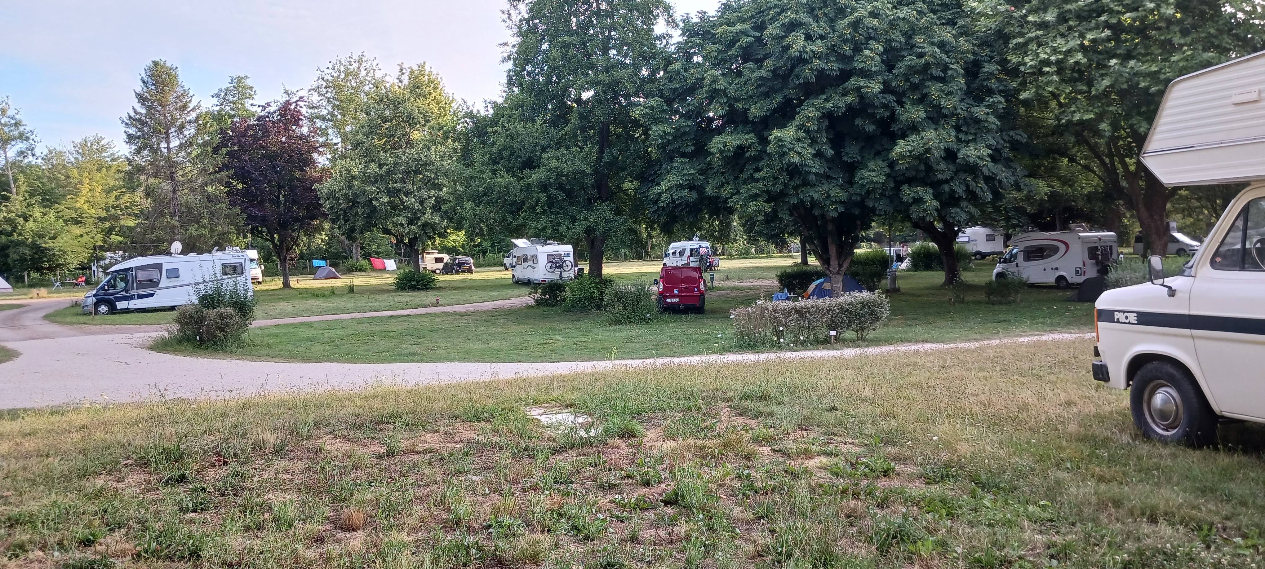 Très beau terrain arboré. Grands arbres bien agréables par cette chaleur. Situé le long du canal de Bourgogne et à 50 mètres de la baignade. Supermarché à 15 minutes de marche par le canal. Sanitaires agréables, bien chauffés le matin. Très calme et nature. Super séjour.