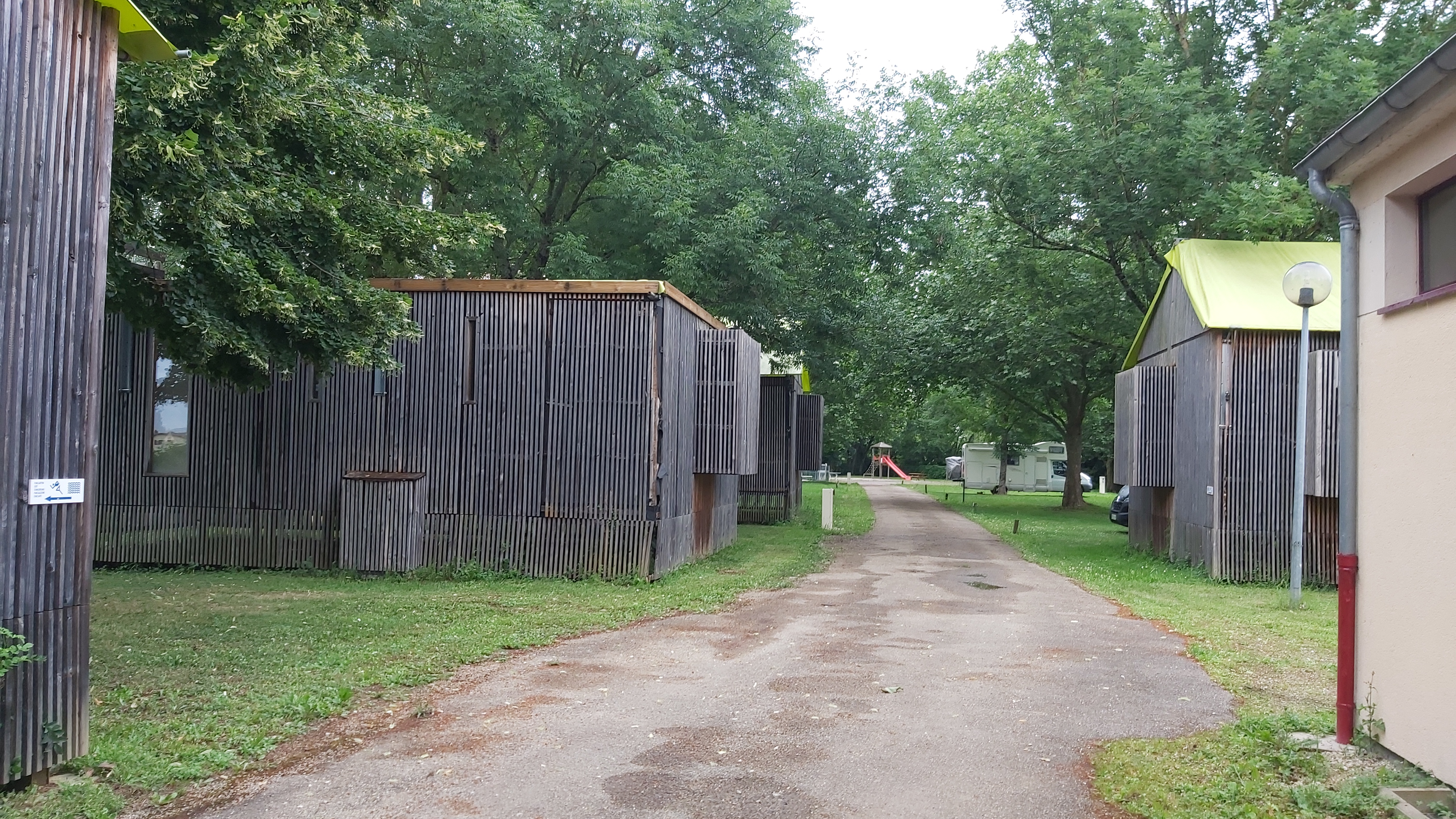 camping très bien situé mais vieillissant camping dans la verdure près de la rivière, du canal et de la ville sanitaires impeccables mais manquent de poubelles (dans les lavabos et près des bacs à vaisselle) allées en mauvais état chalets vétustes qui sont désagréables comme environnement