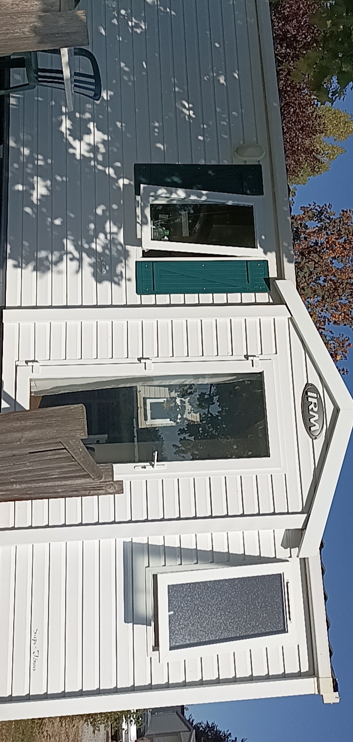 Un petit coin de paradis !. Excellent camping avec de très bonnes prestations, à revoir cependant , le matelas à ressorts sur des lattes , pas très confortable et l’accès au mobile-home qui se fait avec des marches en bois vermoulues et manquant de stabilité.