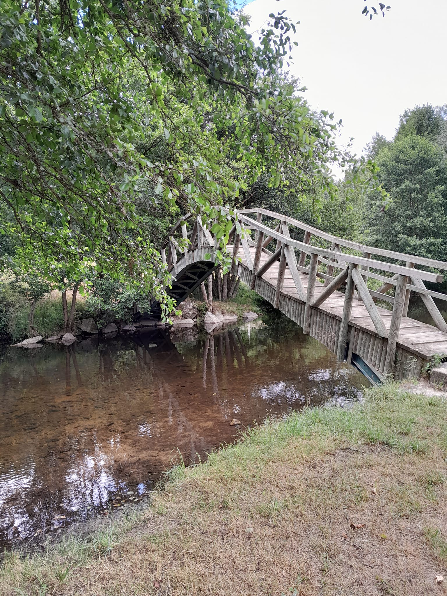 Notre première fois dans ce camping. Nous sommes très heureux de recommander ce site à tous les propriétaires de tentes, camping-cars et caravanes. Les emplacements sont grands et l'électricité est de 16 ampères. Bonnes toilettes propres, douches chaudes. Aire de jeux pour enfants, sièges disséminés à partir de vieilles palettes sur lesquels il est amusant de s'asseoir, la plupart dans des zones ombragées près de la rivière, agréables et calmes si vous voulez simplement vous asseoir et lire et laisser le monde passer. Pour ceux qui veulent être un peu plus énergiques, quelques promenades et une belle piscine pour barboter ou nager si c'est ce que vous aimez. Les propriétaires et le personnel seront plus que disposés à vous conseiller sur les nombreuses attractions locales. Après une dure journée de détente ou de visite des différentes attractions, vous aurez peut-être envie de prendre un verre ou deux. Le bar donne sur la piscine, les événements sportifs peuvent être regardés à la télévision sur arrangement préalable, nous avons regardé l'Espagne contre l'Angleterre (finale de la coupe dames). Les tables sont dressées dehors sur une petite terrasse. Nous pouvons recommander la nourriture que nous avons eue, les côtes levées, super. Ils préparent également des plats de spécialités qui, nous en sommes sûrs, seraient merveilleux. Les prix du bar sont très raisonnables et l'ambiance est excellente. Nous avons hâte de revenir