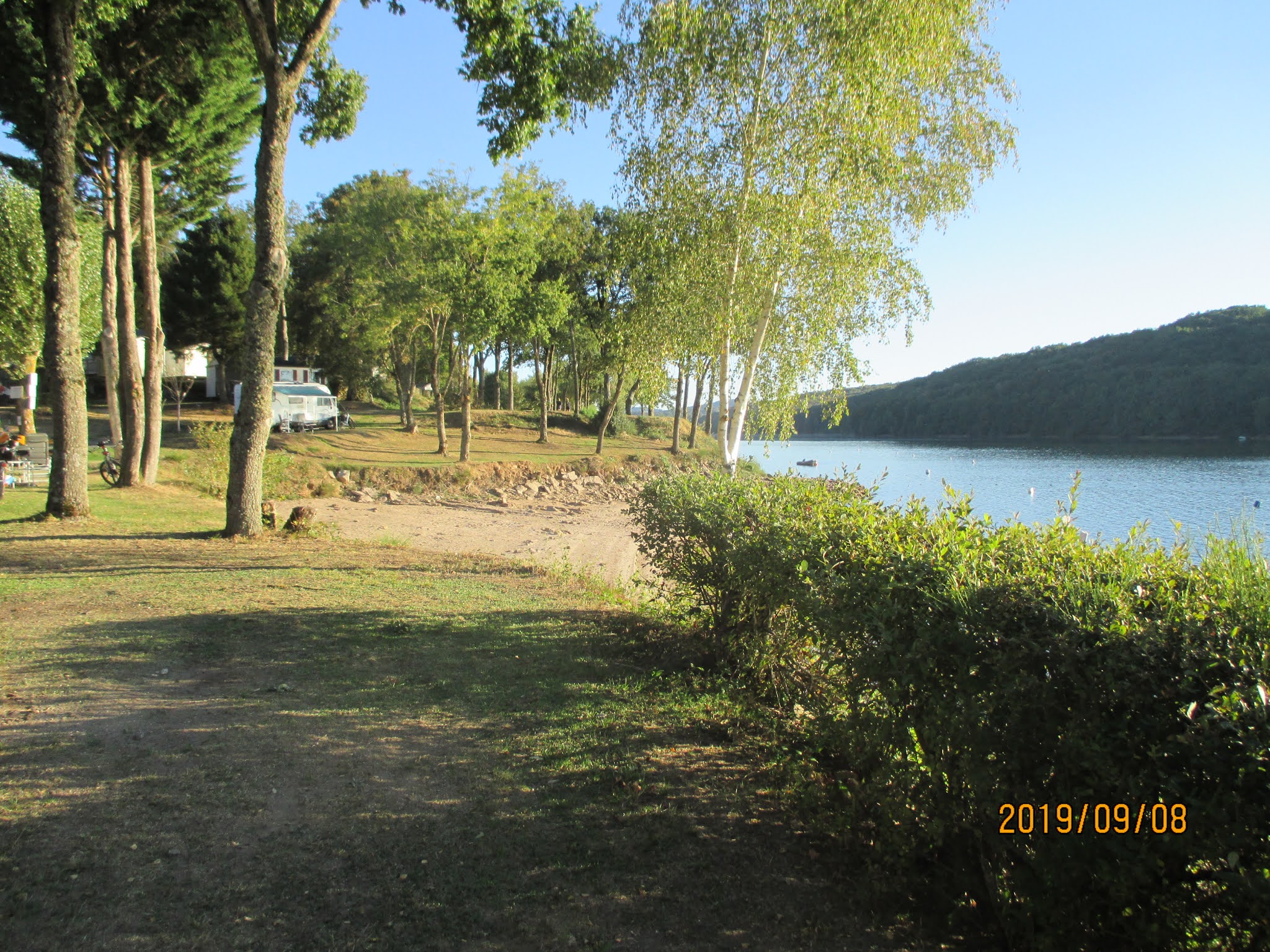 Deja un accueil chaleureux petite balade en deudeuche le patron du camping tres serviable emplacement spacieux et entretenu avec vue sur le lac sanitaire proppre et en nombre plage sur place avec de l l'ombre annimation tres sympa tres bon sejours c un 3 etoiles qui vaut mieux que beaucoup de 4 étoiles ont reviendra