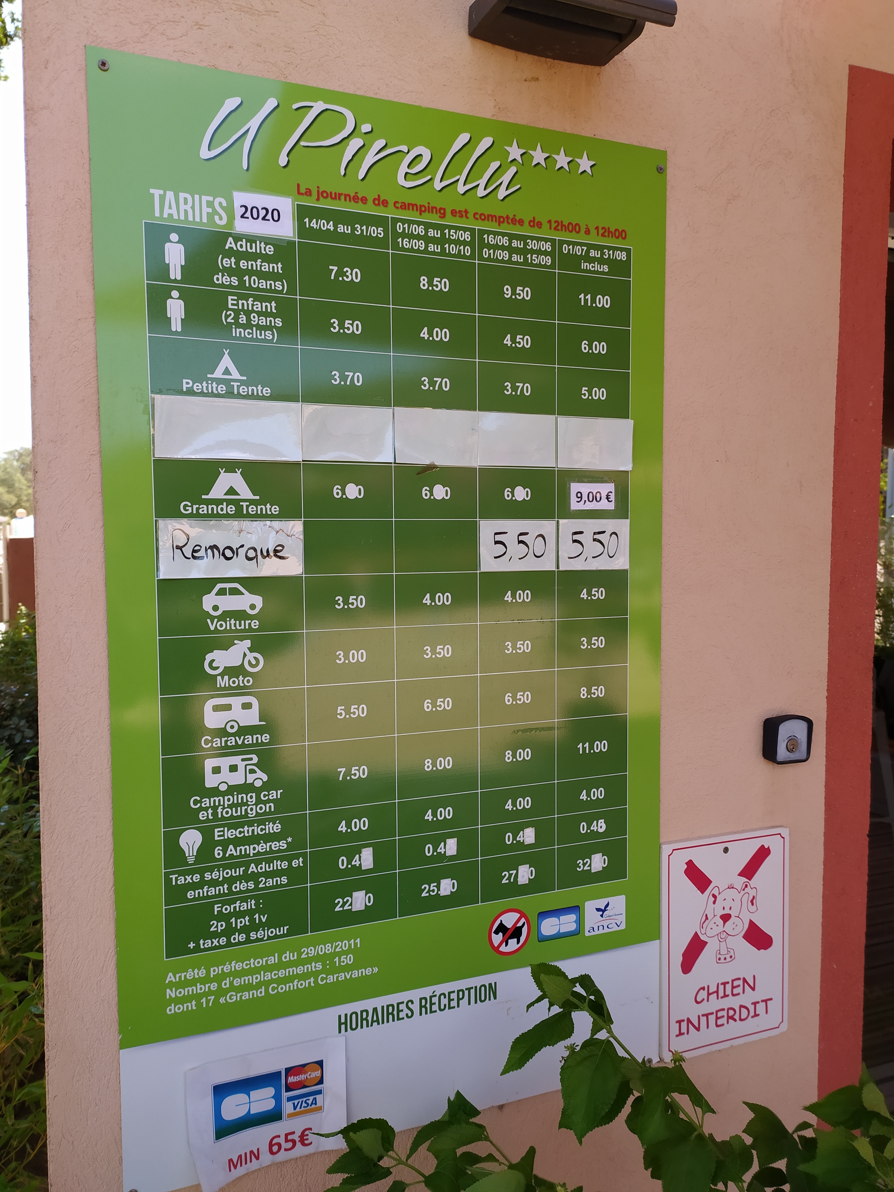 Bon camping dans l'ensemble ! Emplacements corrects ! Pizzeria proche du camping mais apparemment pas terrible ! Nous n'avons pas testé, le mozzarella/emmental pour toutes les pizzas ne nous a pas emballé. Supérette dans le camping, pratique pour dépanner, par contre le gérant désagréable ! Dépôt de main et viennoiseries, ou décongélation de viennoiseries possibles. Piscine sympa et propre, nettoyée tous les jours ! Attention un peu difficile d'accès en moto et vélo, c'est en pente et assez raide ! La musique dans les sanitaires c'est sympa, nostalgie et les années disco, c'est les vacances ! Propres elles aussi, sauf après quelques personnes incivilisés. Barbecue en commun sauf en cas de journée avec beaucoup de vent. Par contre je ne sais toujours pas si c'est un camping 3 ou 4 étoiles. Les affiches indiquent 3 étoiles et arrivant sur le camping on nous annonce 4 étoiles, mettez vous d'accord ! Les prix à l'accueil sont augmentés (petite étiquette collée sur le prix initial) pour quelles raisons ? Le camping est il passé de 3 à 4 étoiles ? Problème au niveau de la tente, 3 tailles possibles, petites, moyennes ou grandes, mais comment faites vous pour définir une tente moyenne d'une petite ? On nous a toujours laissé pour une petite tente mais ici apparemment c'est plutôt une grande ! (Nous sommes 2 et nous voyageons en vélo donc nous n'avons pas une tente 6 personnes). Sinon l'accès à la plage de palombaggia se fait sans soucis, même comme nous à vélo, comptez 5km environ et quelques € pour vous garer ! Proche de Porto-Vecchio également !