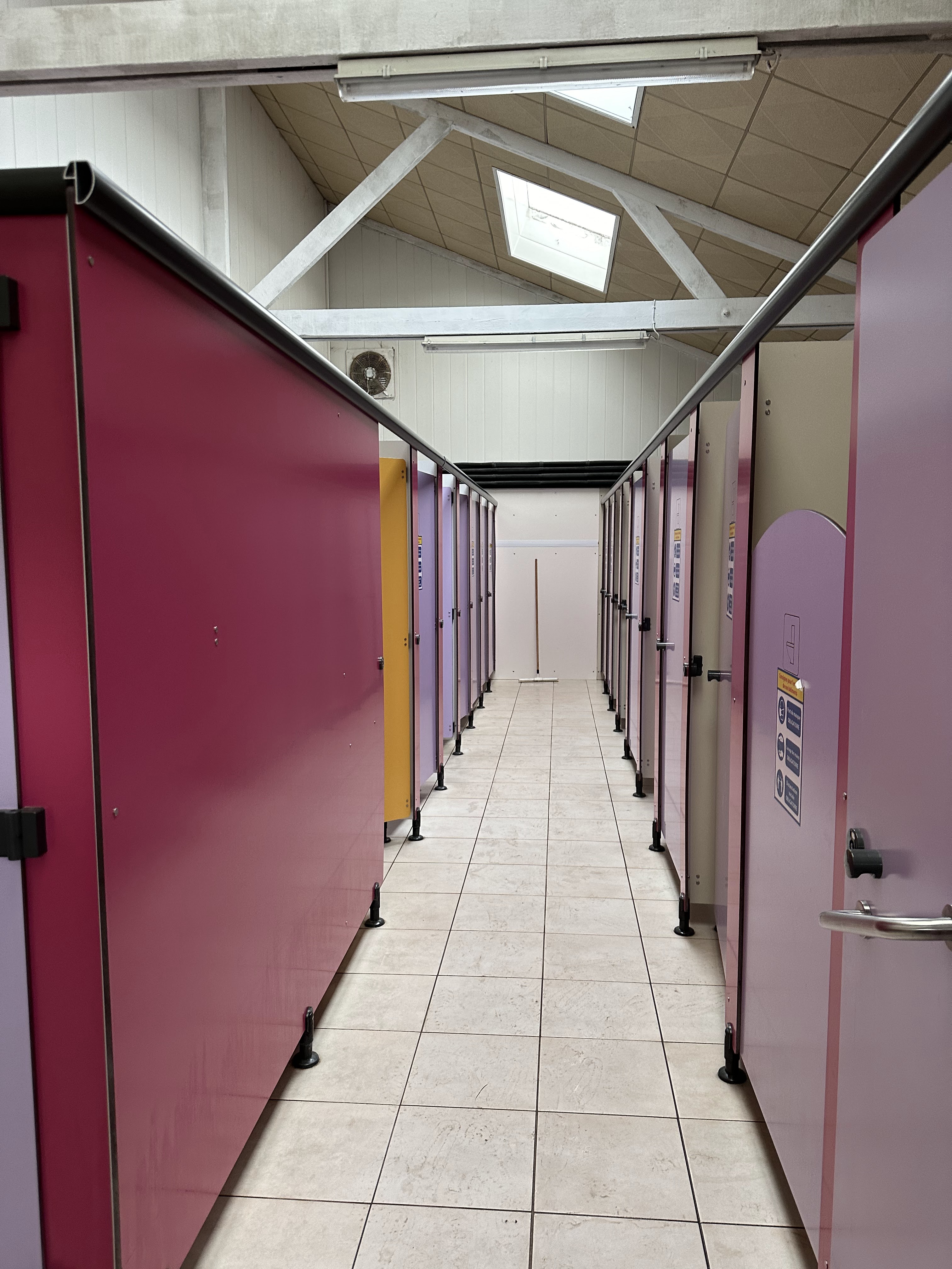 Bonjour, je ne regrette pas d'être venu, piscine (chauffer et toboggan au top. Toilette et douche plutôt propre toute fois l'éclairage n'est pas terrible un éclairage à leds avec détecteur de mouvements serait mieux que les boutons retardateurs car ce retrouver dans le noir pendant la douche ou au toilette... Pas d'éclairage pour faire la vaisselle. Il y a des lave-linge et sèche linge à votre disposition. Accueil sympathique. Merci et a bientôt