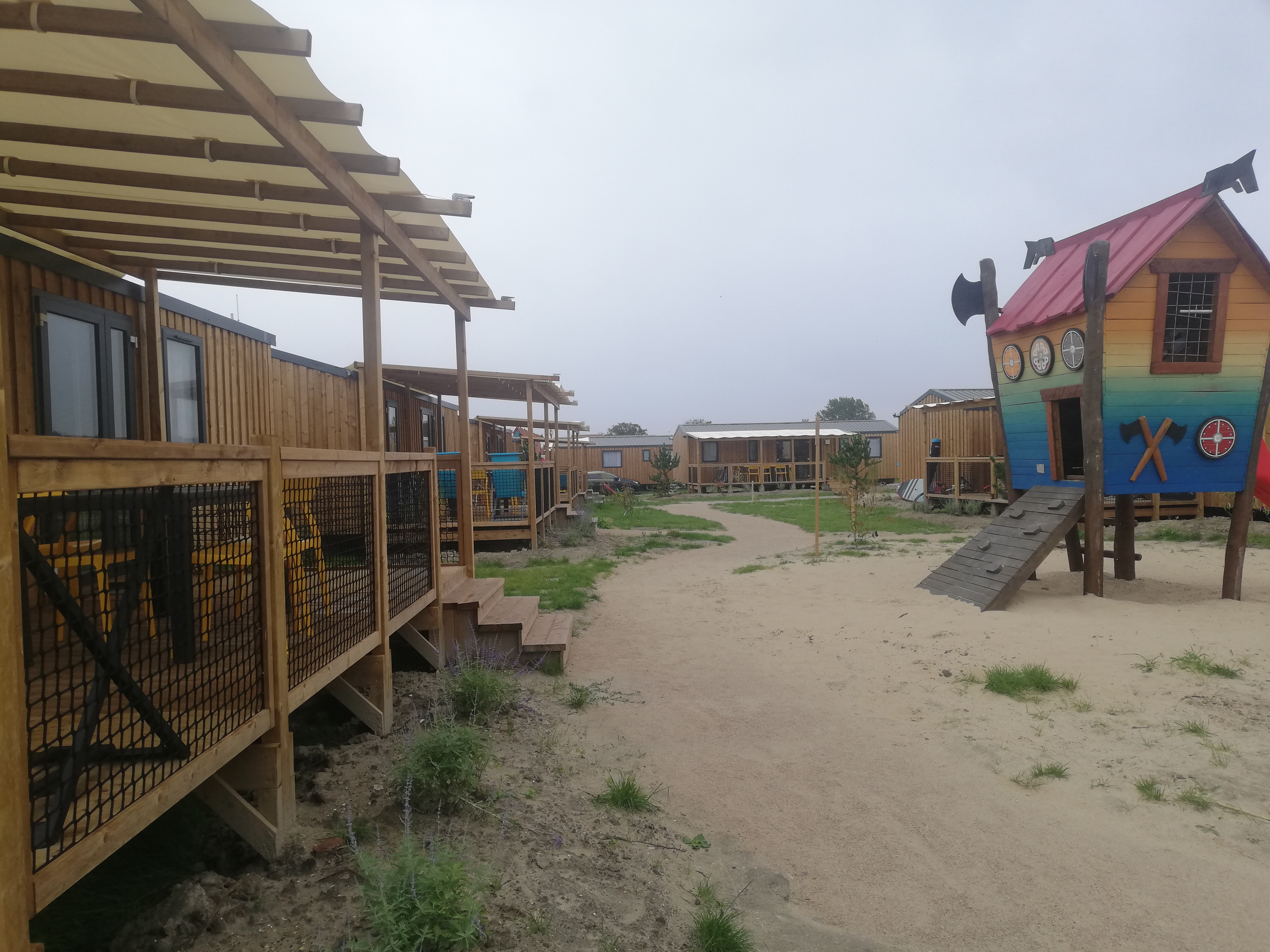 En bungalow très récent. Camping propre et très bien situé. A proximité de la dune du vent des écoles de kite, char à voile etc. Le snack bar est très bien également.
