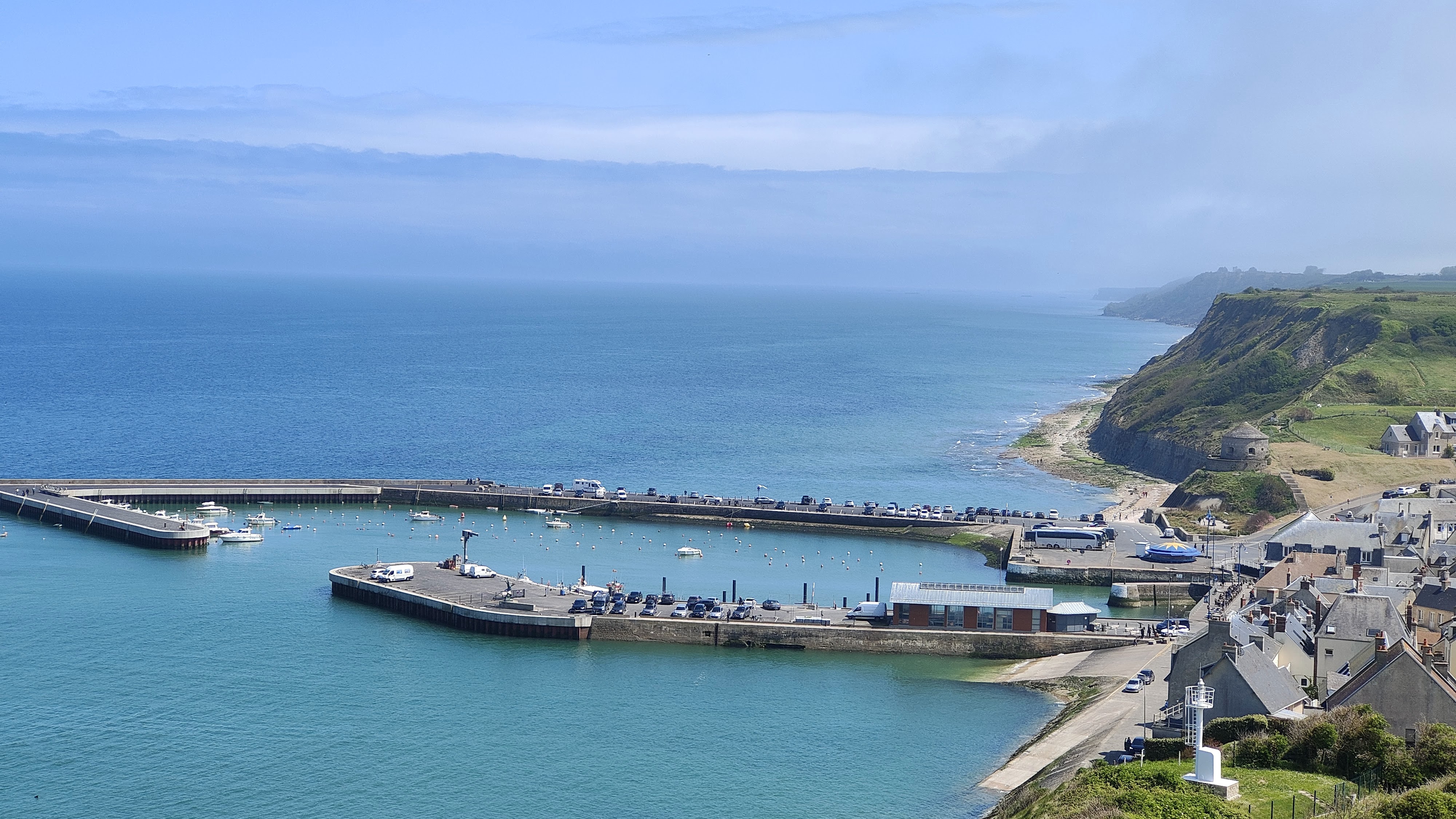 Lieu de camping agréable et confortable. Emplacements aux dimensions généreuses. Vous avez vraiment beaucoup d'espace pour des tentes supplémentaires ou pour jouer ou faire du yoga, etc. Nous avions un petit pommier comme fabricant d'ombre mais la majeure partie du terrain était ouverte et donc non protégée du soleil. Si vous ne voulez pas être exposé à des animations occasionnelles ou aux bruits provenant de la piscine, demandez un emplacement plus éloigné du bar et de la piscine. Une étoile en moins à cause des douches. Ils ne contribuent pas au confort, vraiment pas. Ils s'arrêtent après 5 secondes et la température est un jeu maussade, vous pouvez vous attendre à tout, du froid au chaud presque douloureusement. Mais sinon et dans l'ensemble, c'est un endroit relaxant et agréable avec des étangs de pêche et diverses aires de jeux pour enfants, ainsi qu'une piscine, un bar et un restaurant. Enfin, l'ensemble du camping est situé sur une falaise et fait face à la mer. Une vue merveilleuse est garantie. Vous pouvez marcher ou rouler à vélo jusqu'à Port-en-Bessin, le prochain port de pêche, une petite ville pleine d'ambiance qui regorge de restaurants proposant de nombreuses spécialités de poissons et de crustacés. L'une des plages à côté de la halle du marché aux poissons regorge de coquilles Saint-Jacques, prêtes à être ramassées par quiconque apprécie la beauté de ces coquilles. C'est une chose amusante à faire et cela ne coûte rien.
