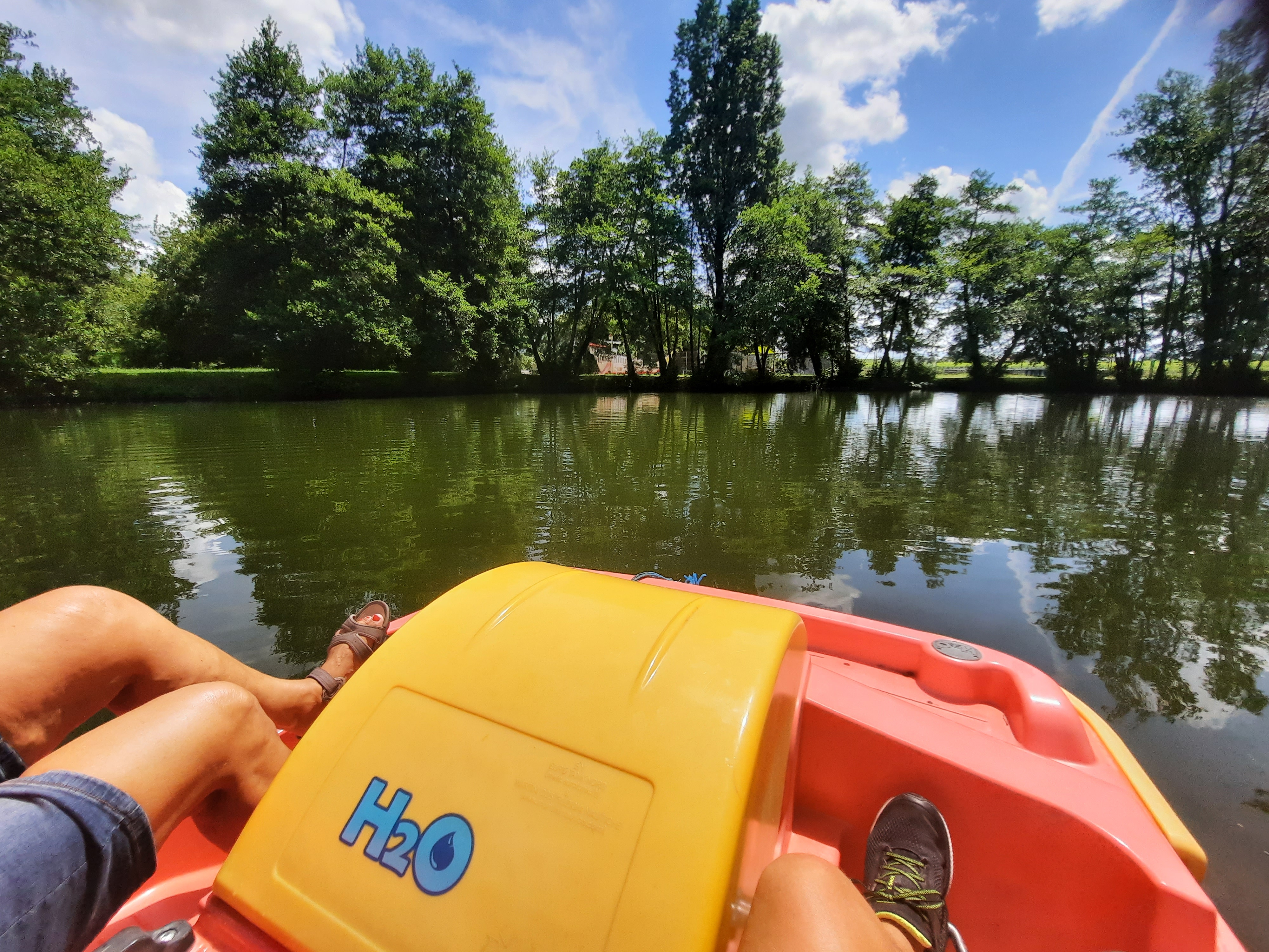 Camping calme Pédalo canoë à disposition gratuitement Piscine un peu froide même celle couverte