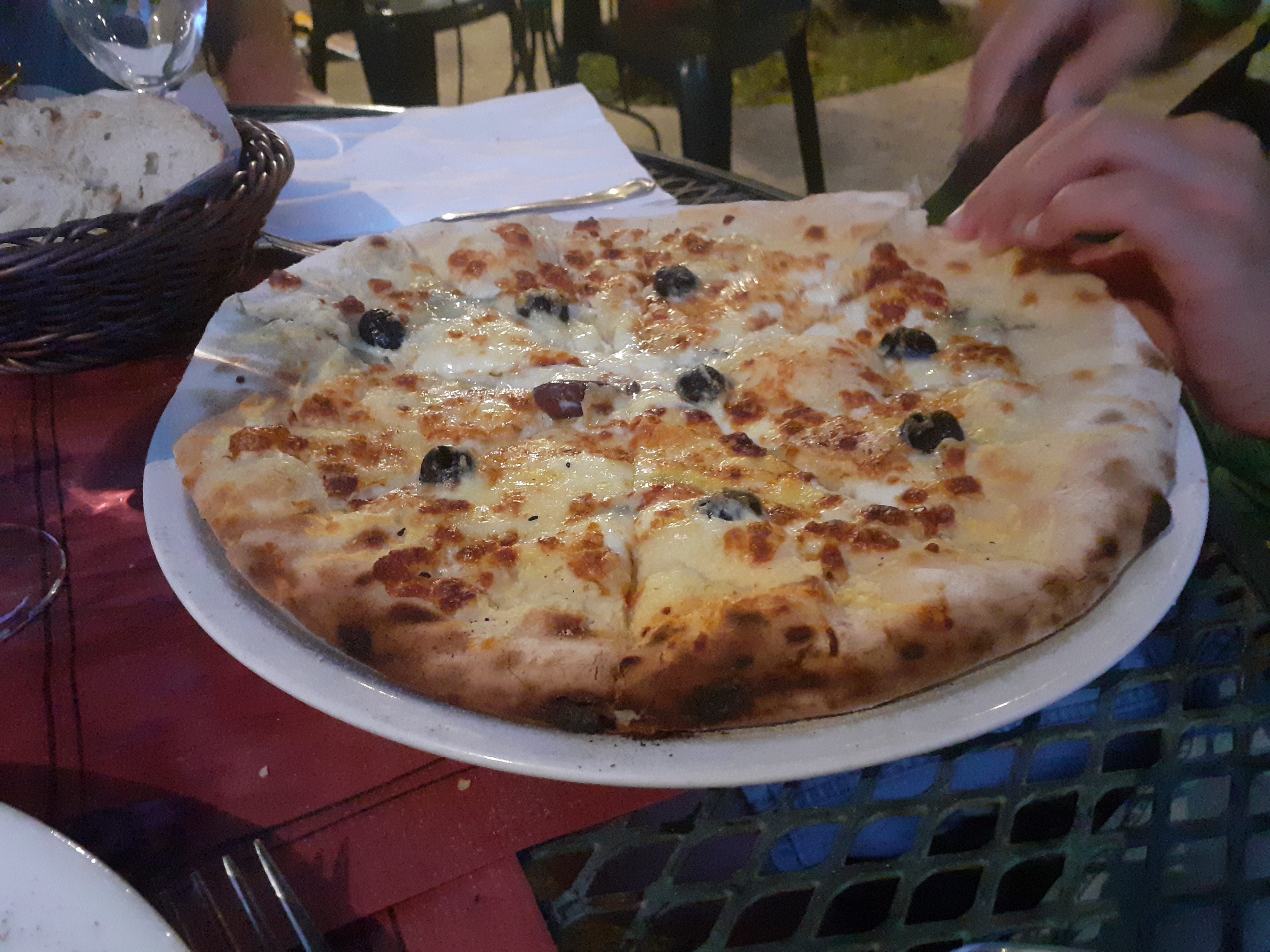 QUEL RÉGAL ! Nous avons remis le couvert une fois tellement l expérience était géniale et propice à la régalade. Un cadre très beau, deux calzones incroyables ! Cuisson au top au feu de bois bien sûr Et deux moelleux en dessert, excellents ! Le tout pour une note relativement correct, le rapport qualité prix étant vraiment au top ! Si vous cherchez un coin tranquille pour bien manger, allez y les yeux fermés.