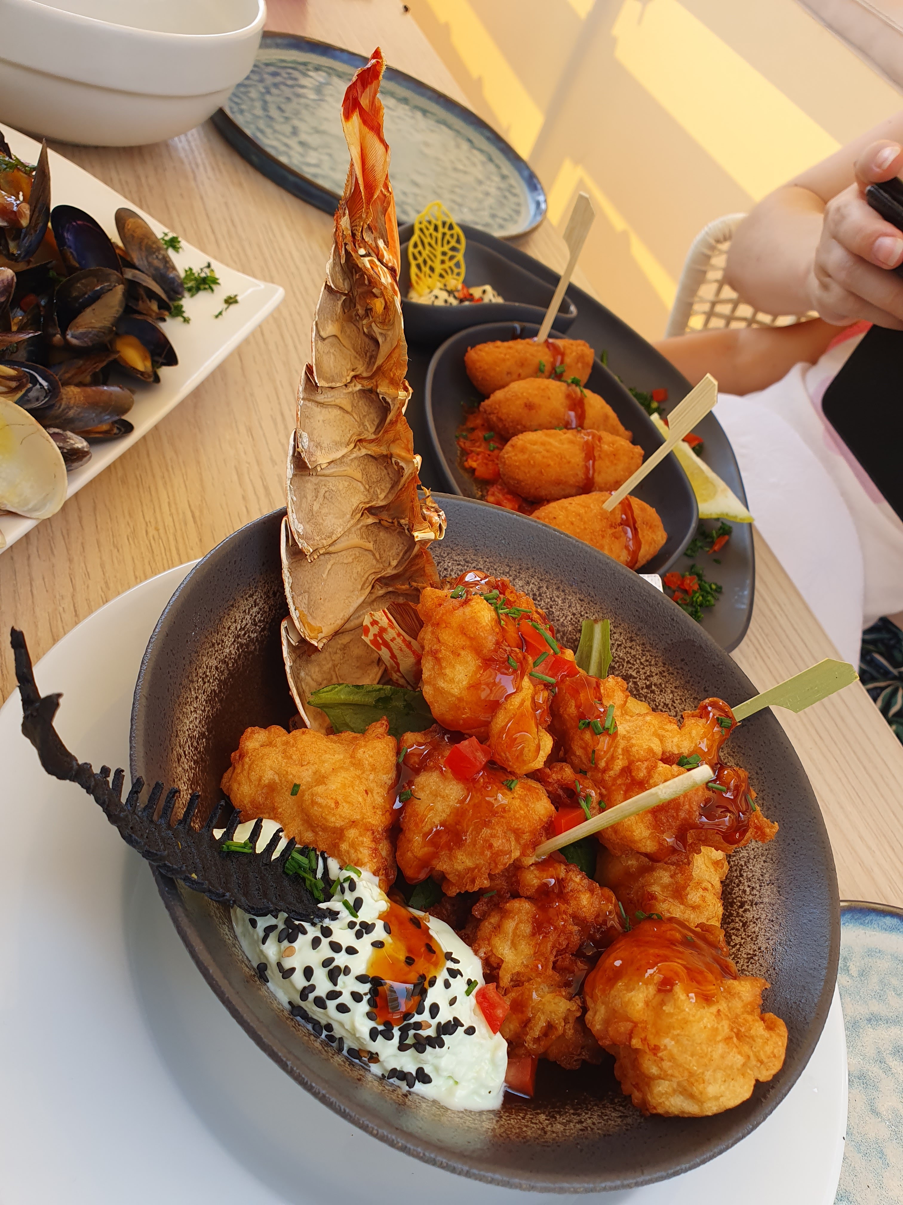Alors, on a étais pour la première fois. Mais c’est trop cher, les crevettes, le crabe et ect, ne sont même pas décortiqués et il nous donne des sortes de bavettes. Ils nous disent qu’il y a pas de place en terrasse alors qu’il en avait encore plein. On a attendu presque 20 minutes pour des glaces…