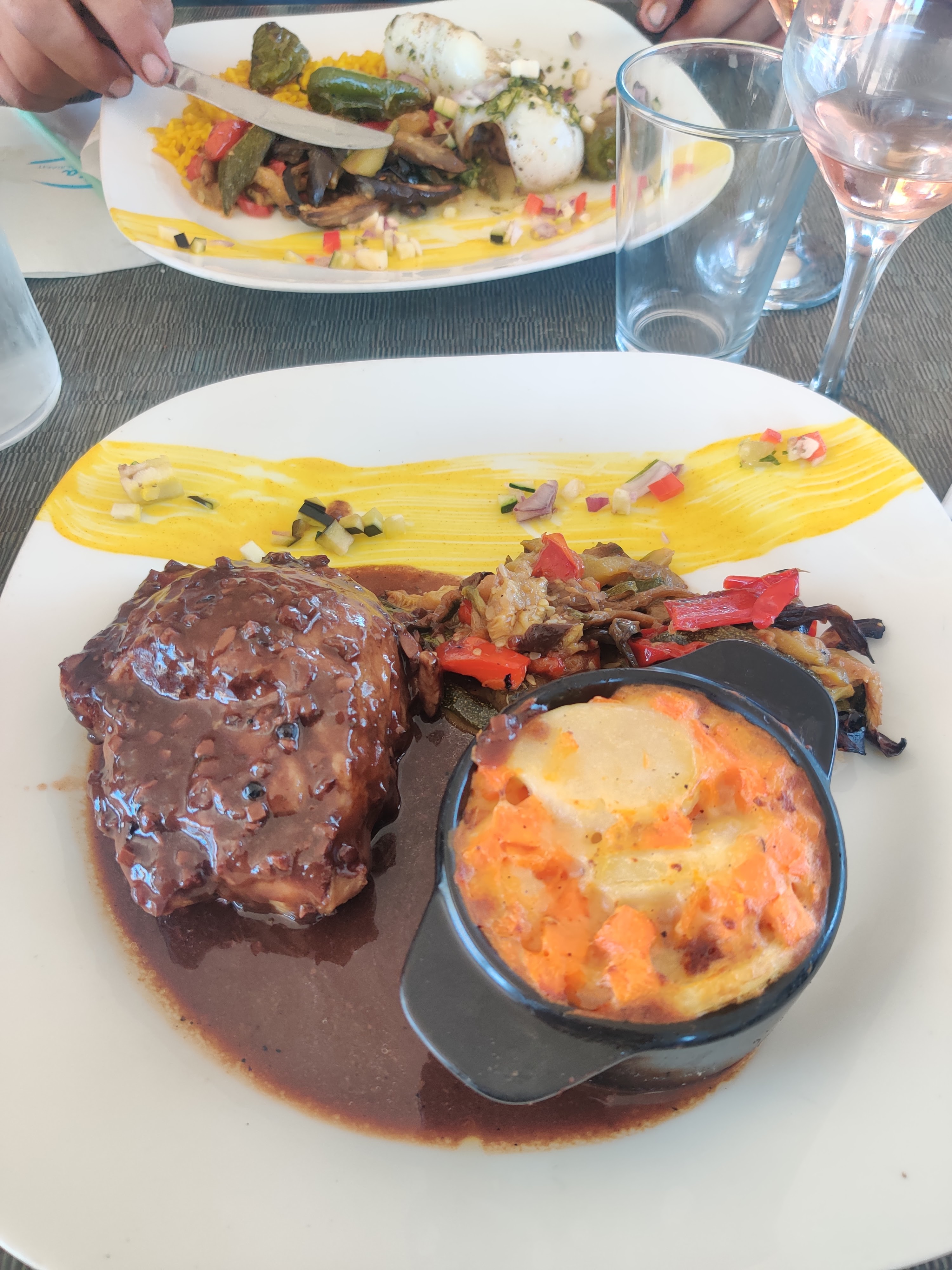 Excellent. Aussi bien dans le service en générale (aimable et accueillant) que dans les plats. Merci au patron d'avoir fait tous son possible pour me trouver un emplacement dans un camping en pleine saison estivale et pont du 15 août, à toute l'équipe, à la famille cliente habituée réunionnaise pour leurs super ambiance et de m'avoir fait passer un bon moment dans cette étape final en vélo. Arrivé à 18h30 parti un peu avant 23h00, je réservais mon TGV à 23h45 depuis la gare à 15km pour le 1er départ à 6h00 vers paris. Jacques.