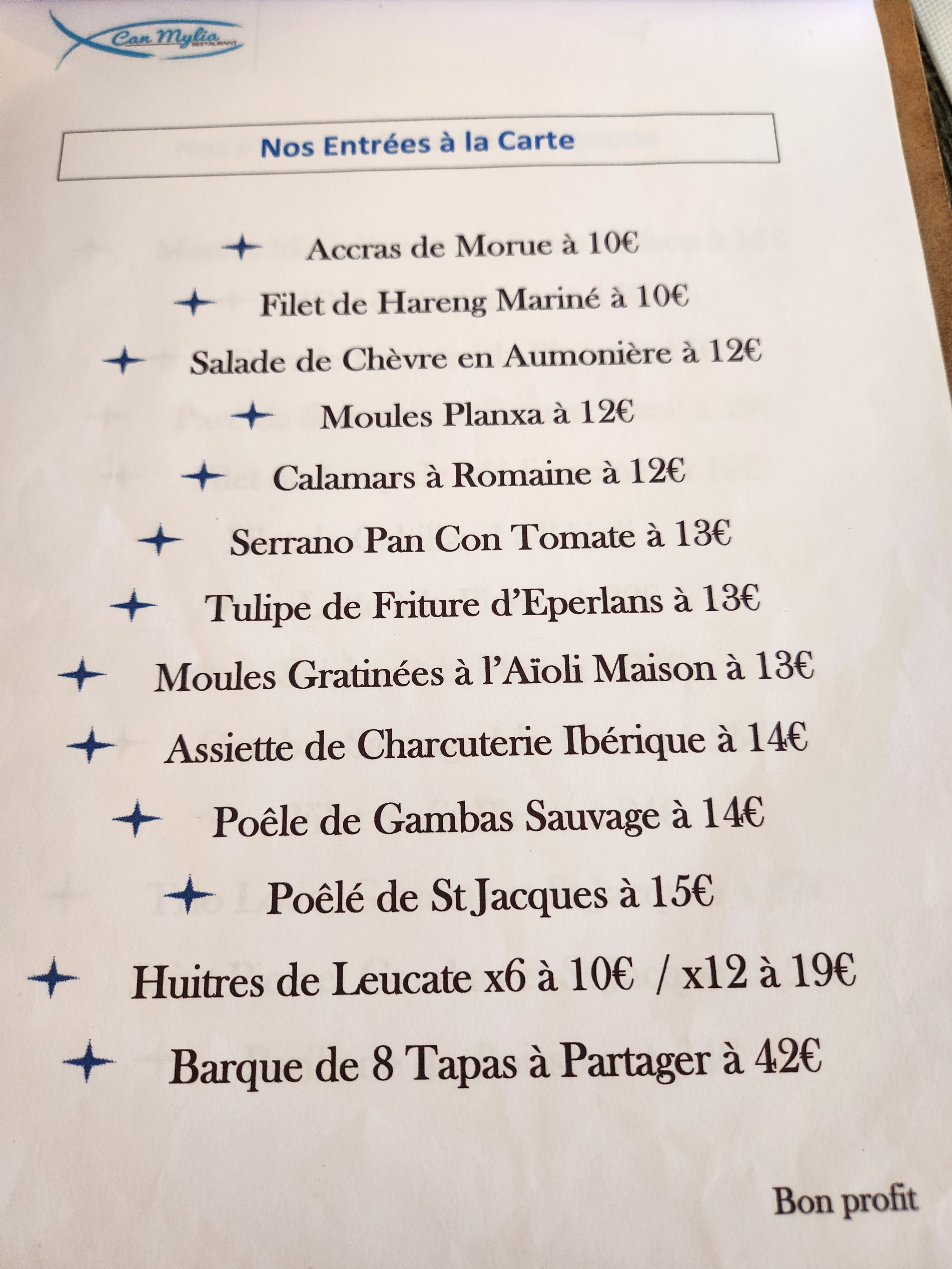 TOUT était parfait, absolument rien à dire, personnel adorable, les plats étaient excellents notamment les poissons, que des produits frais ! Les plats étaient copieux, franchement parfait. Il y a bien longtemps que j’avais mangé quelque chose d’aussi BON !! Rapport qualité prix imbattable, je recommande +++++.N’ayez aucune hésitation, c’est au Can Mylia que l’on trouve un réel plaisir gustatif !