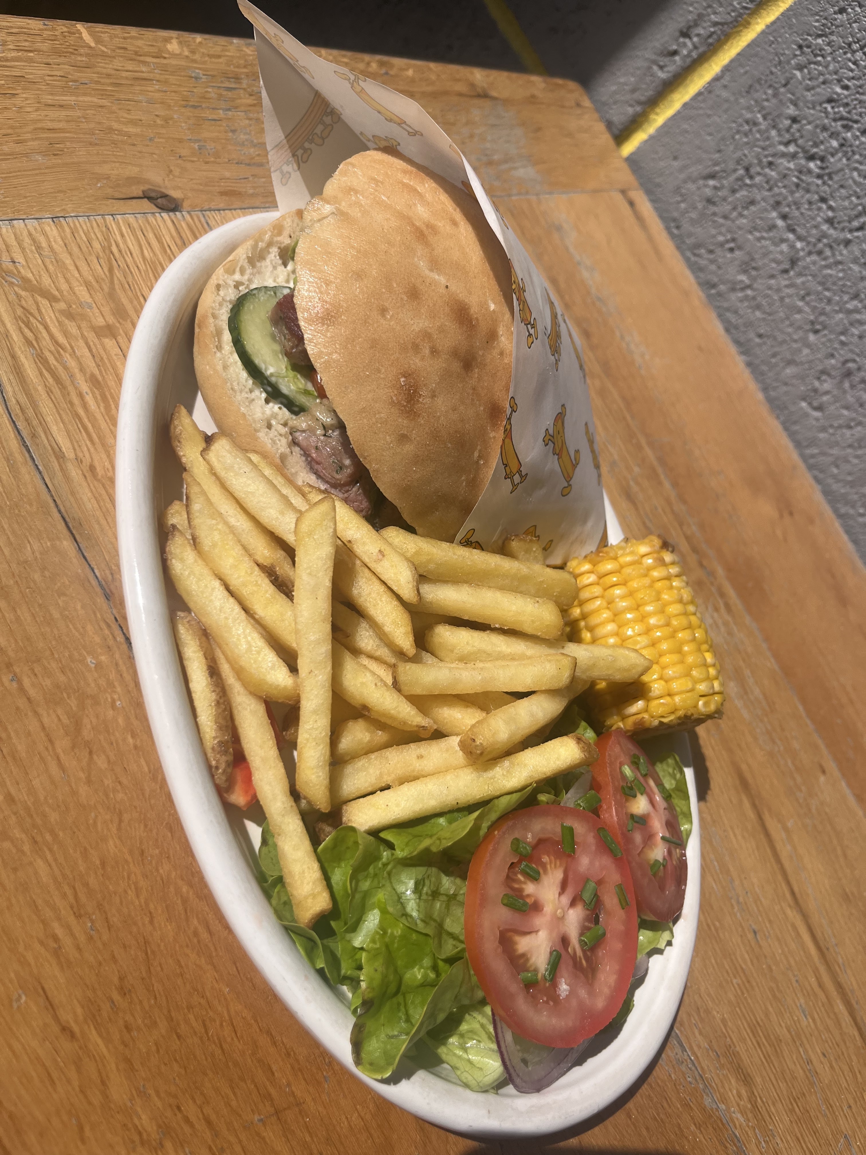 Frites insipides, burger sans saveur, le tout pour 13 euros. La dame qui a pris notre commande etait cependant très sympa. Malheureusement ca ne rattrape pas tout.
